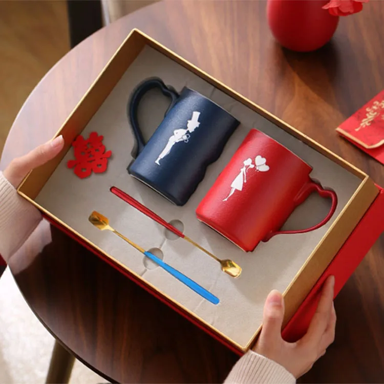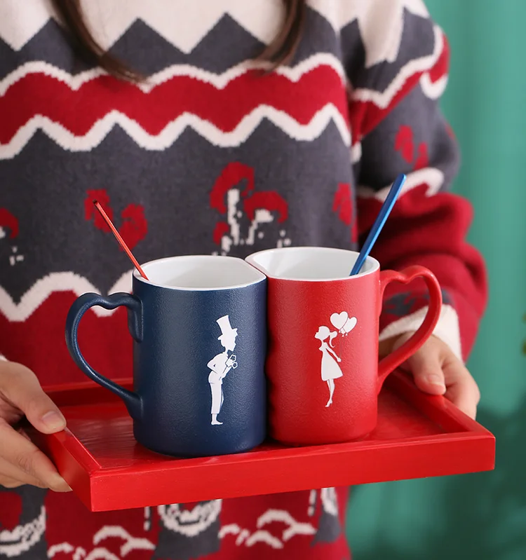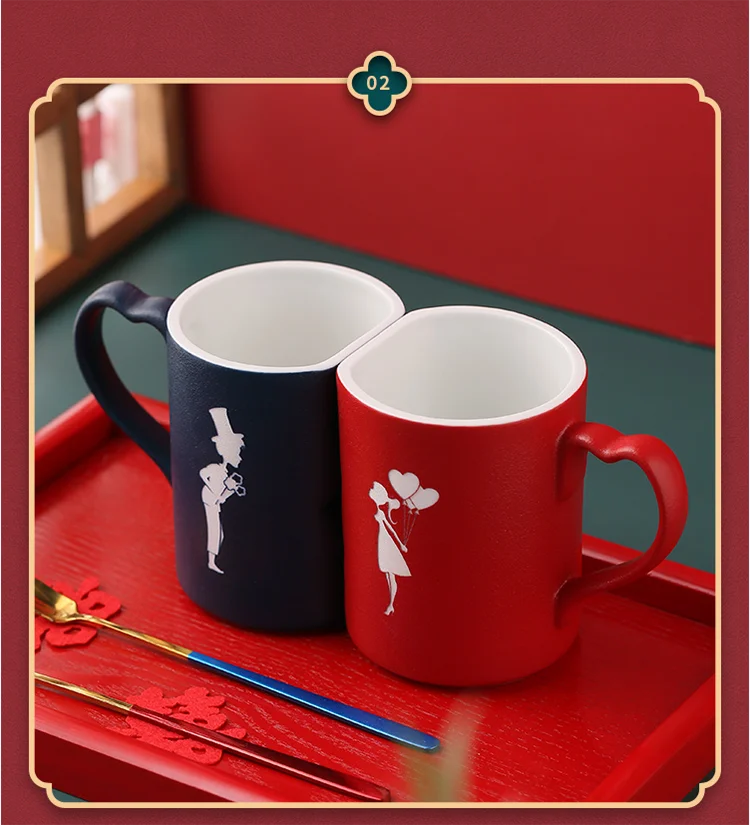 Coffee Couple Mug set, Unique Funny Tea Ceramic Cup Set for Bride and Groom, Matching Gift For Birthday Anniversary Wedding