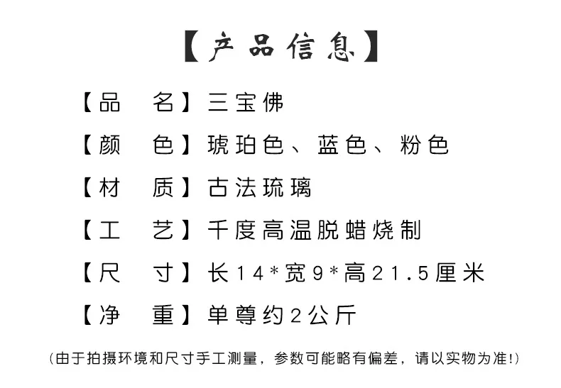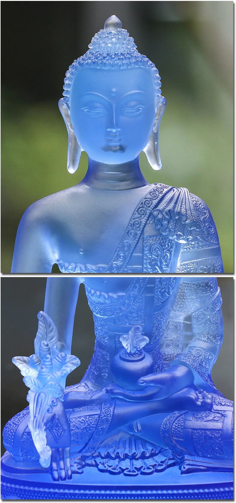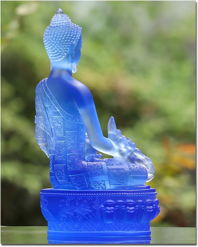 Coloured glaze buddha statue Bhaisajyaguru figure Bhaisajya Buddha figurine medicine Buddha bodhisattva Good luck Great quality: We strictly carry out 37 procedures of dewaxing and burning in ancient law, do not cut corners, and use Chinese high-quality raw materials to prevent using defective materials or scrap, to ensure that the finished product has less impurities, less bubbles, high permeability, natural color flow, ensure the surface fine workmanship. High technology : Our technician has more than 5 years of professional experience, pays attention to detail processing, has a strict quality inspection department, implements the principle: the defective products are invalid, and never returns to the furnace. Coloured glaze is a fetish in Buddhism,that can eliminate disease,resist evil.Placing Coloured glaze or wearingcan get three kinds of lucky: 1.Eliminate disease:practice Buddhism people think Coloured glaze is the embodiment of Buddha,can eliminate disease,resist evil,made them get health 2.Firm and tenacious:Coloured glaze firing complex and difficult,Buddhism believes that Coloured glaze can make peoplefeel that abstract the truth is difficult,so can get the firm and tenacious strength 3.Afflatus:Beautiful colour,give us aesthetic feeling and Imagination space,giving inspiration and wisdom.