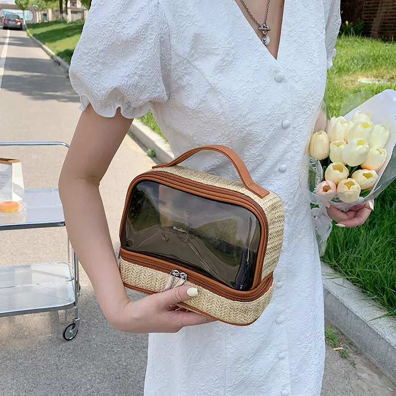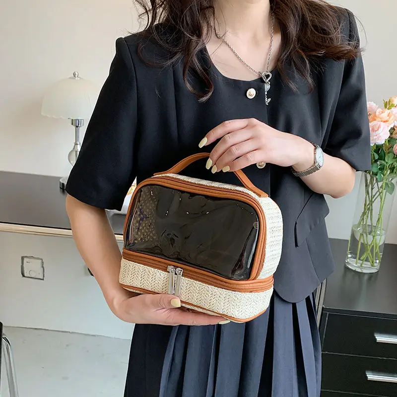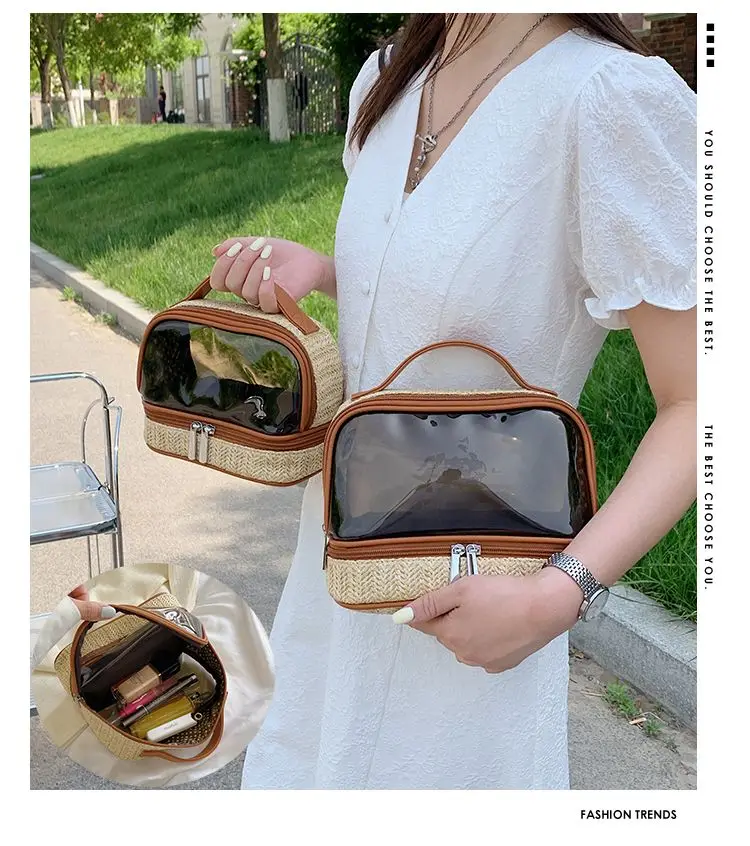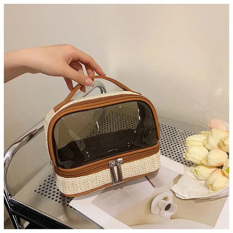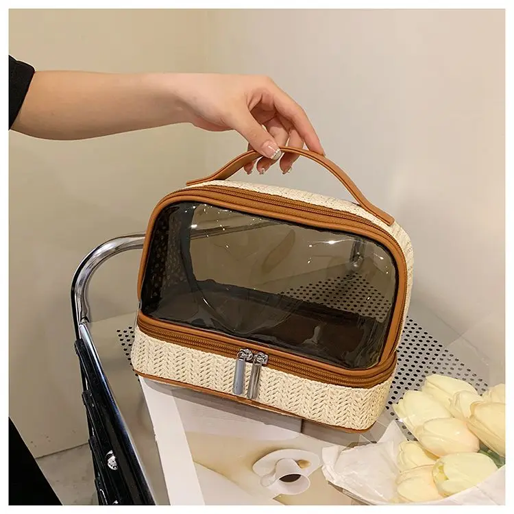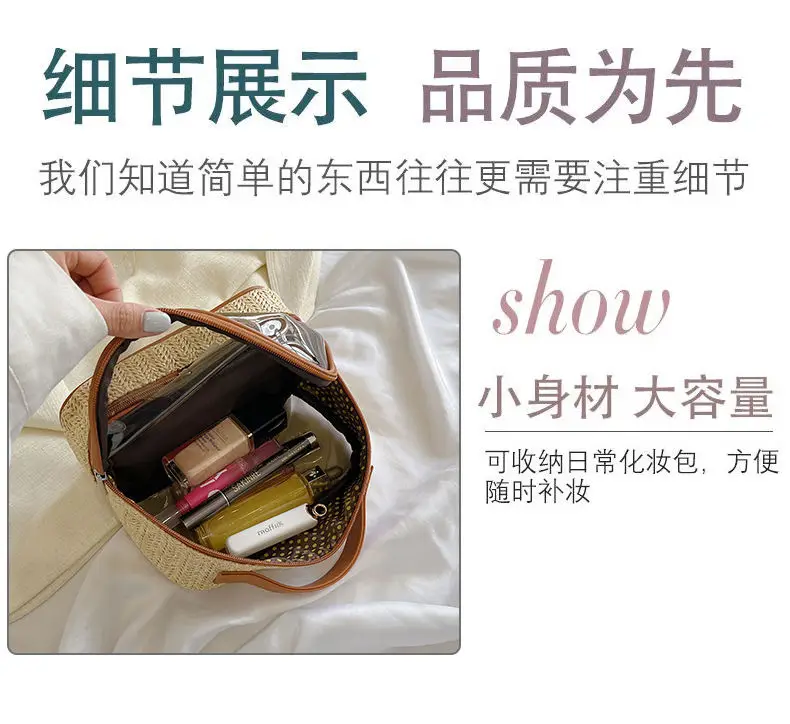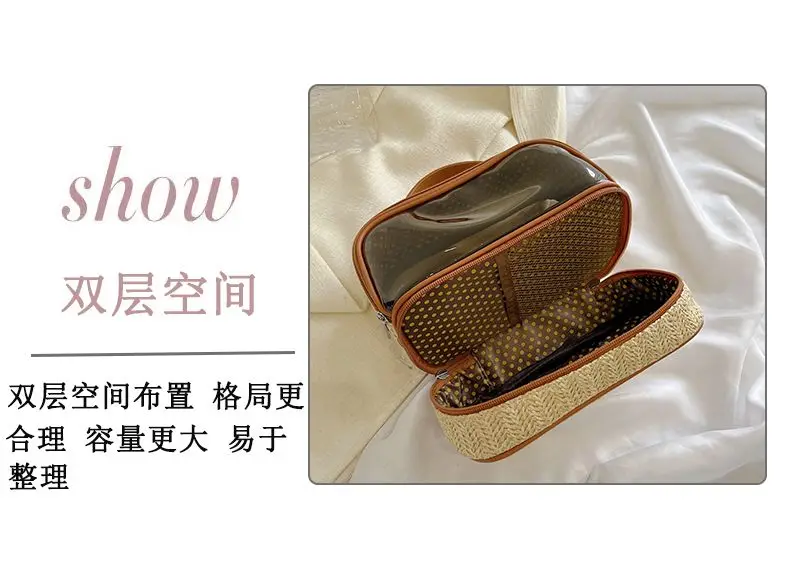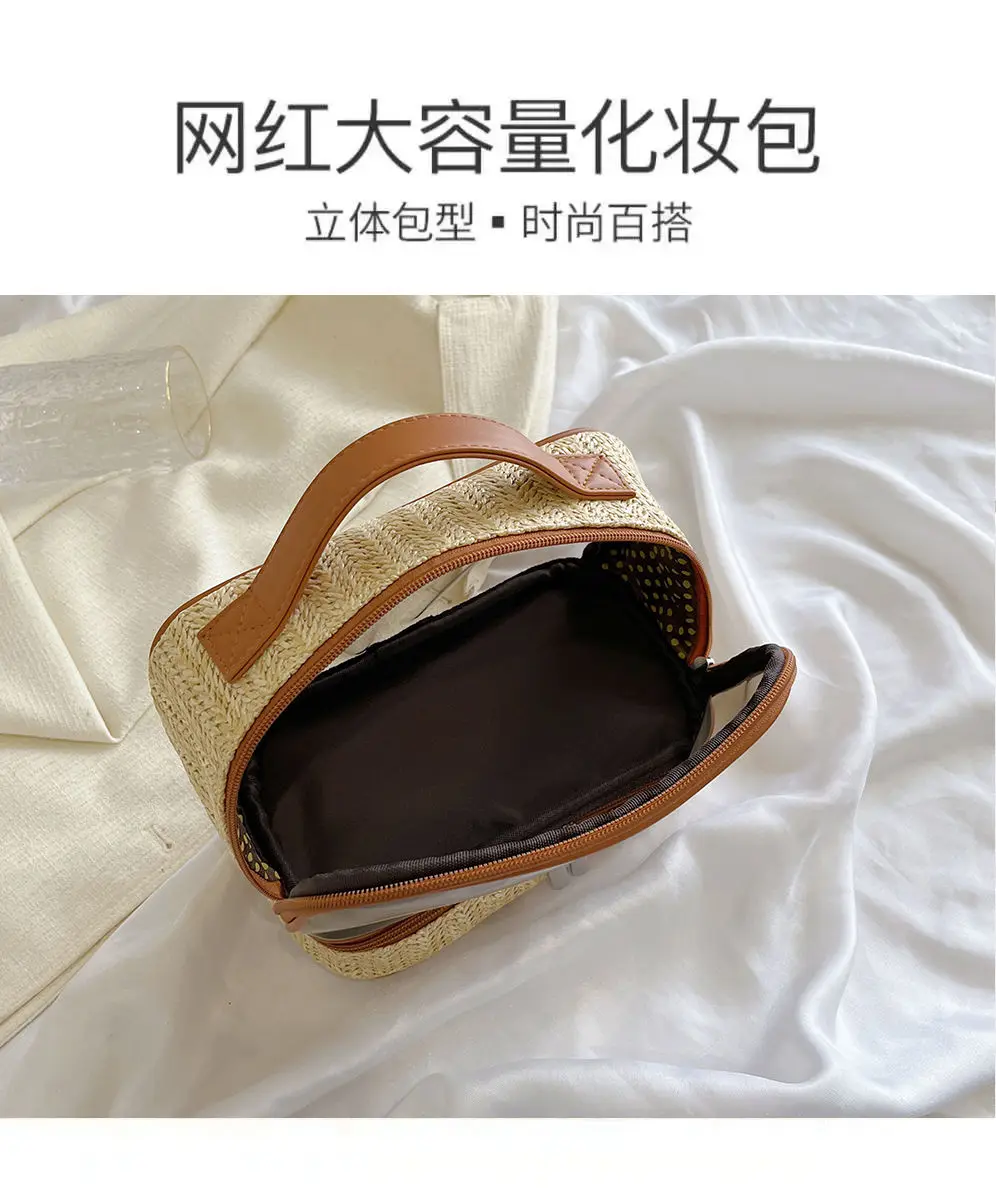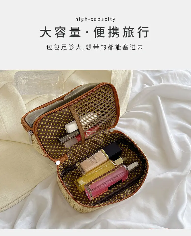 Cosmetic Toiletry Storage Bag with Large Capacity New Simple Style Travel Portable Luxury Value Woven for Women Makeup Organizer