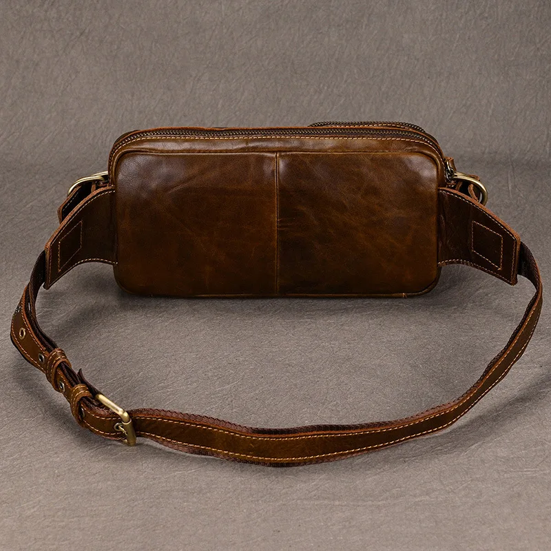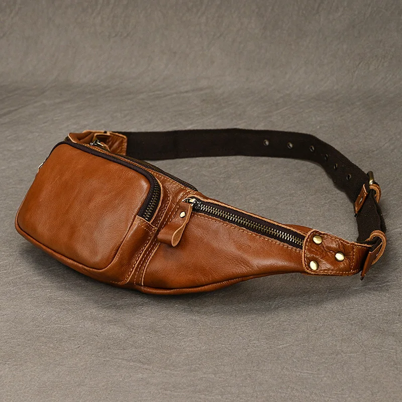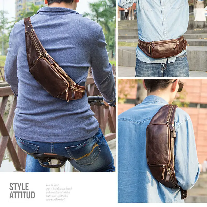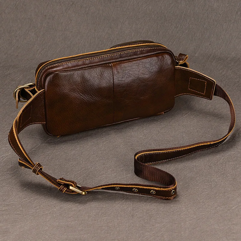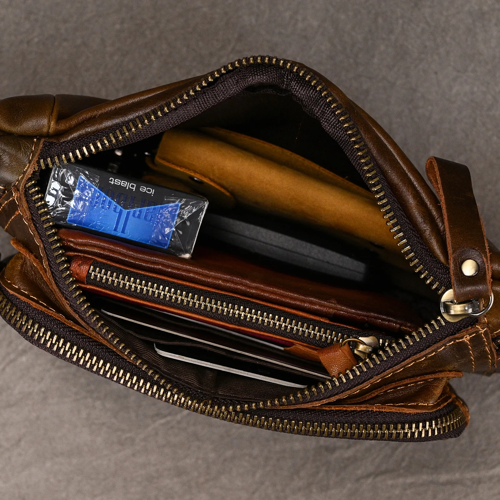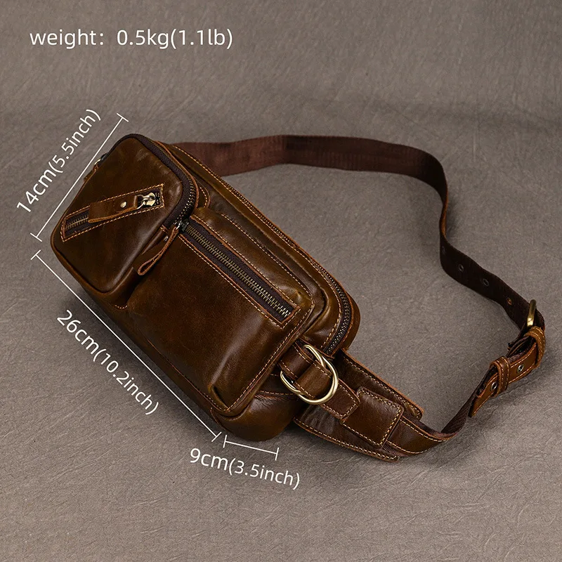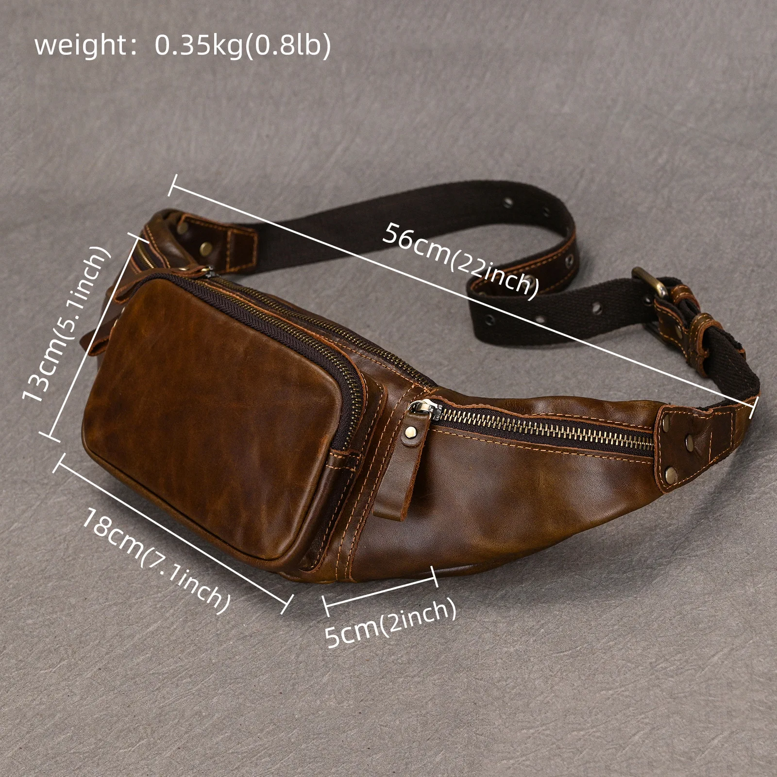 Crazy Horse Leather Men's Waist Bag Mini daily Fanny Chest Pack Cowhide Belt Bag Male Travel Waist Bag For Phone Pouch