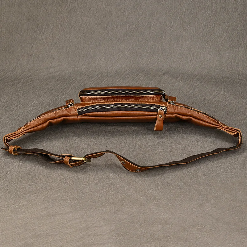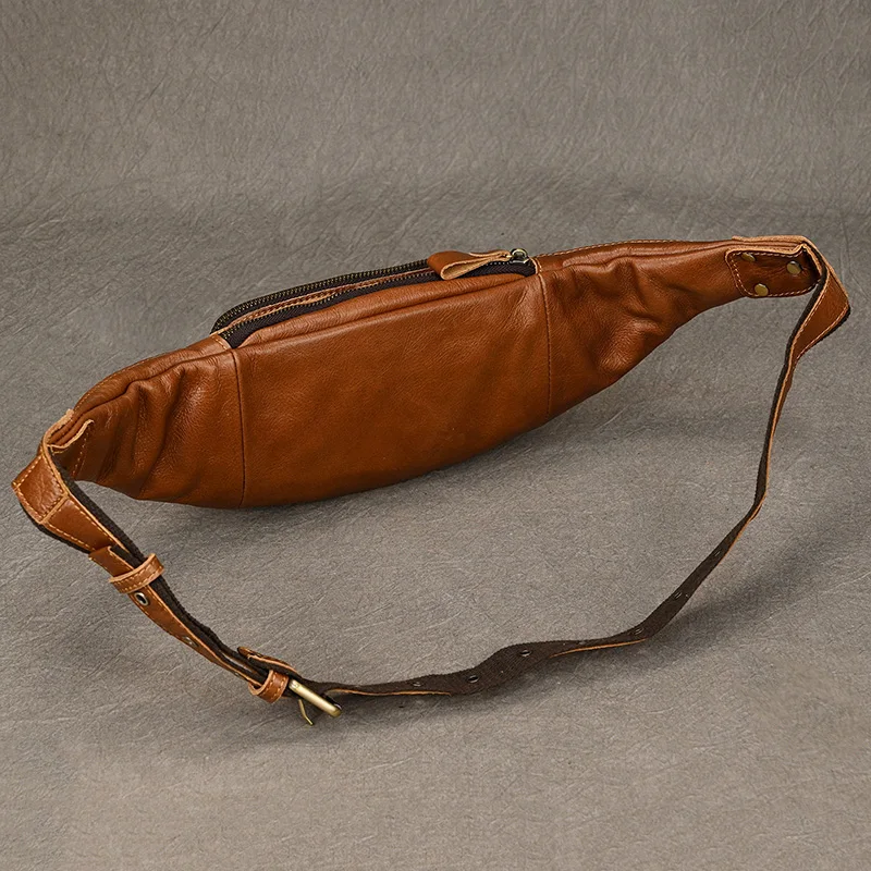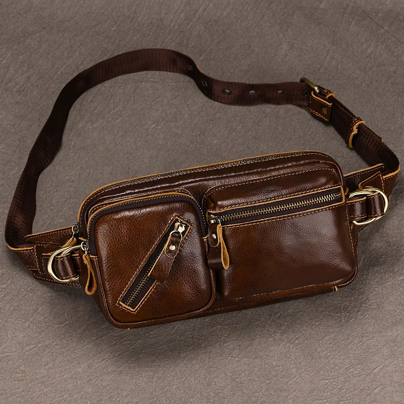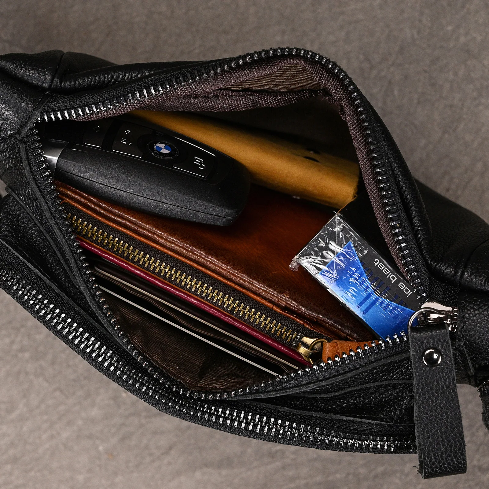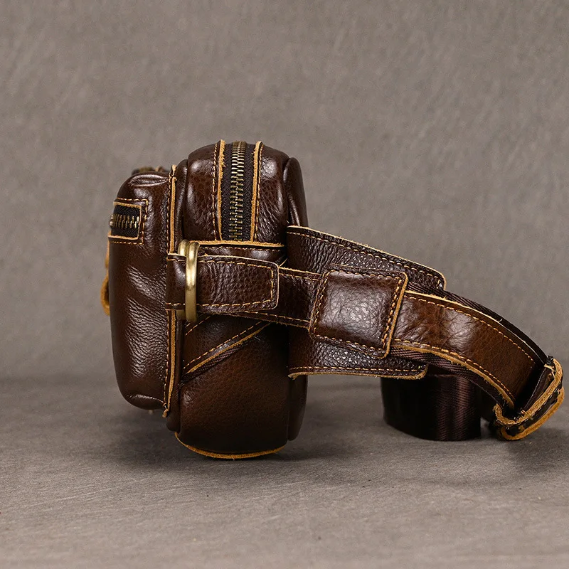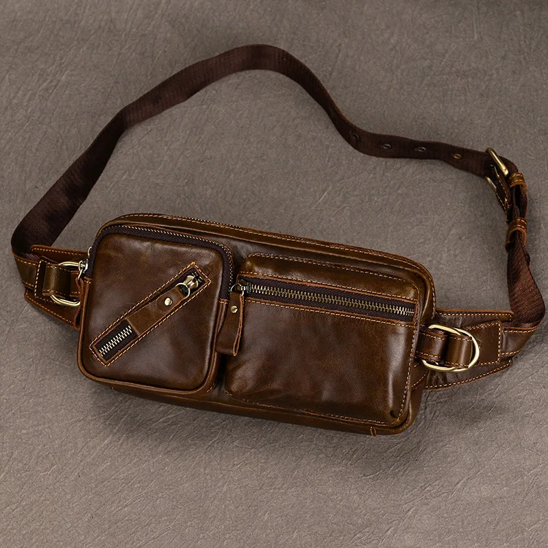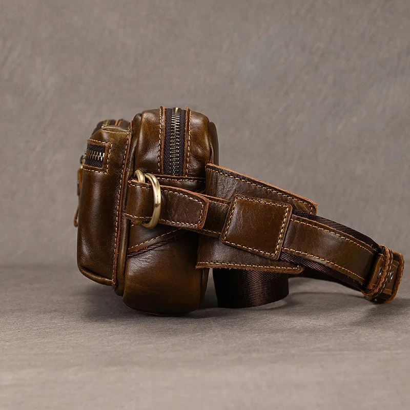 Crazy Horse Leather Men's Waist Bag Mini daily Fanny Chest Pack Cowhide Belt Bag Male Travel Waist Bag For Phone Pouch