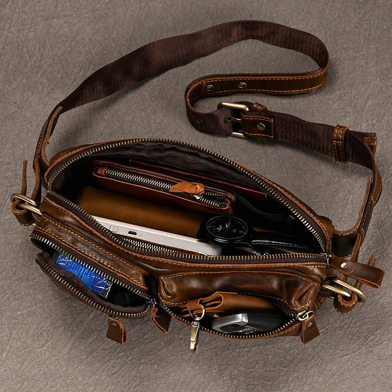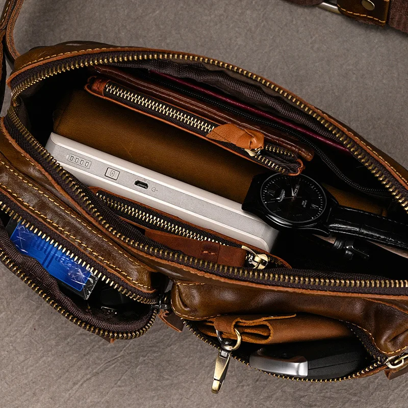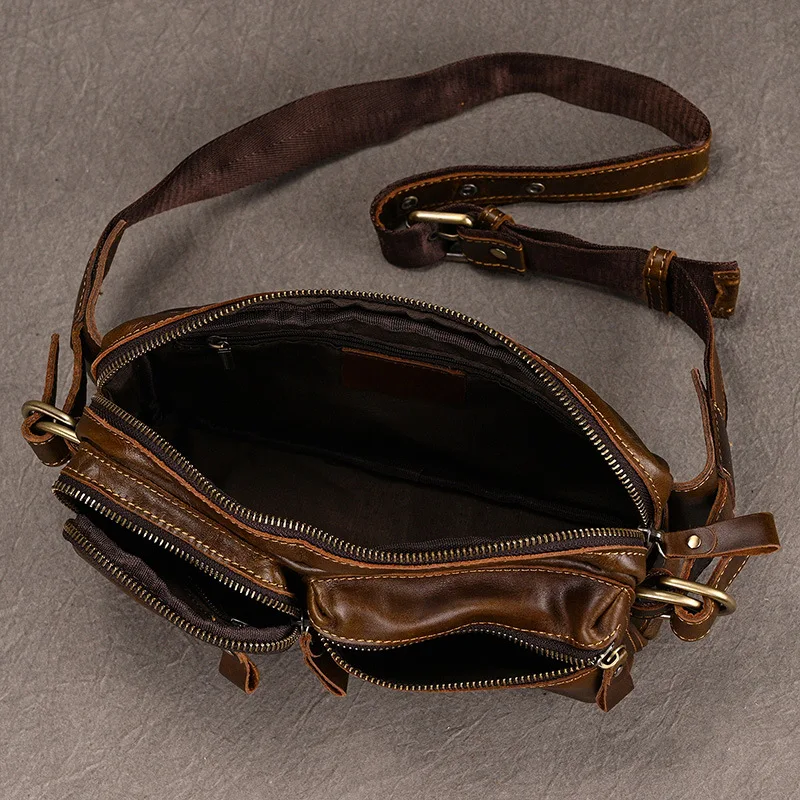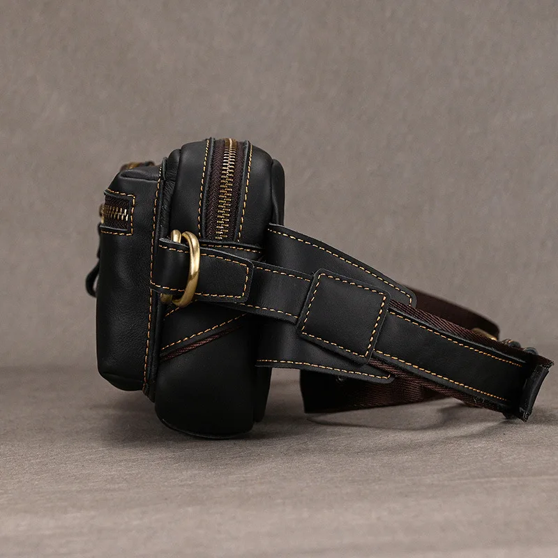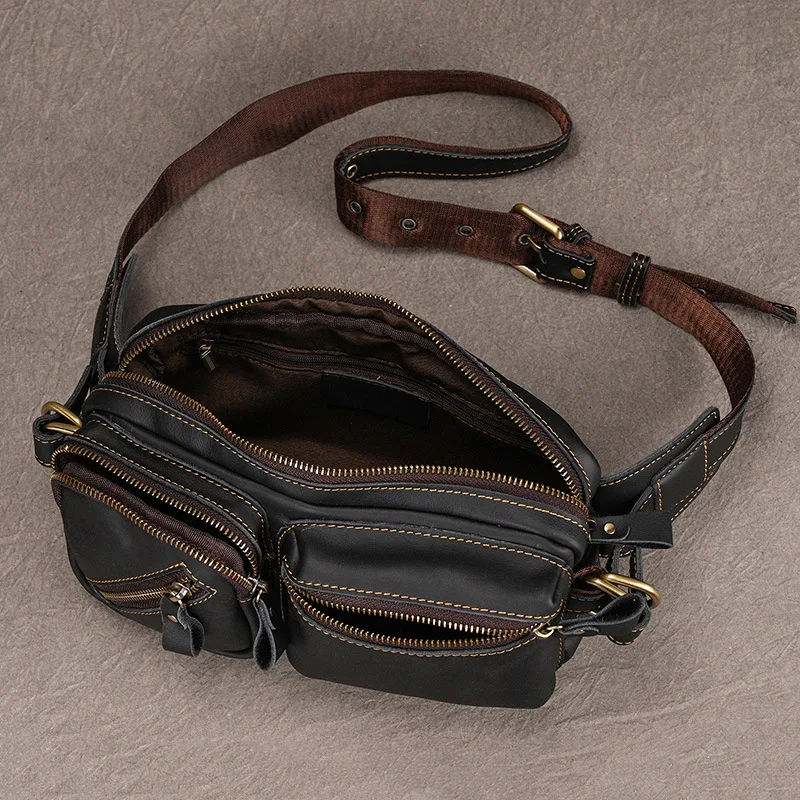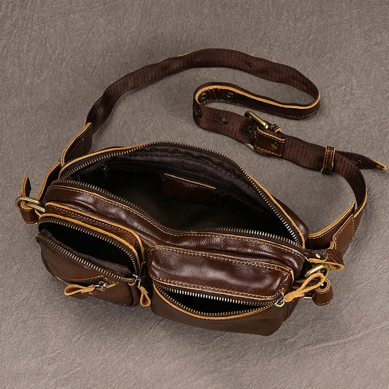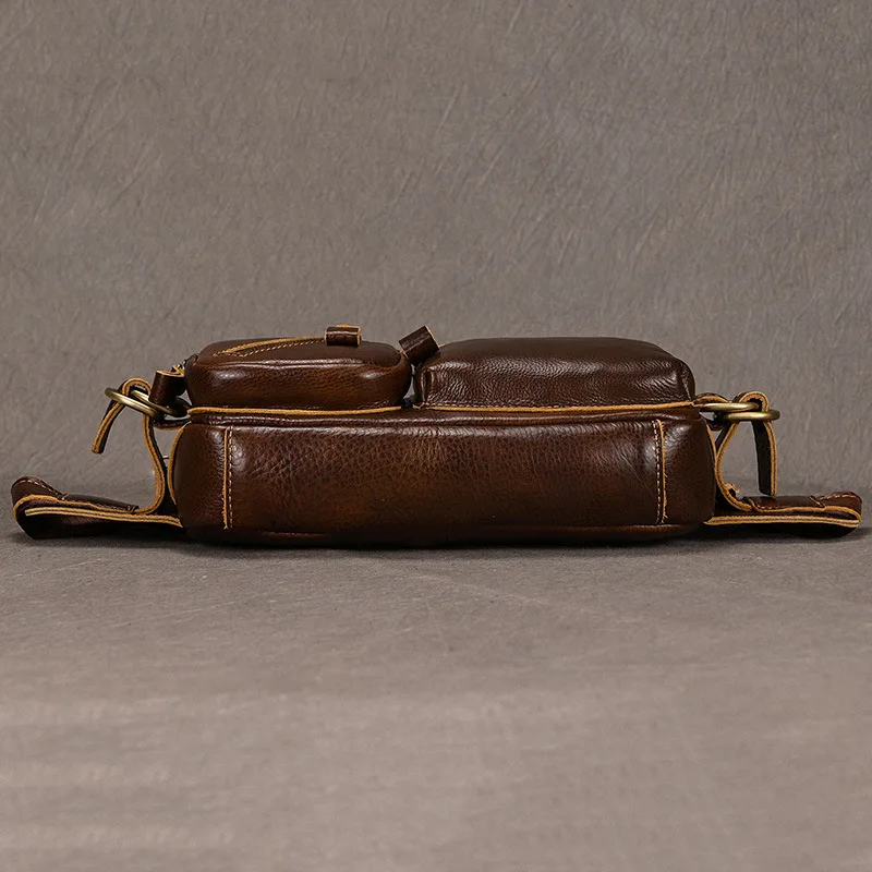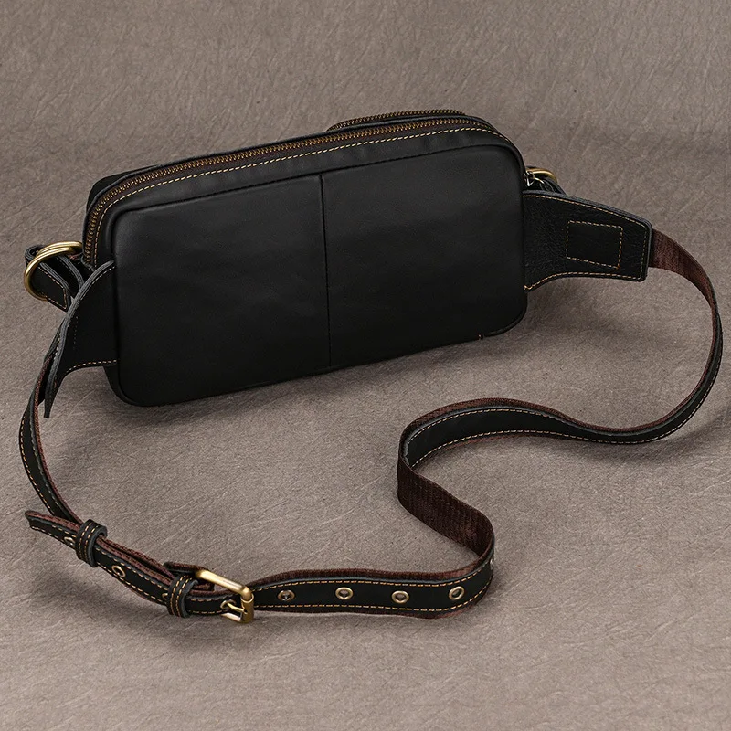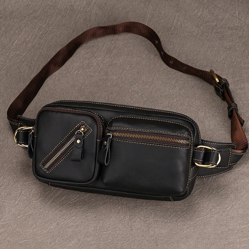 Crazy Horse Leather Men's Waist Bag Mini daily Fanny Chest Pack Cowhide Belt Bag Male Travel Waist Bag For Phone Pouch