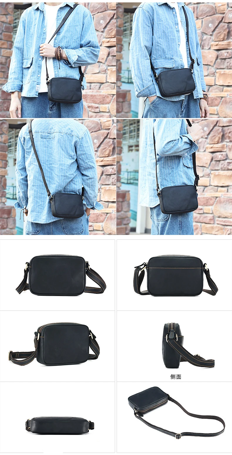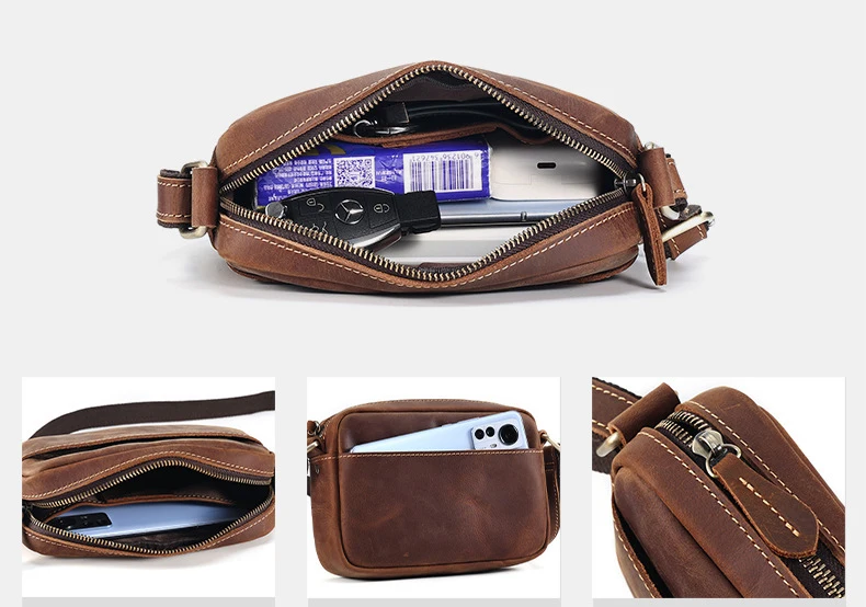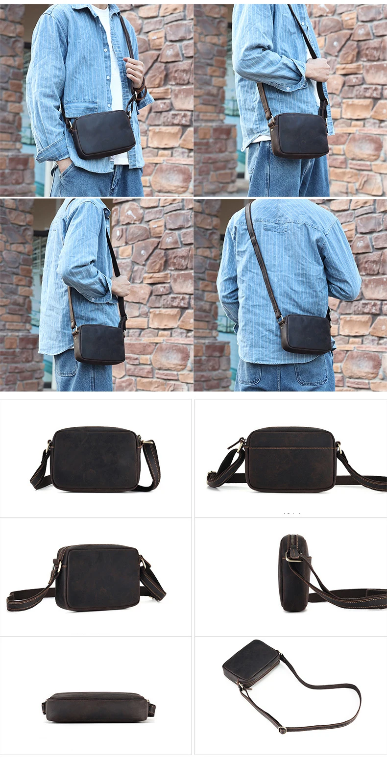 Crazy Horse Leather Messenger Bag Men's Leather Shoulder Bag For Mobile Phone Sling Bags For Men Woman Cross Body Bag