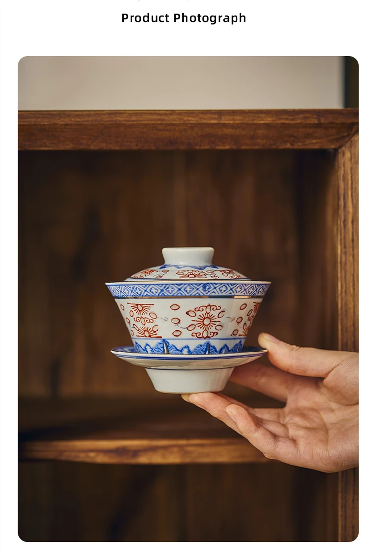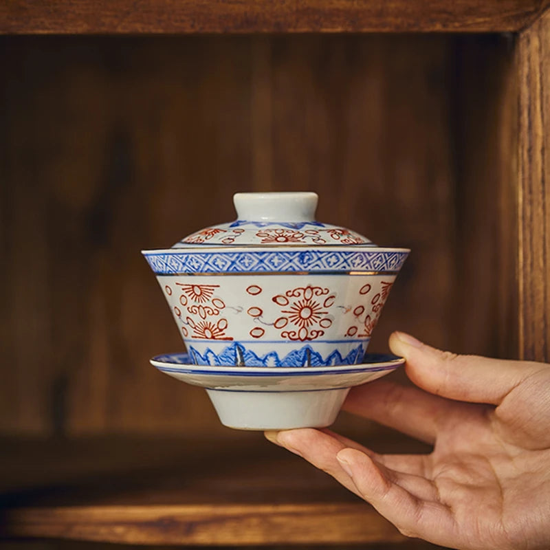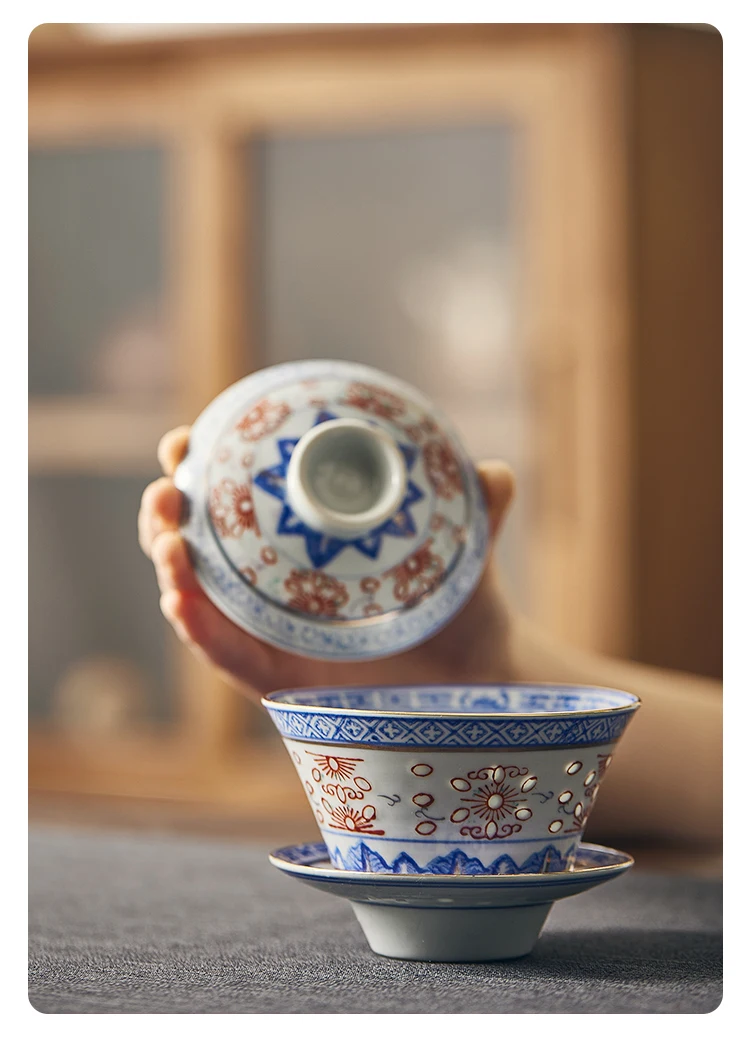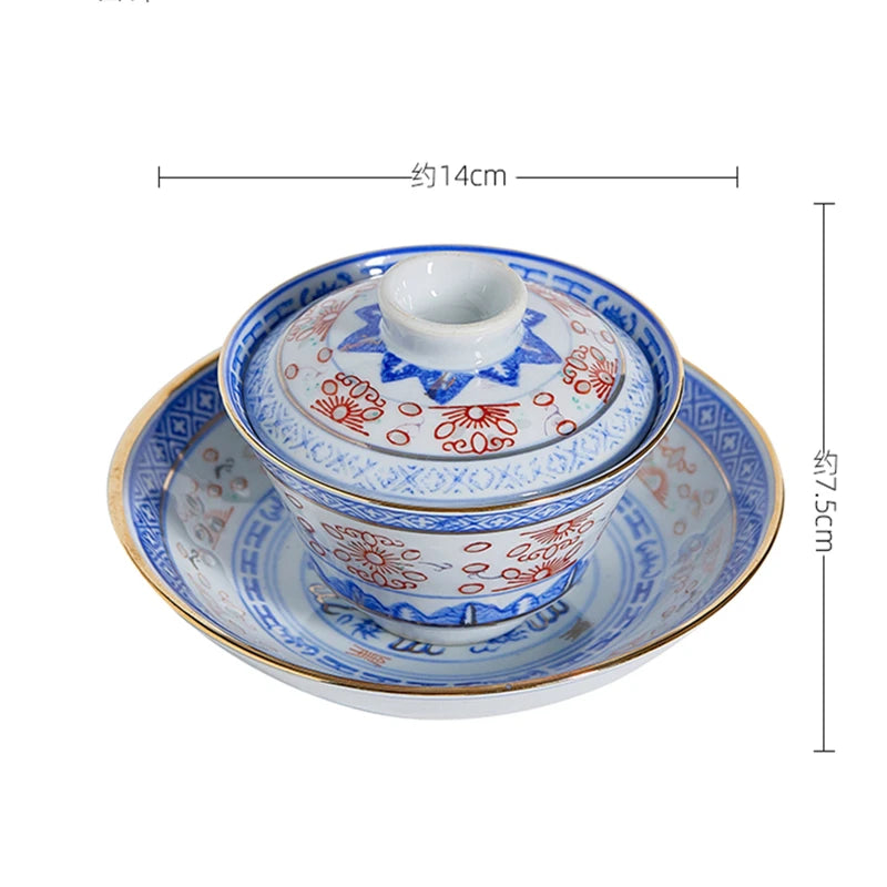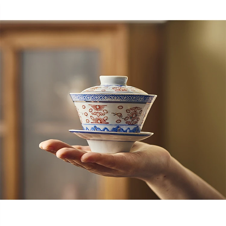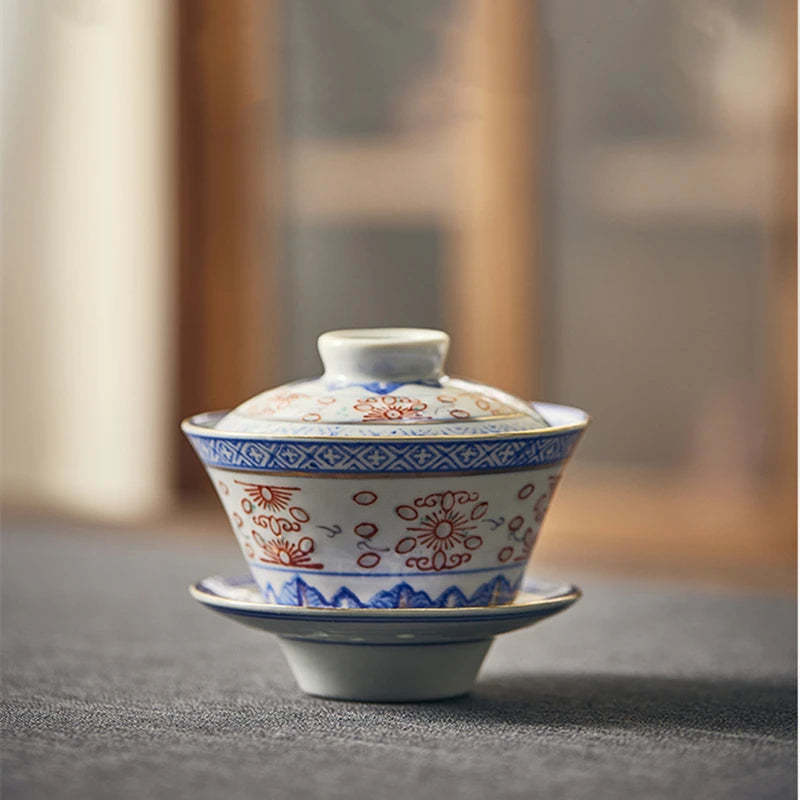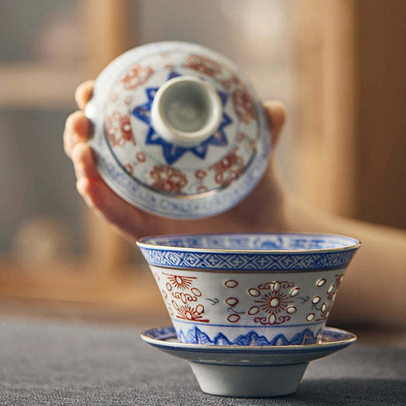 Creative Gaiwan For Tea Tureen With Lid Teaware Blue And White Tea Ceremony Cups Tea Bowls Flower Chinese Chawan