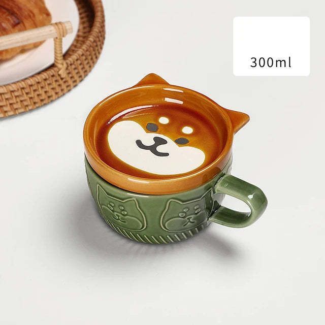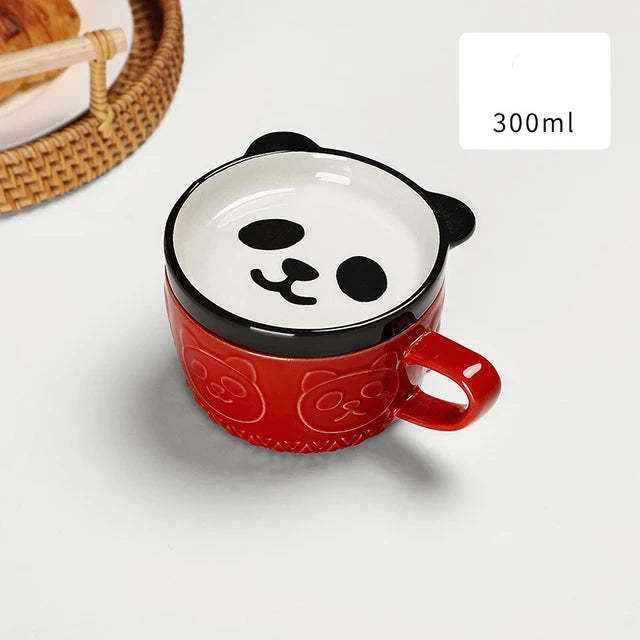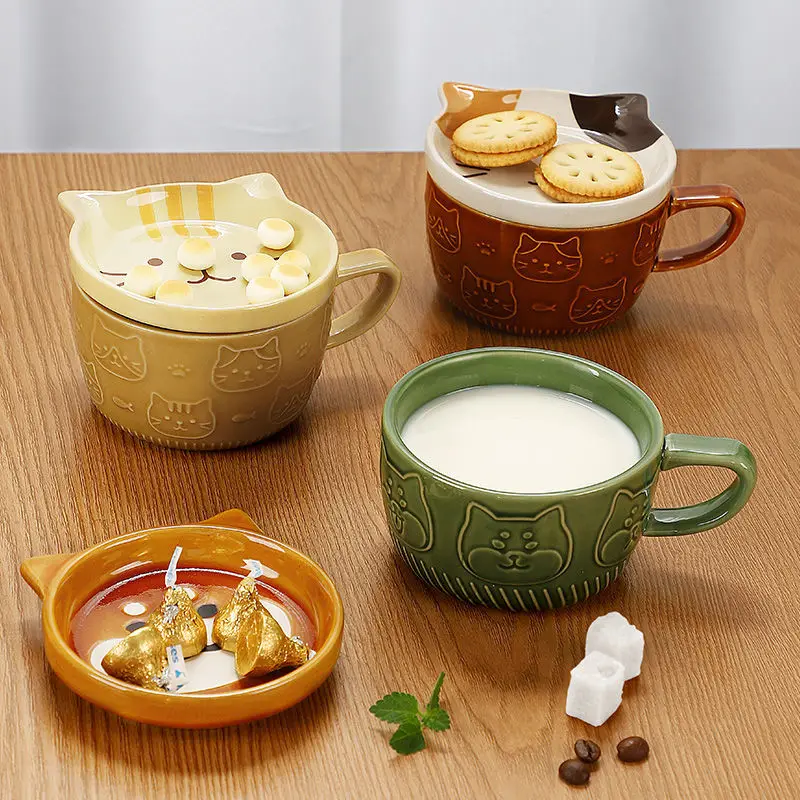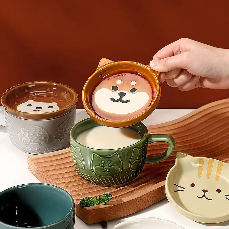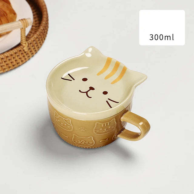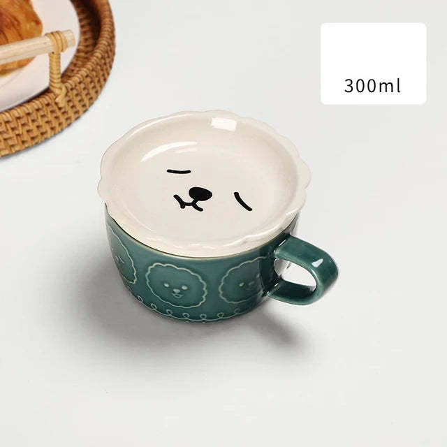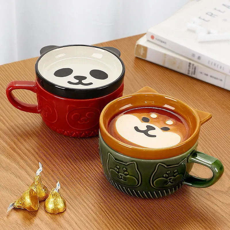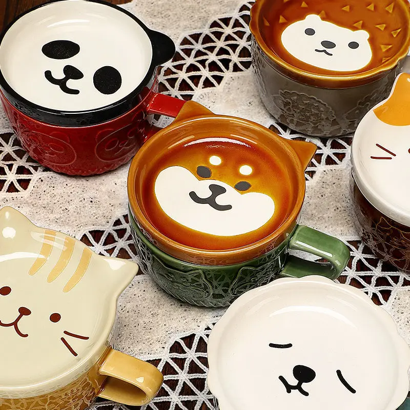Cute Creative Mug Cartoon Animal Ceramic Cups with Lid Tea Coffee Cup Breakfast Cat Ear Student Milk Cups Drinkware