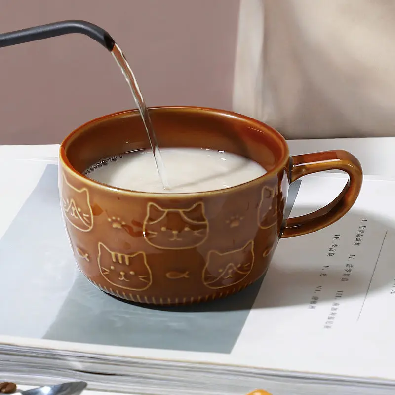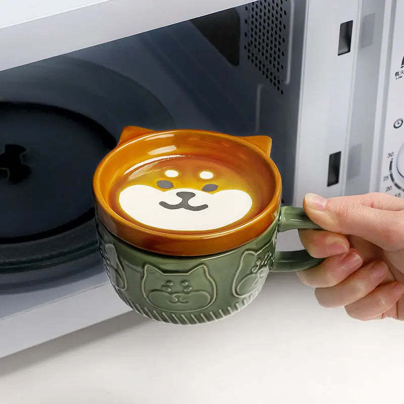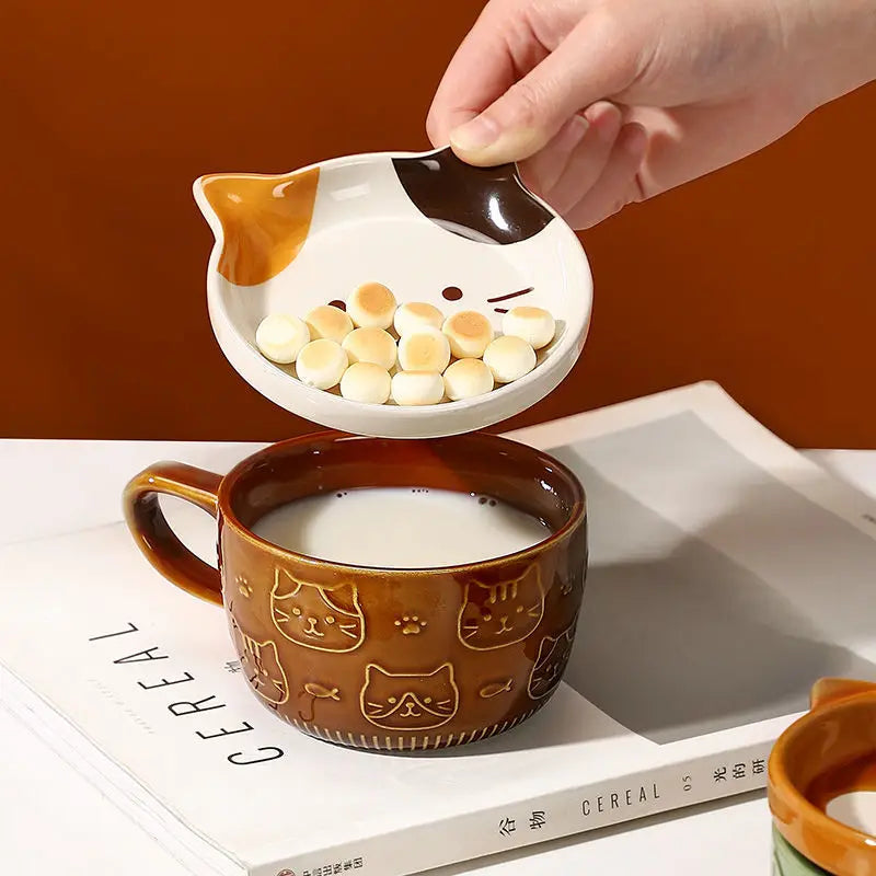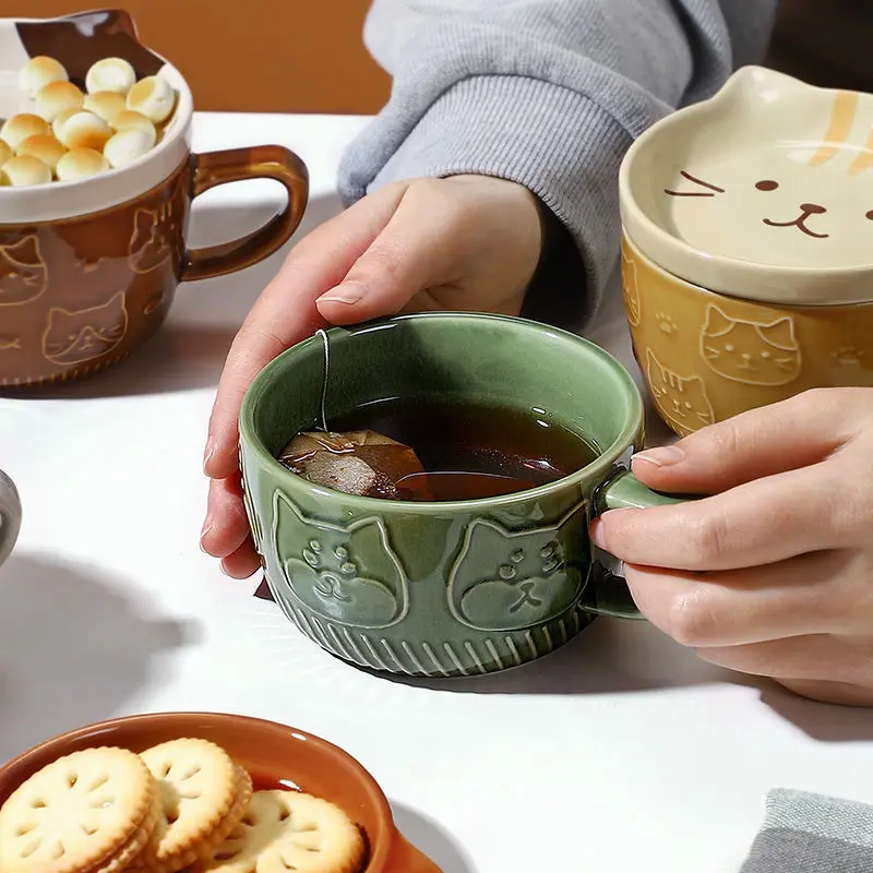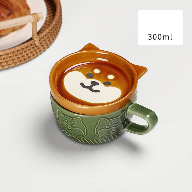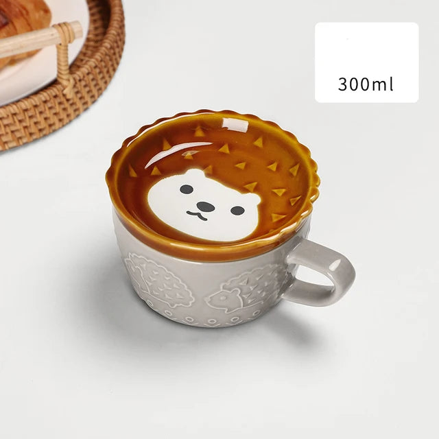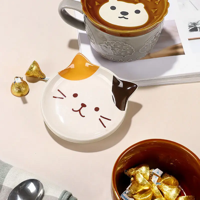 Cute Creative Mug Cartoon Animal Ceramic Cups with Lid Tea Coffee Cup Breakfast Cat Ear Student Milk Cups Drinkware