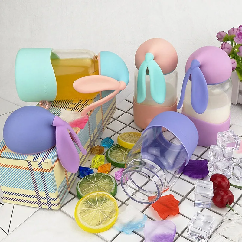 Cute rabbit shape Water Bottle,Cartoon Scrub Sports Space Fruit Juice Plastic Drinkware,Water Bottle Eco-Friendly,Christmas gift