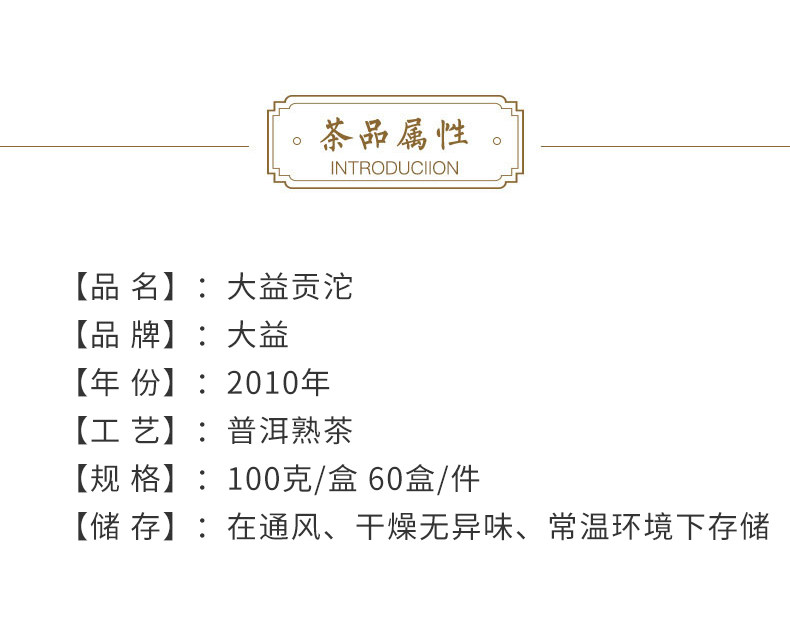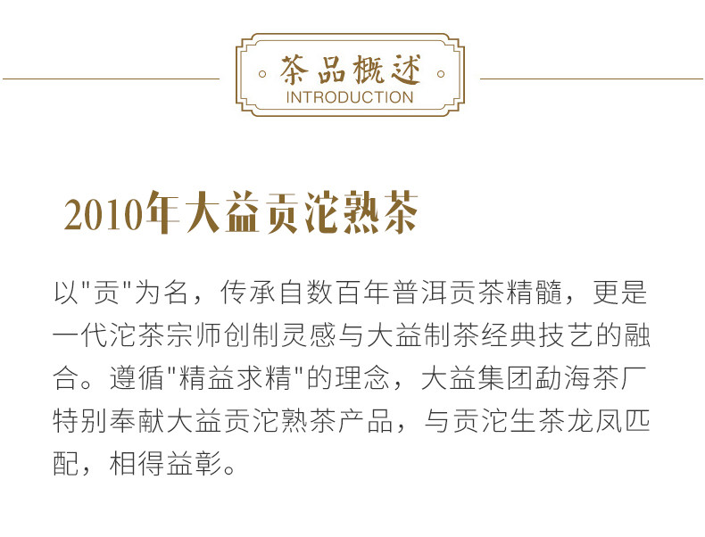 2010 yr ROYAL Premium Tuocha MengHai Dayi (TAETEA) Ripe Pu Erh Tea 100g Tea Type: Puer Ripe tea Net weight: 100g/pc, Price for one pcs ONLY. Production Date: 2010,001 batch Origin: Menghai,Yunnan,China Manufacturer: Menghai Tea factory,TAETEA Group.