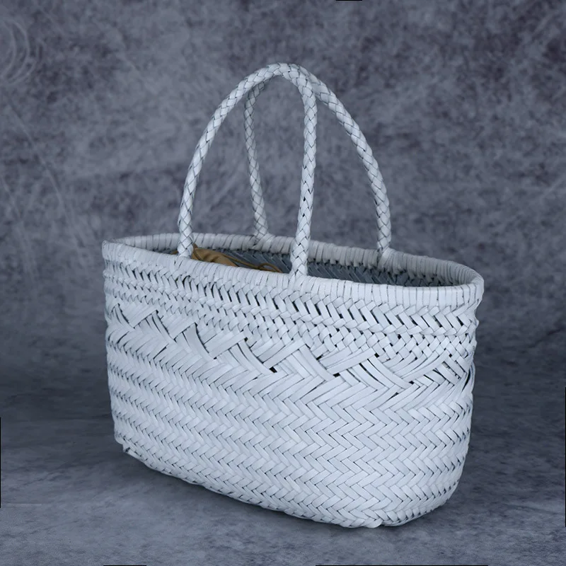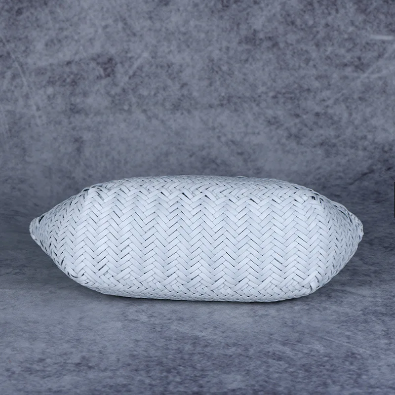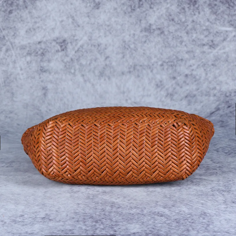 Designer woven totes bag women genuine leather cowskin knitting basket handbag female hollow out bucket bag 2022 summer new