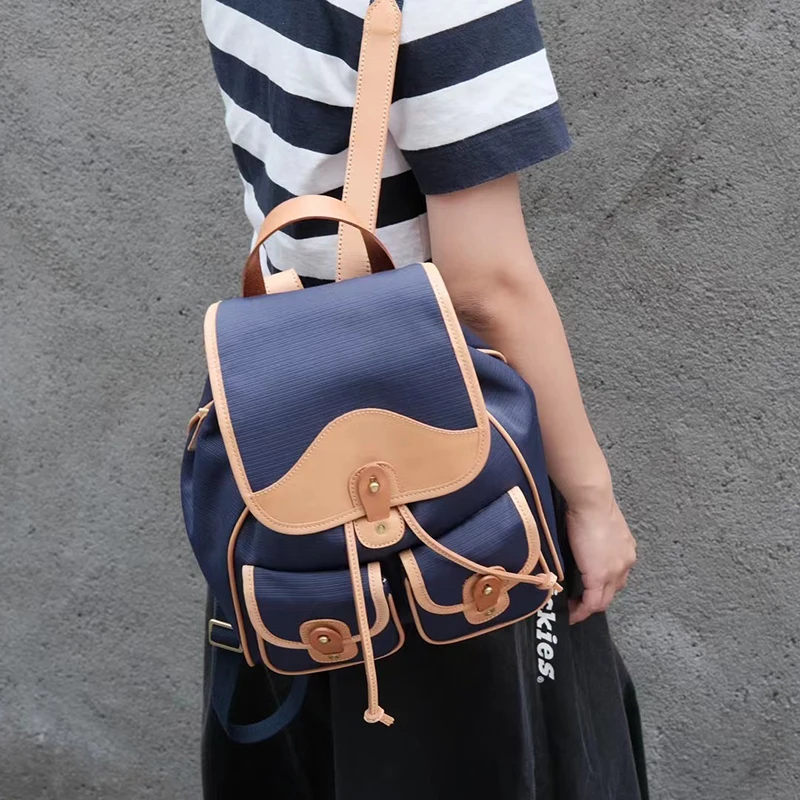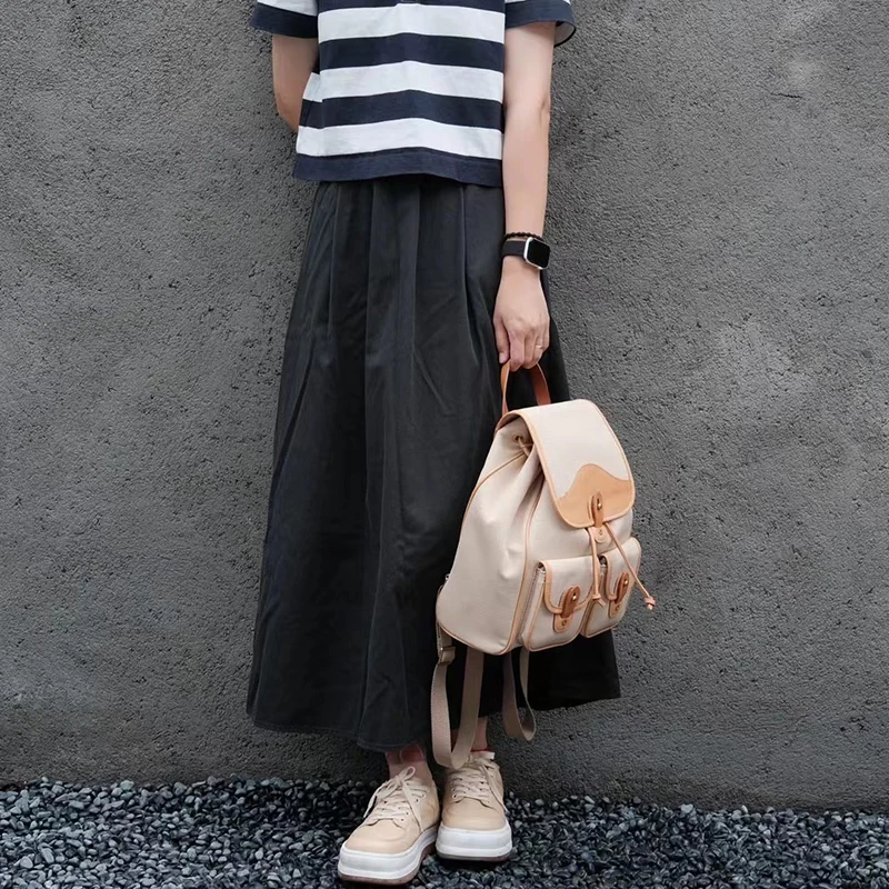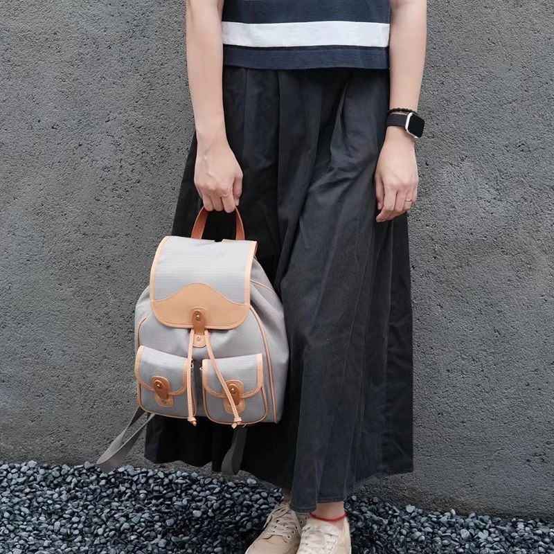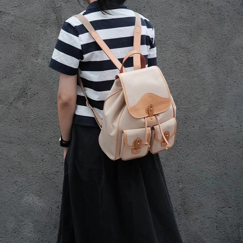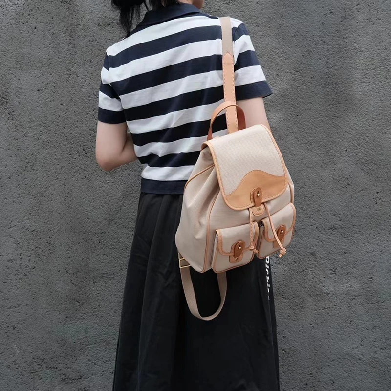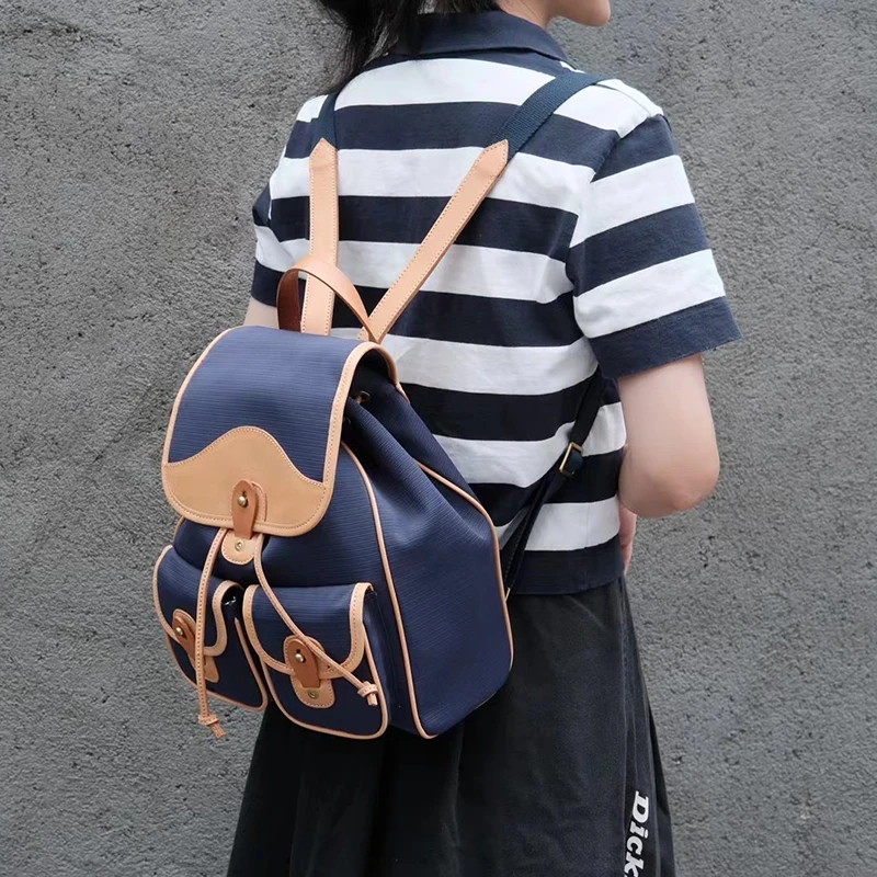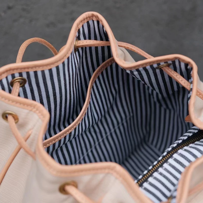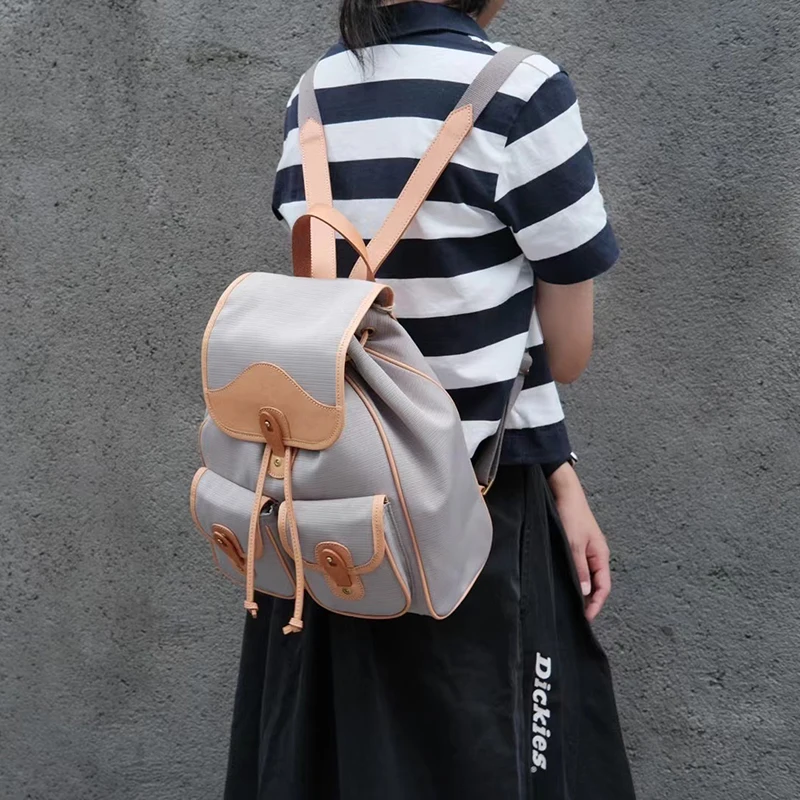 Donna-in Genuine Leather Backpack Minimalist Common Casual Drawstring Schoolbag Travel Student Large Capacity College Class Bag