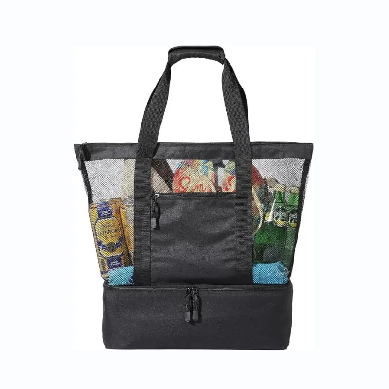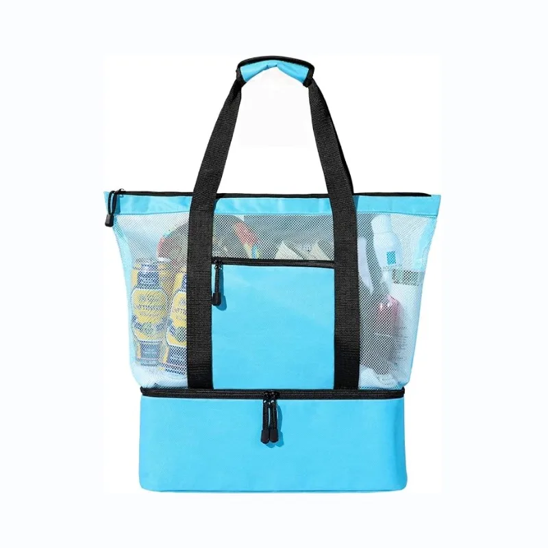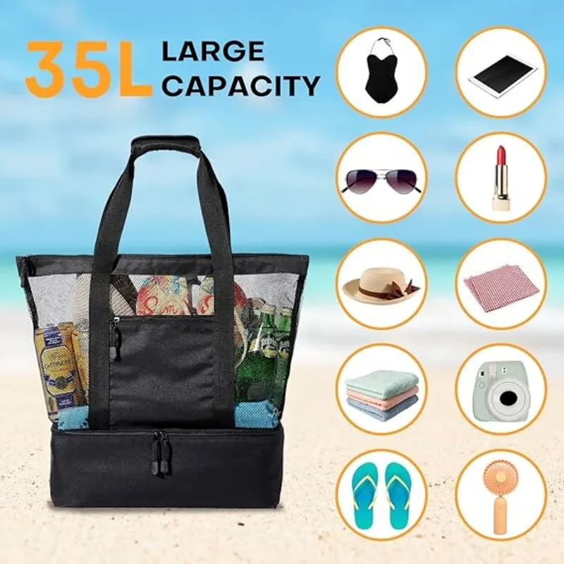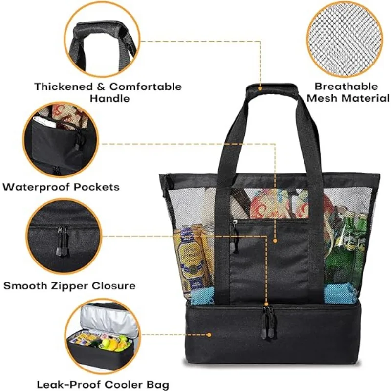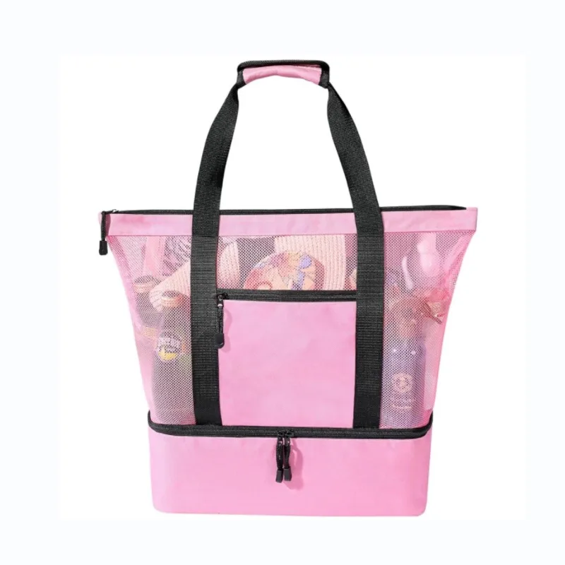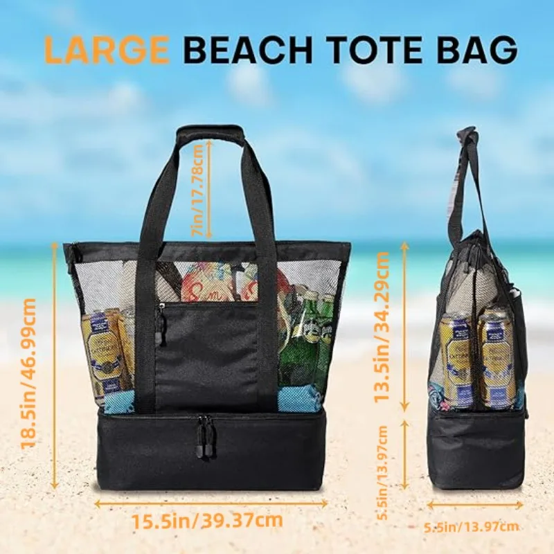 Dry and Wet Separation Beach Pool Mesh Storage Tote Bag Large Portable Swim Gym Tote Carry On Bag for Weekender Travel
