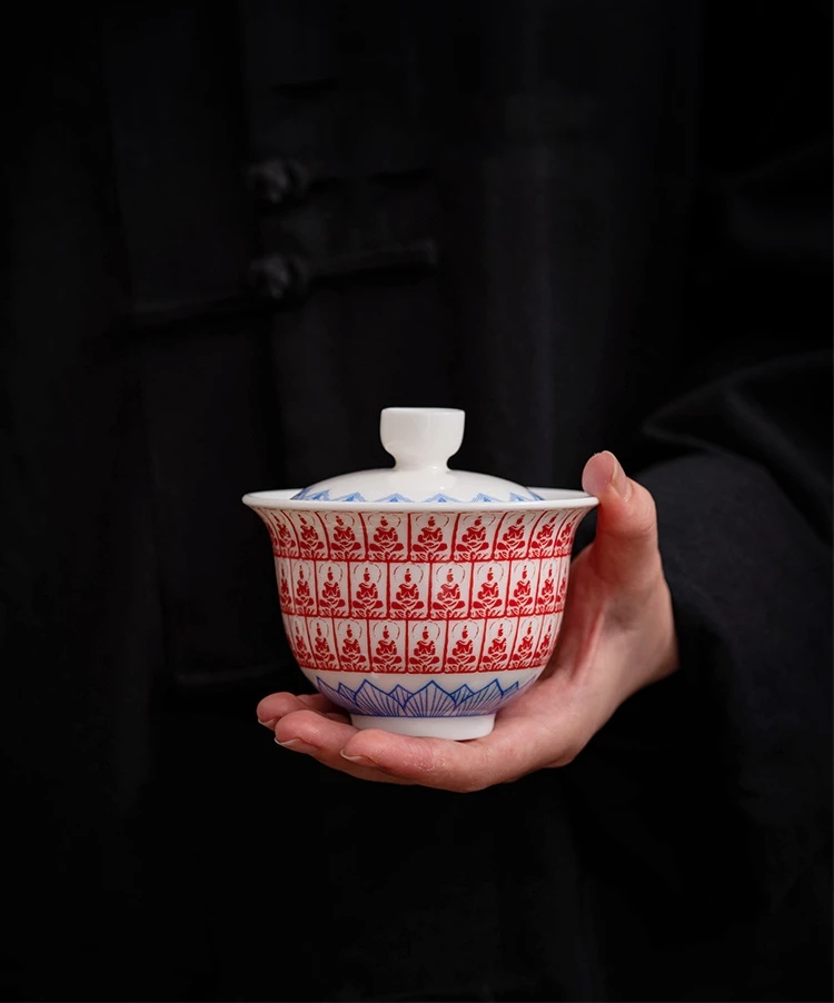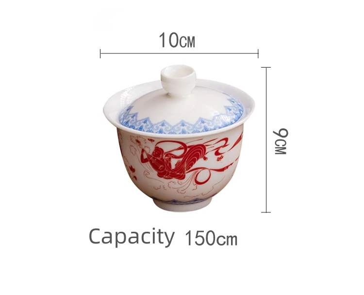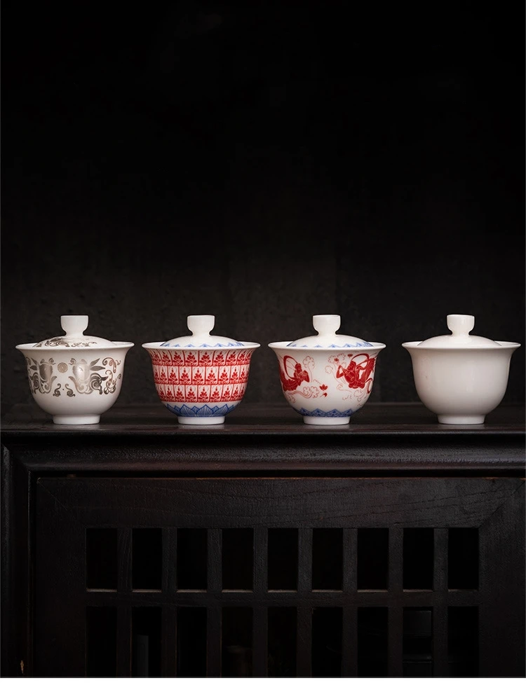Dunhuang Thousand Buddhas Jade Gaiwan For Tea Porcelain Chinese Tureen Teaware Set Tea Bowl Kung Fu Tea Chawan Tea Cups Lily