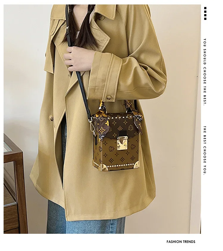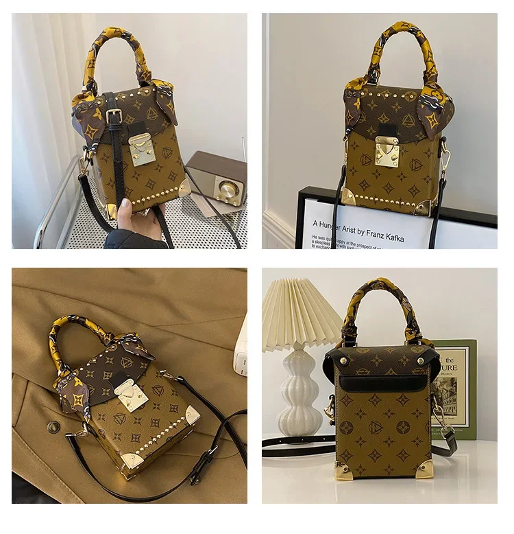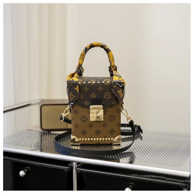 European American Style Retro Classic Print Women's Bag High-end Small Square Bag Simple Box Mobile Phone Bag Fashion Versatile