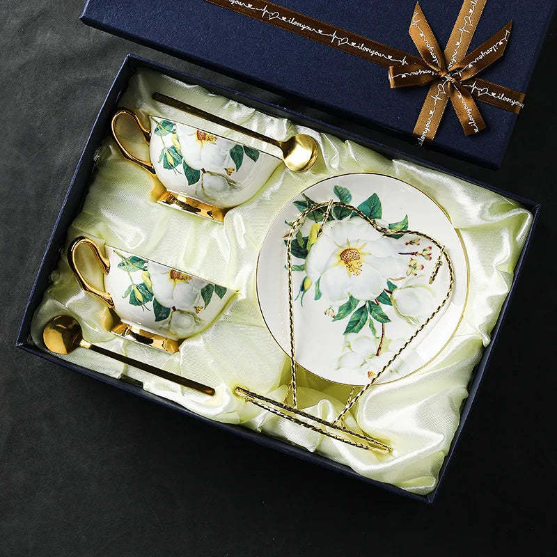 European Coffee Cup Set Bone Porcelain Flower Tea Cup Simple Ceramic Household English Black Tea Cup Afternoon Tea Set