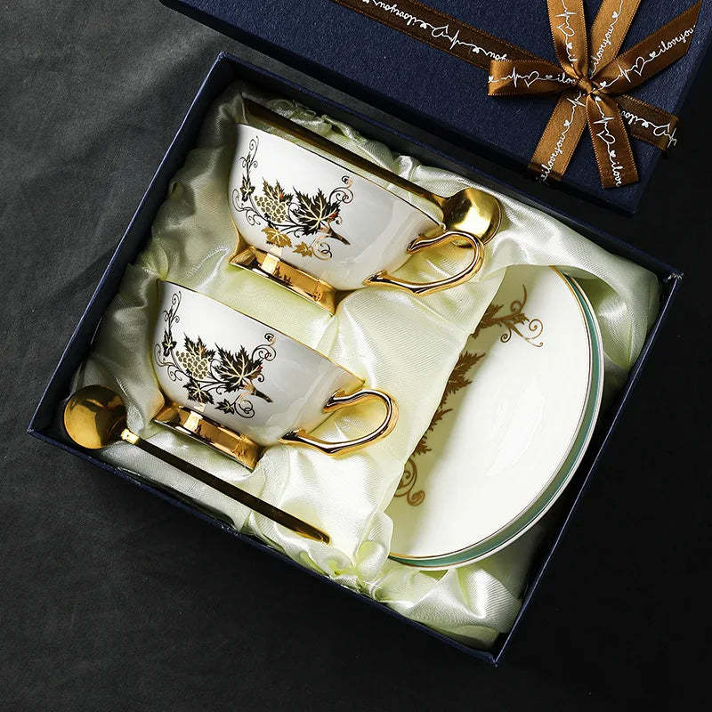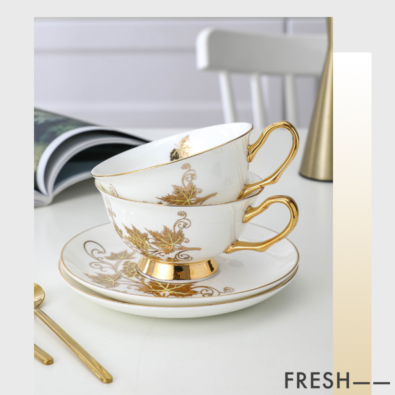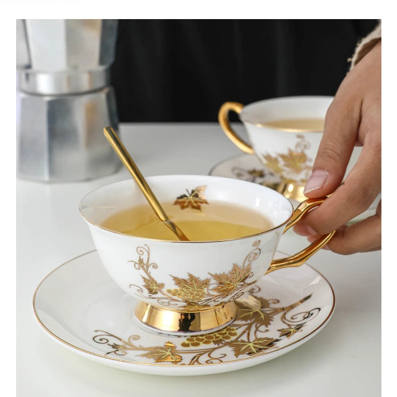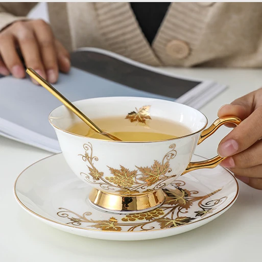 European Exquisite Coffee Cup and Dish Set Luxury British Afternoon Tea Cup Bone Porcelain Ceramic Household Flower Tea Cup