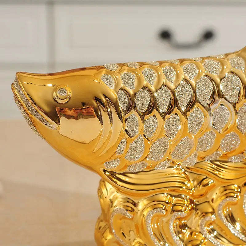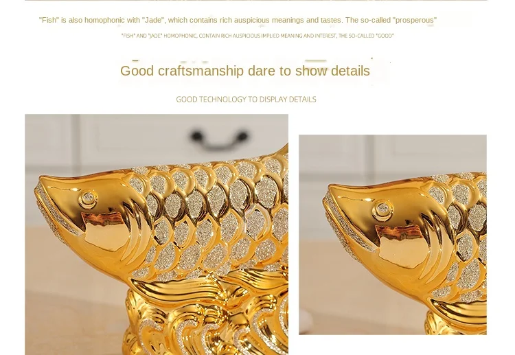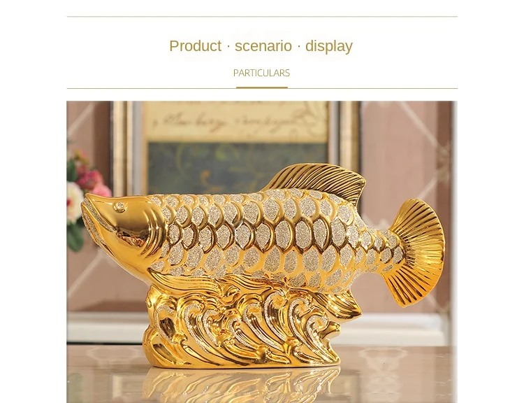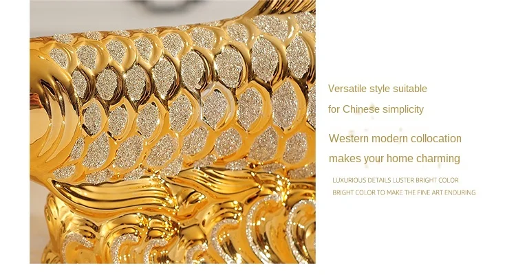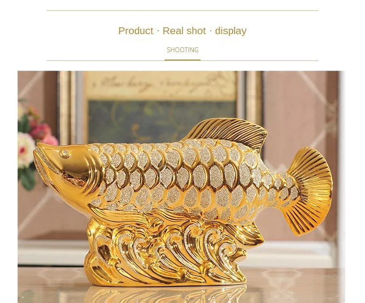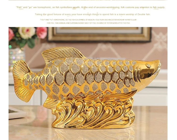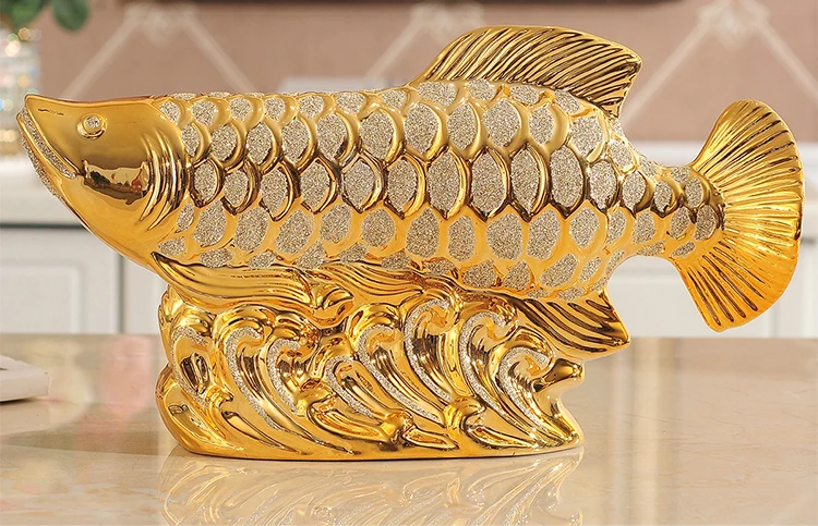 European Wedding Decor Crafts Ceramic Creative Room Decoration Handicraft Gold Arowana Porcelain Figurines Decorations W4035