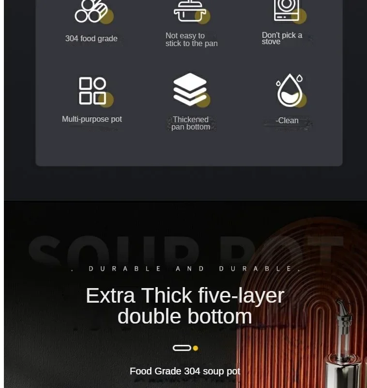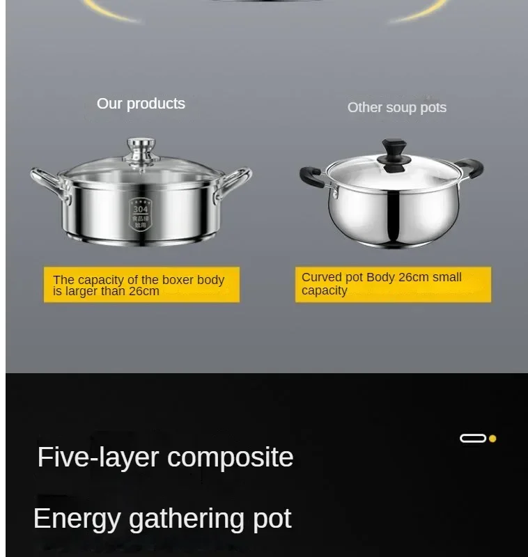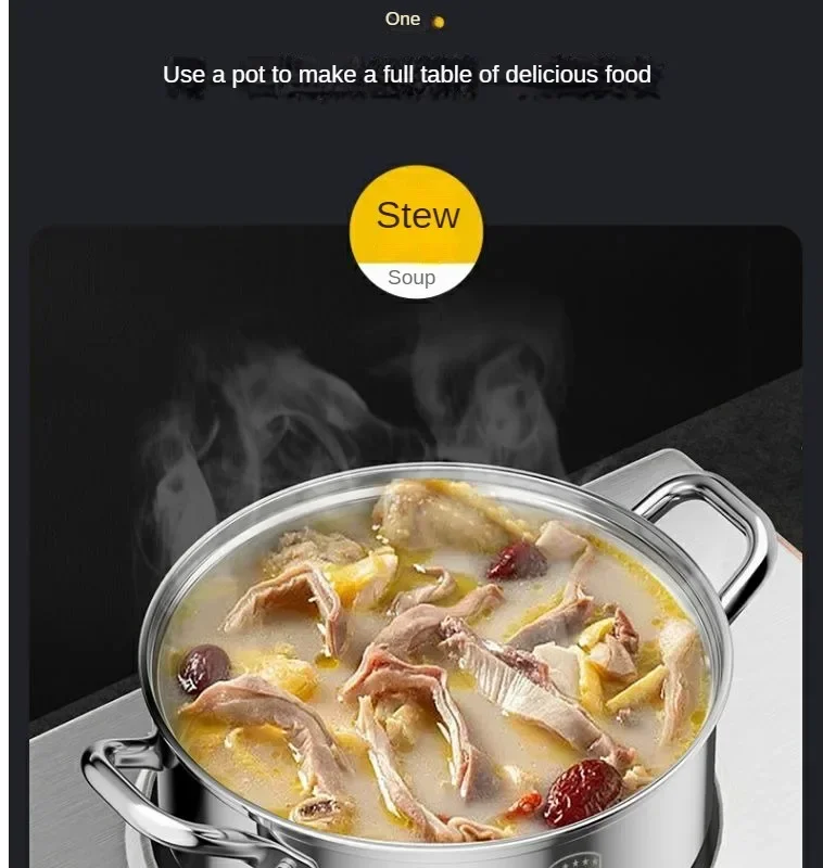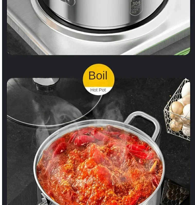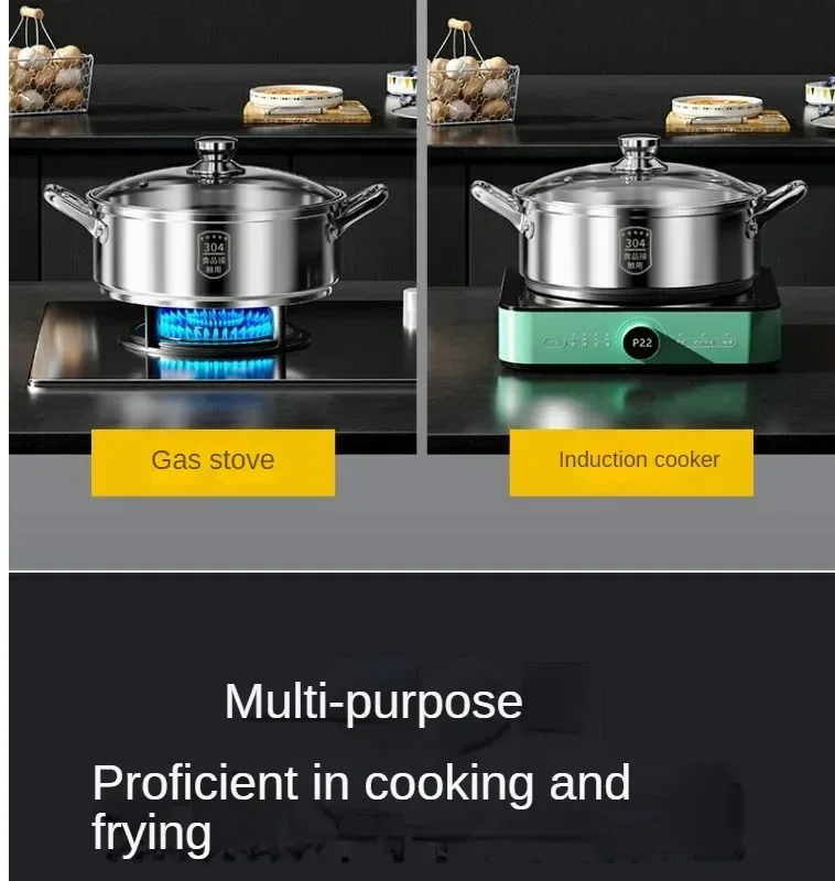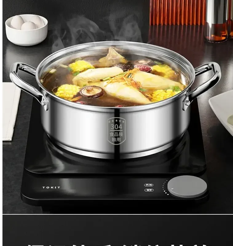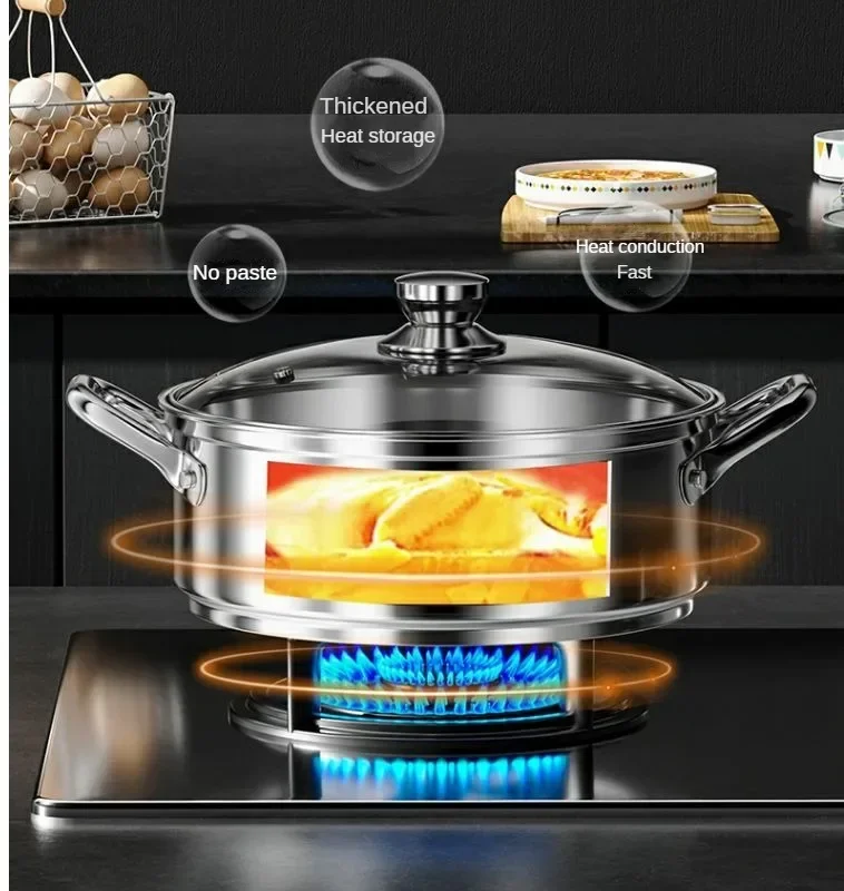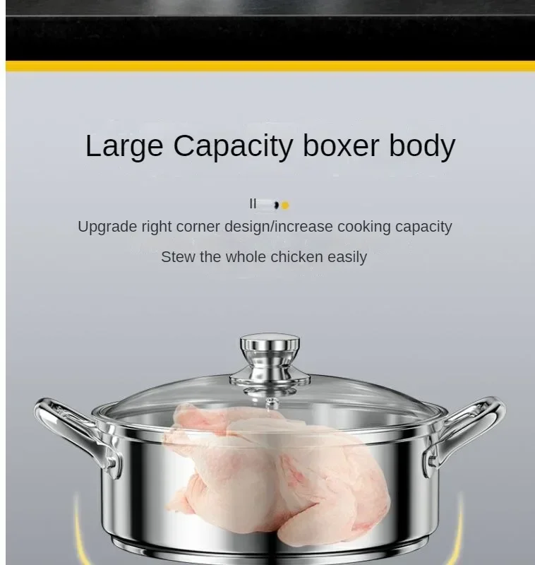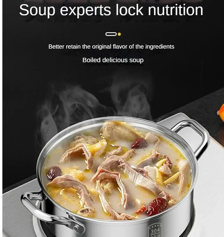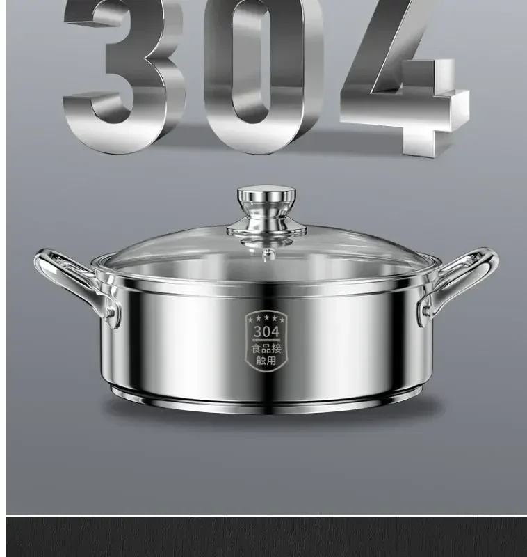 Extra-thick Soup Pot 304 Stainless Steel Induction Cooker Special Gas Cooker Steaming Stew Thickened Double Ear Hot Pot Househol