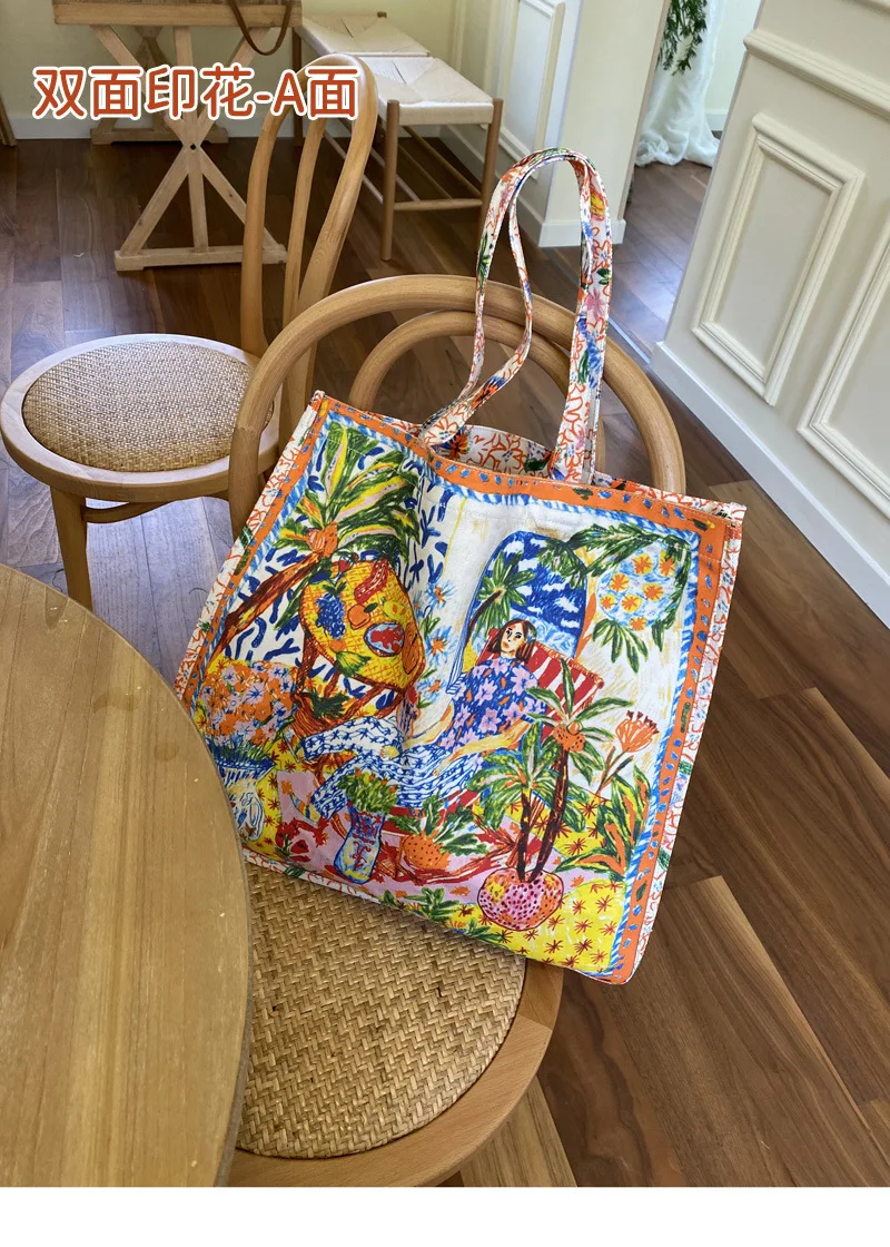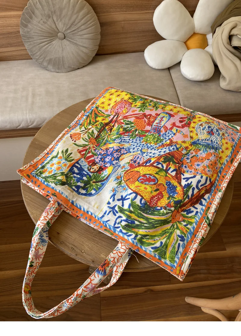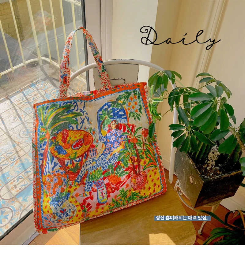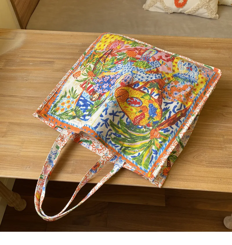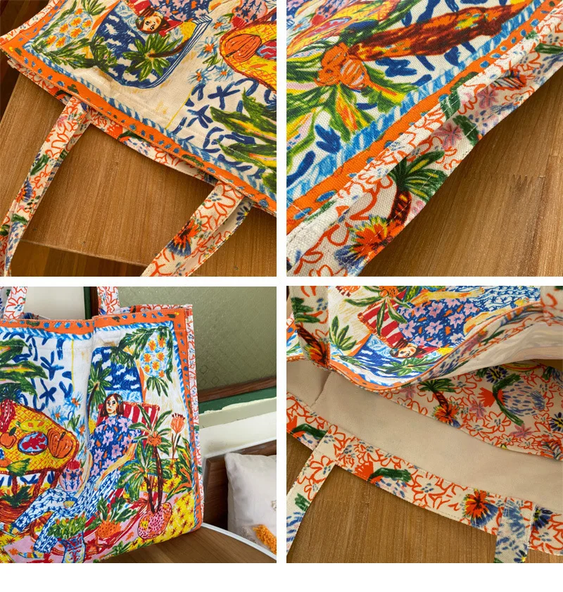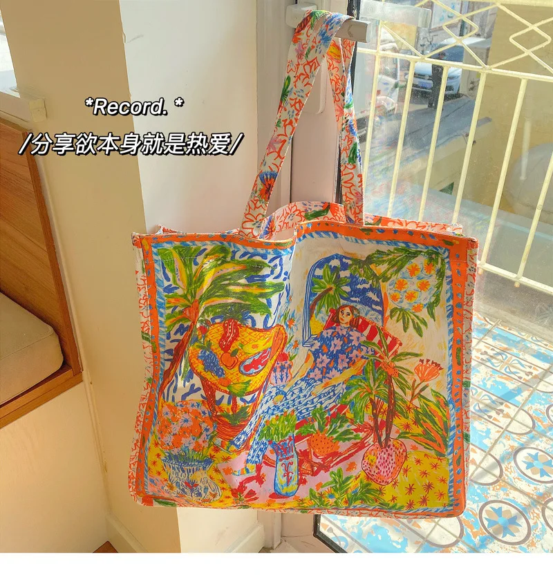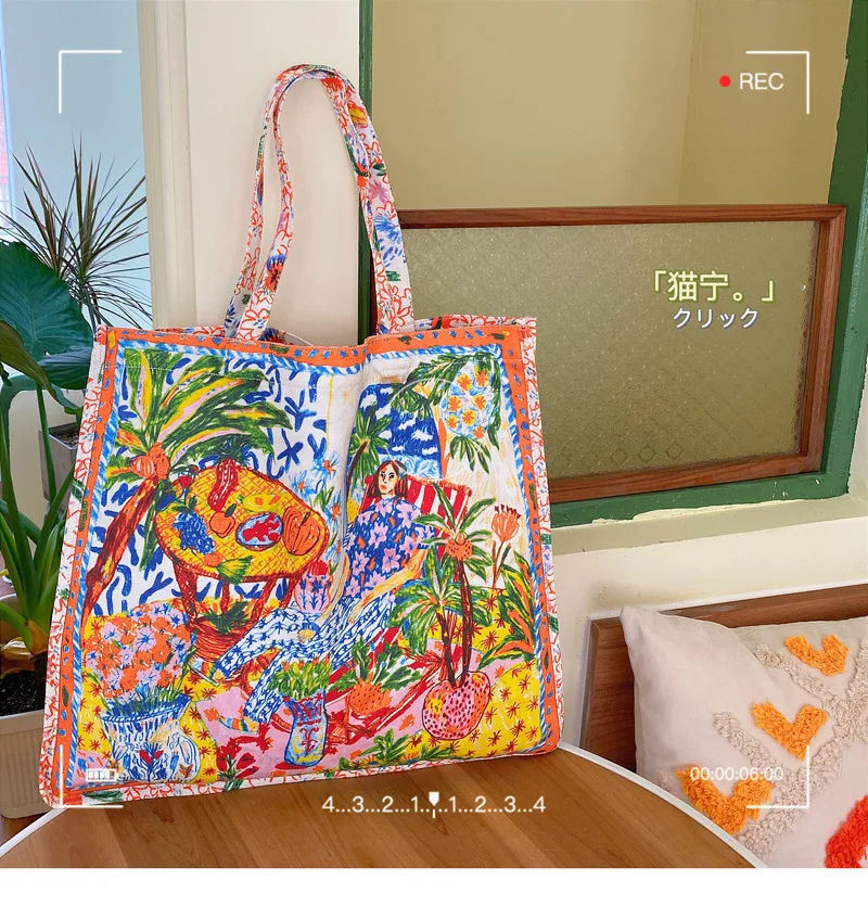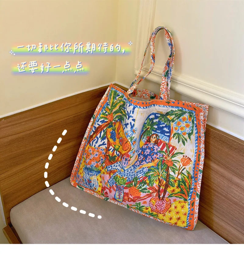 Fashion Canvas Tote Bag Printing Shoulder Bags For Women High Capacity Cross Body Bag Casual Shopper Bags Daily Handbag