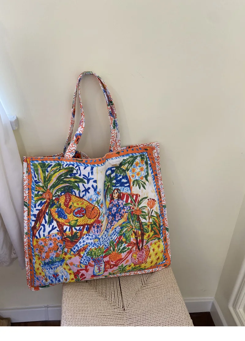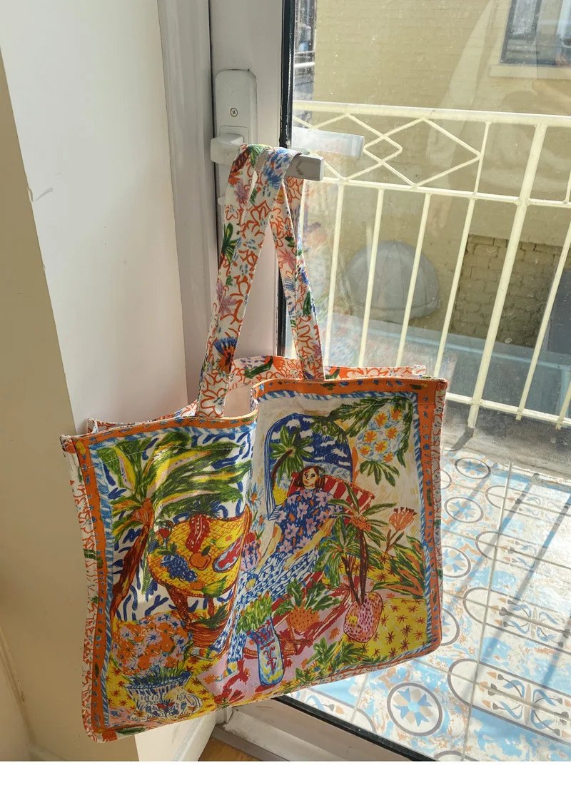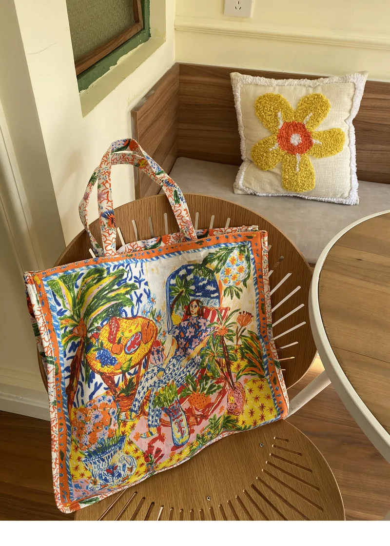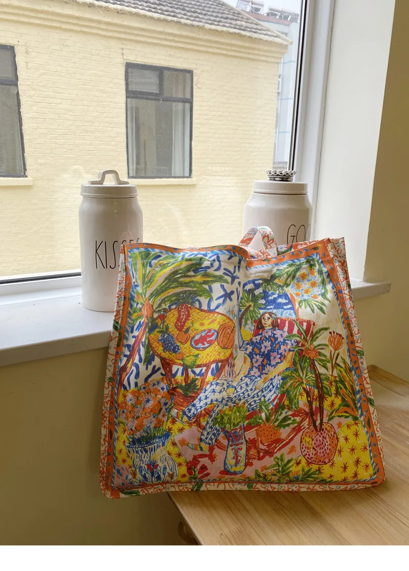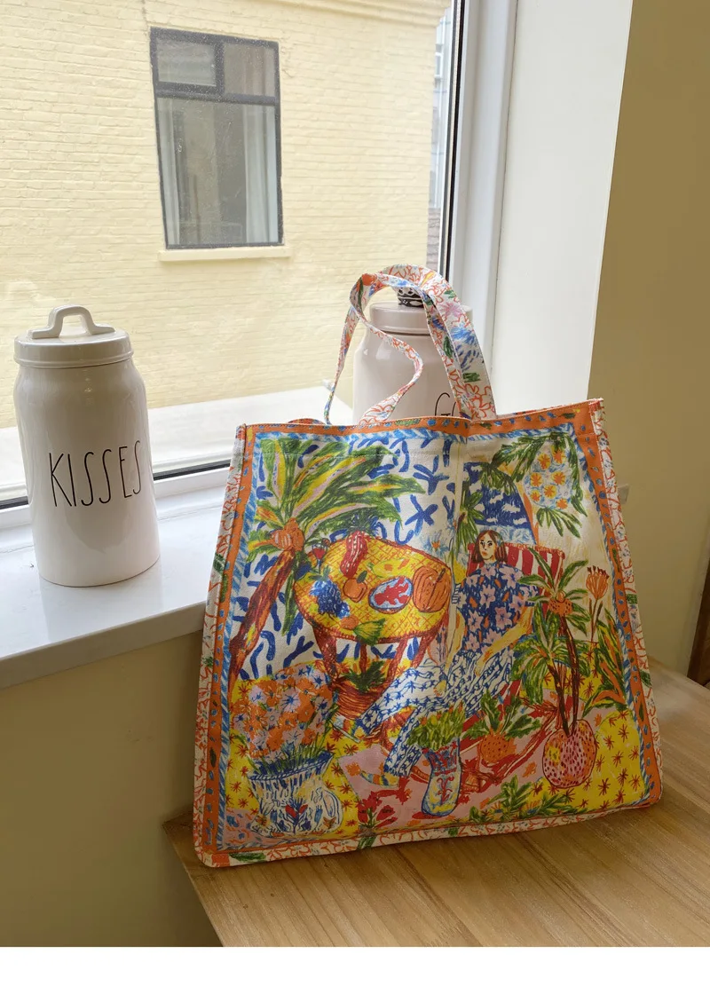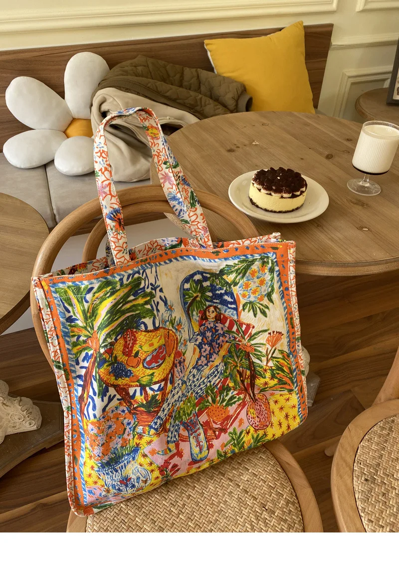Fashion Canvas Tote Bag Printing Shoulder Bags For Women High Capacity Cross Body Bag Casual Shopper Bags Daily Handbag
