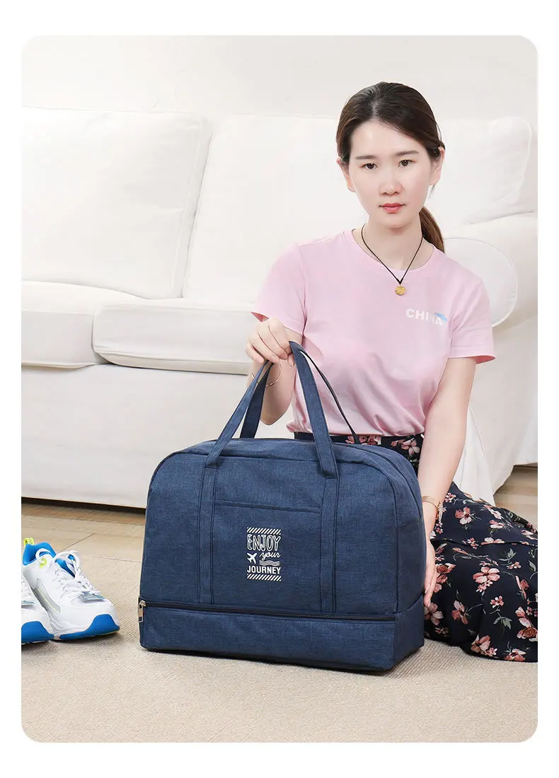 -4. Separate bag at the bottom, can store shoes, clean and hygienic, the shoe compartment is made of waterproof inner material