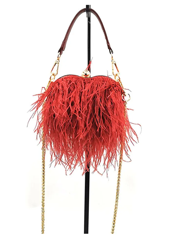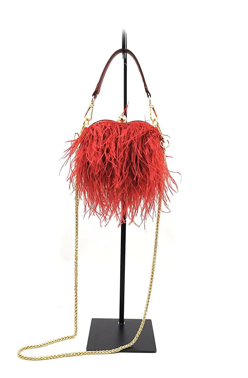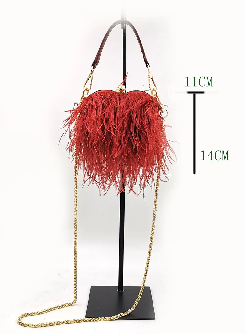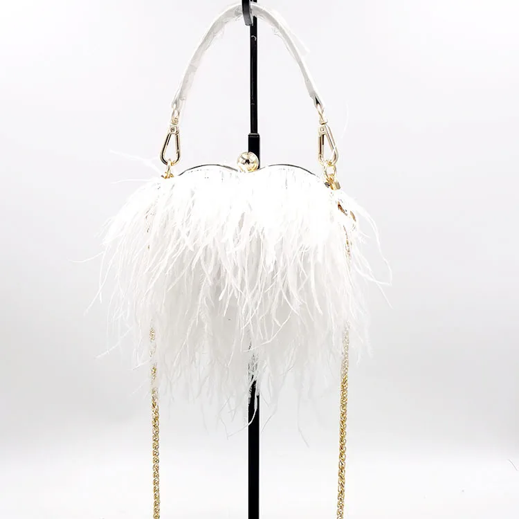 Fashion luxury Ostrich Fuax Fur Feather Wallet marry Bag Ladies Diamond Knuckle Rings Dinner messenger Party Tote Bag