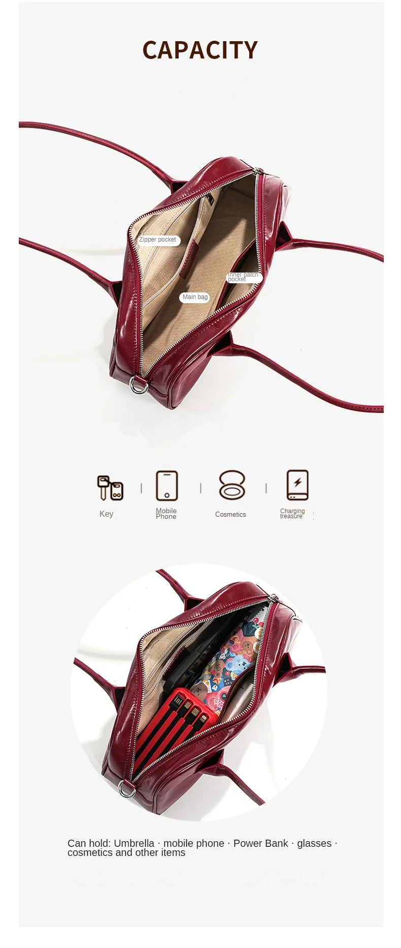 Fashionable and versatile, this magic wand bag is enough! Large capacity and easy to match, fully occupying the beauty and strength! Made from carefully selected high-quality cowhide, the leather has a natural luster and clear texture, giving it a soft and textured feel. The bag opening is sewn multiple times: the zipper opening and closing range of the bag opening is large, and it can be adjusted to match the needs of the armpit and handheld. Umbrellas, mobile phones, power banks, keys, and other items can be easily stored. They are truly stylish, fashionable, and casual styles with strong plasticity