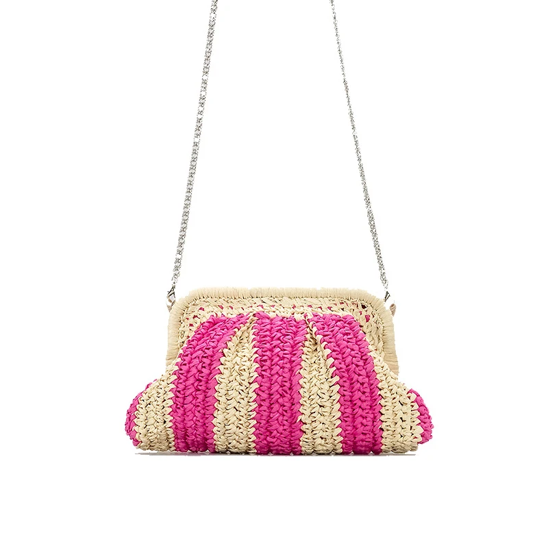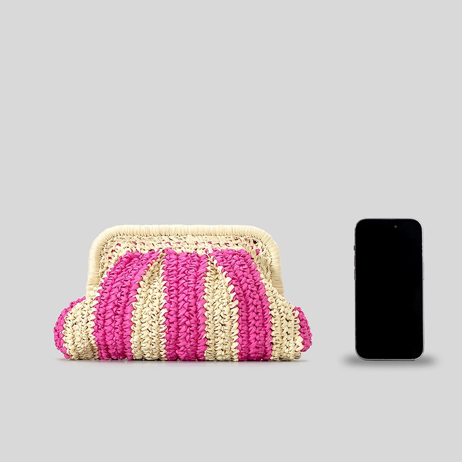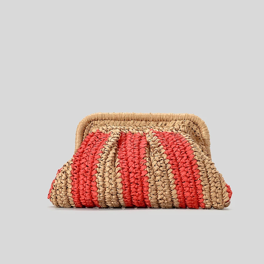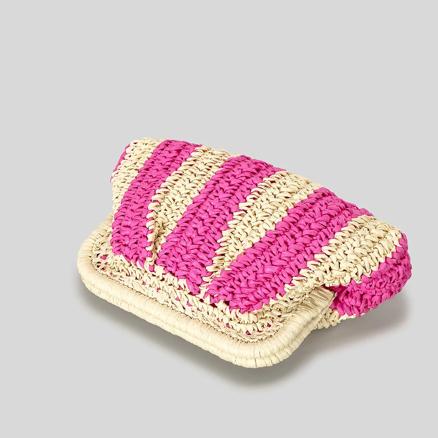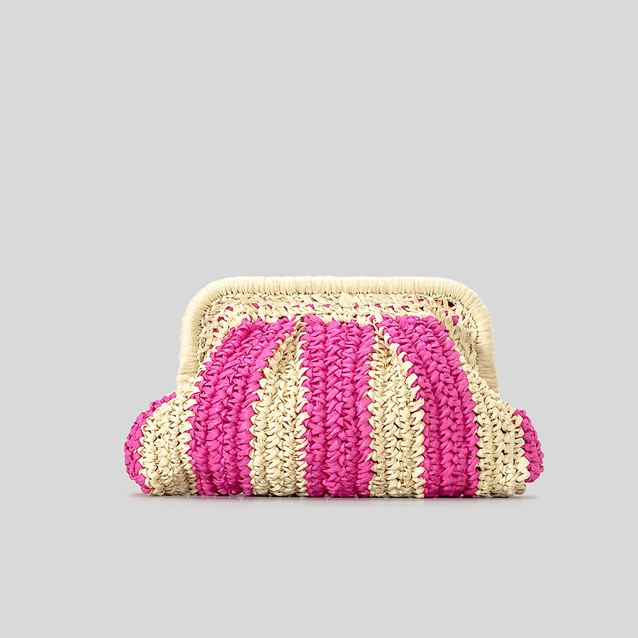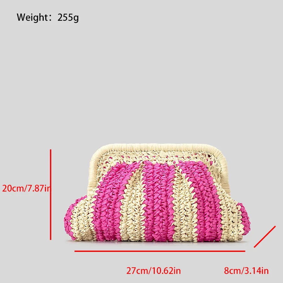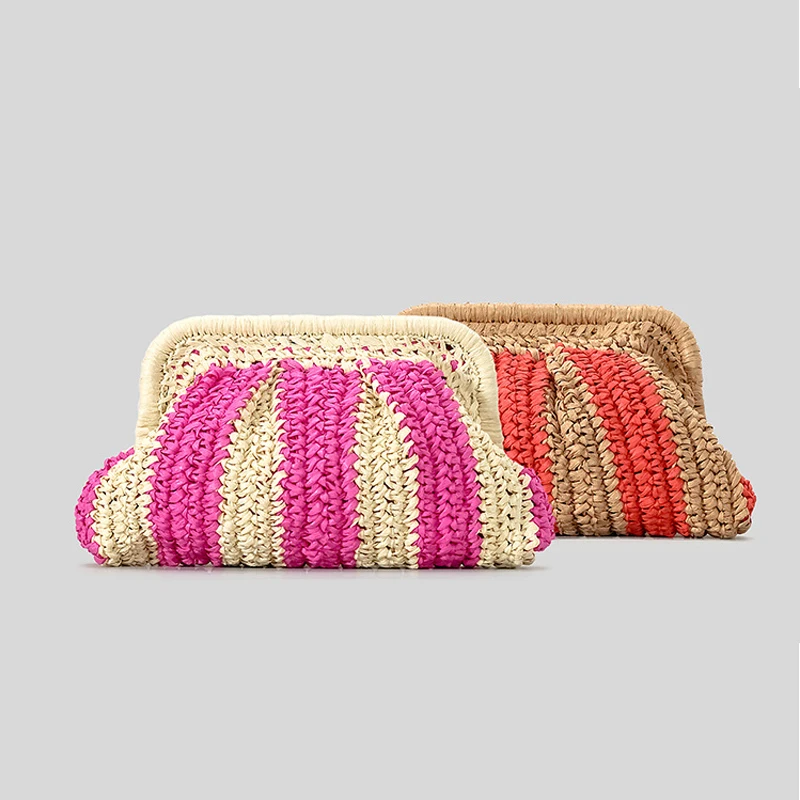 fashion striped straw clutch bag for women paper woven shoulder crossbody bags handmade casual summer beach bag bali purses 2024