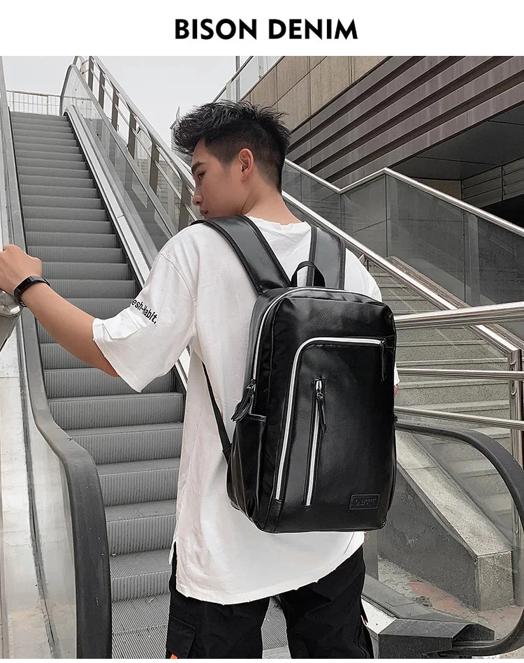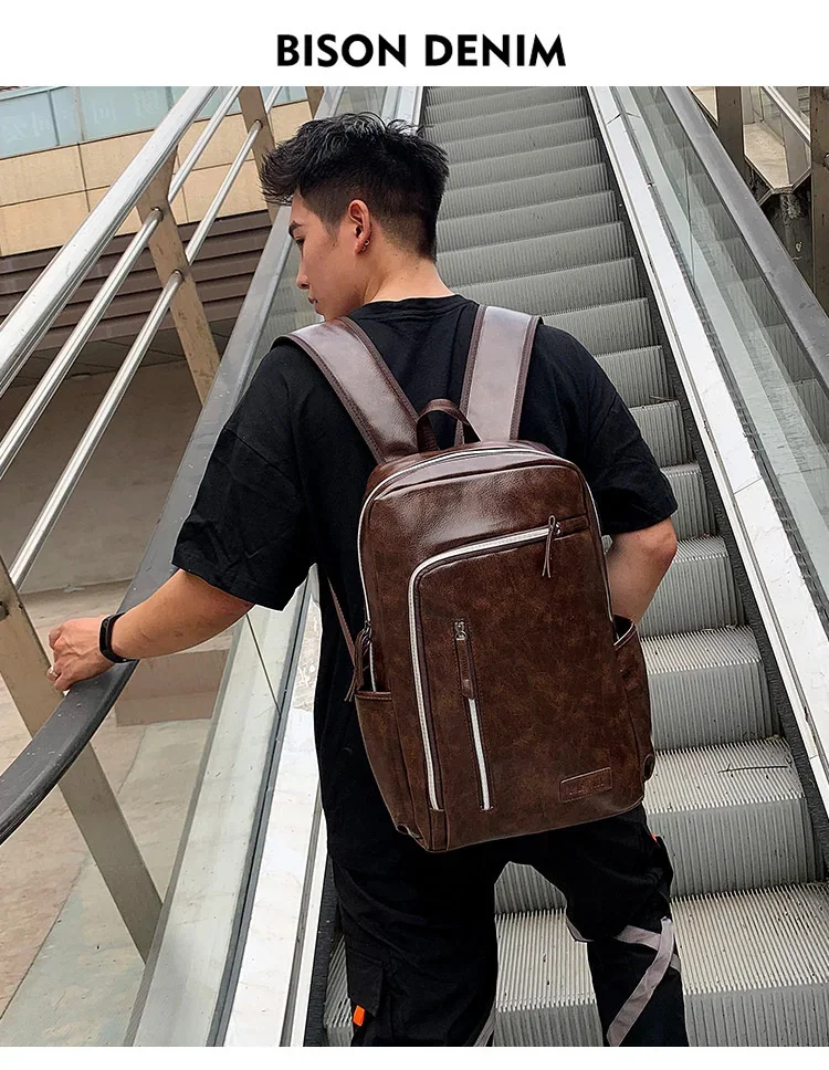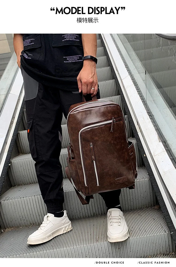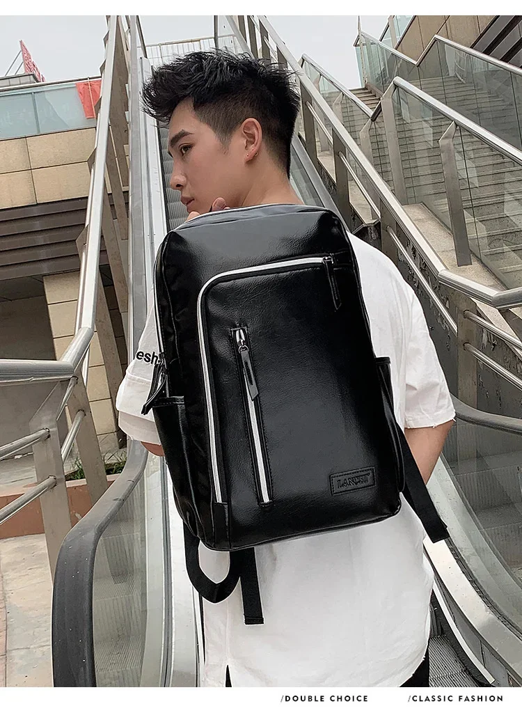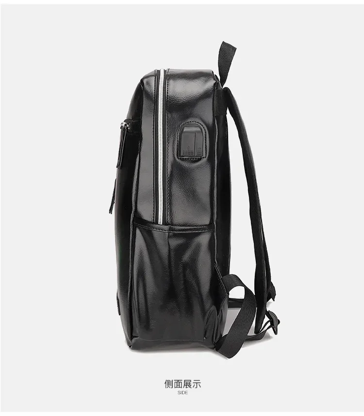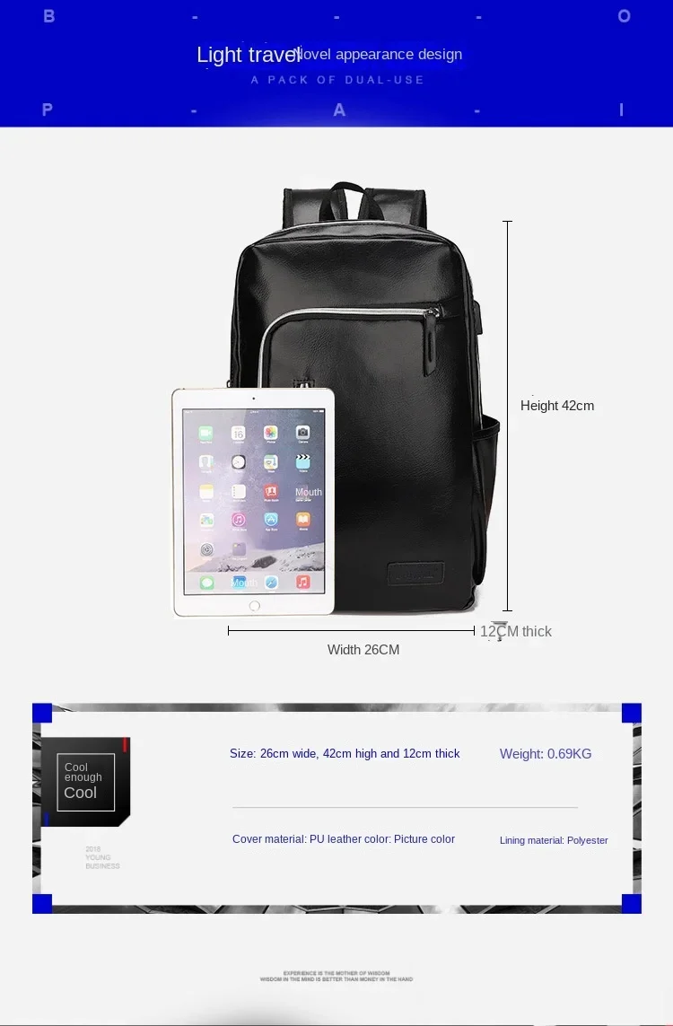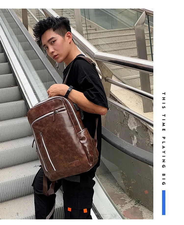 Fashion USB Charging Men's PU Leather Laptop Trendy Man Travel Backpack Large Capacity Student School Bag For Boys