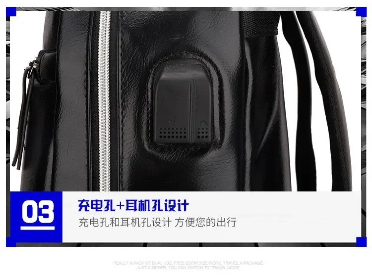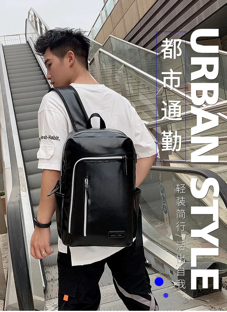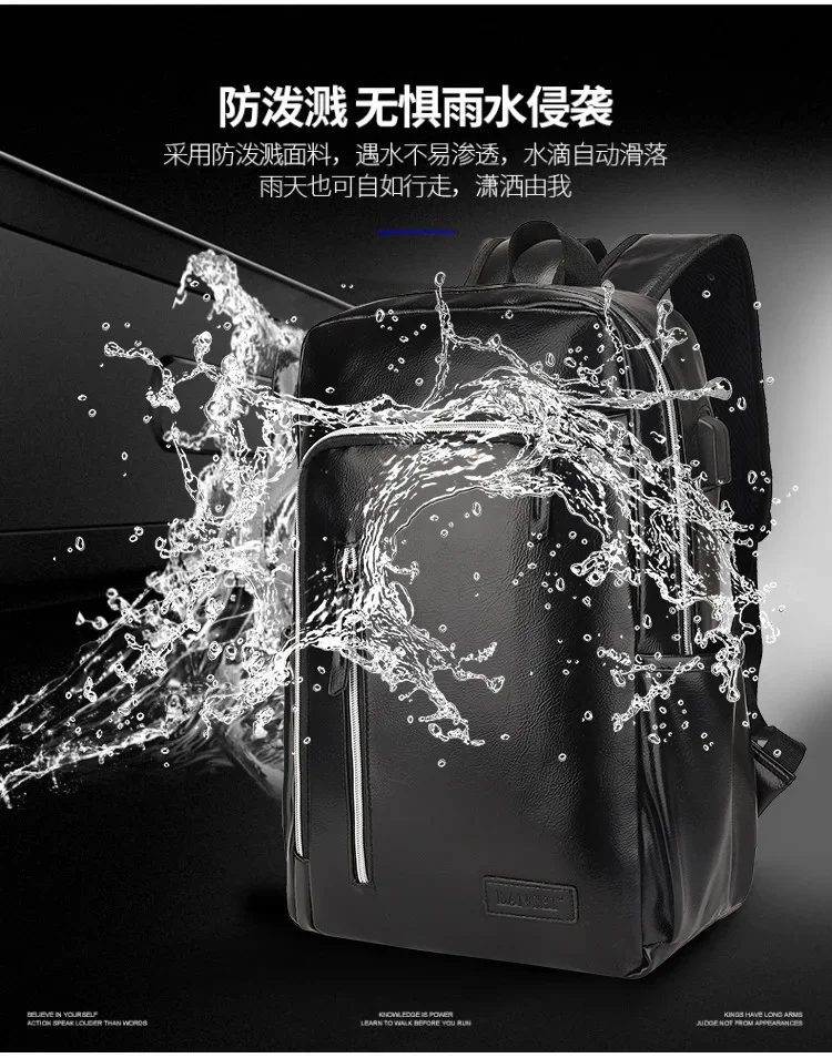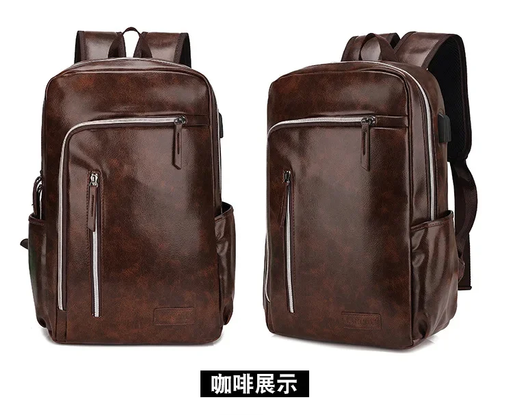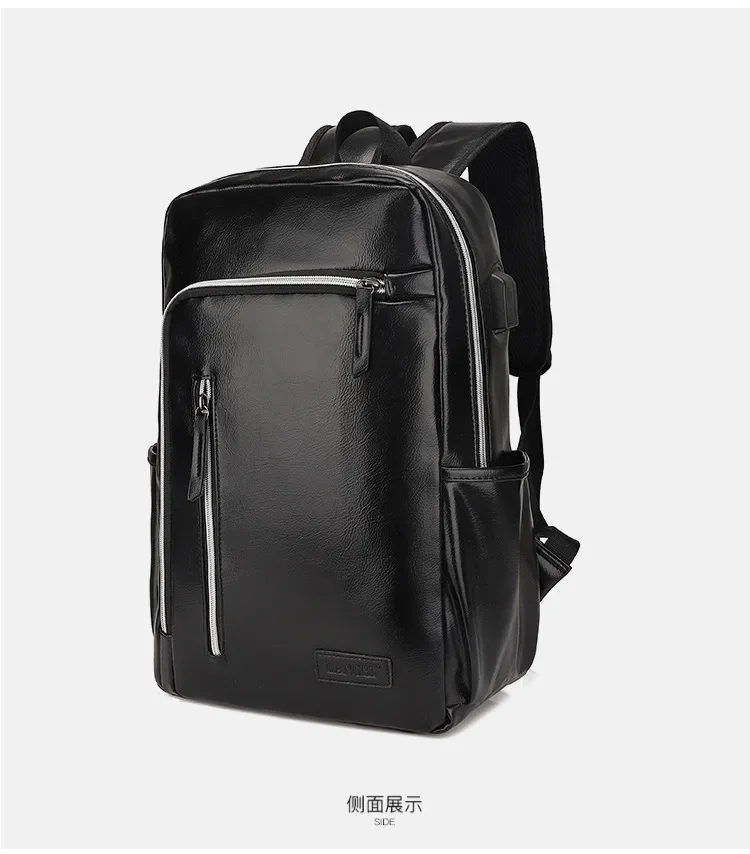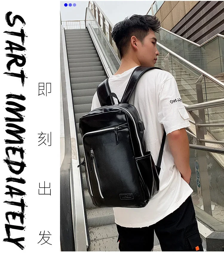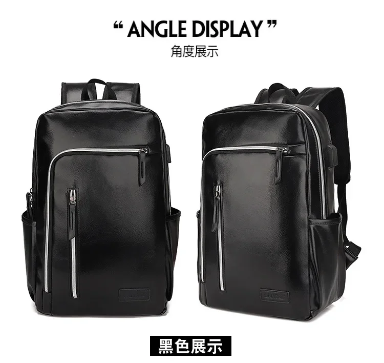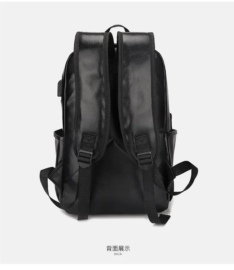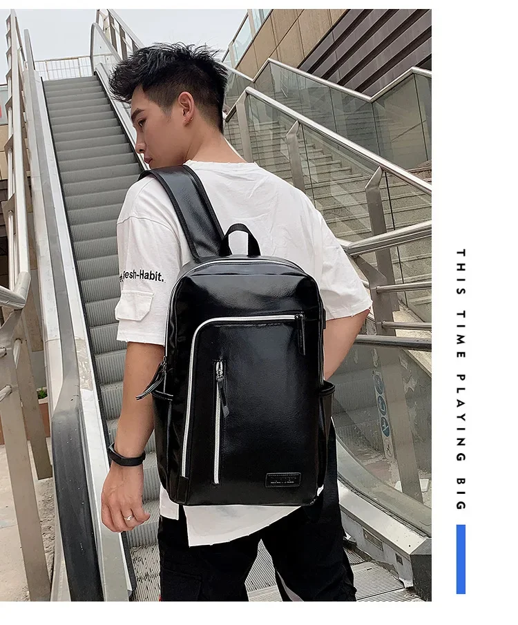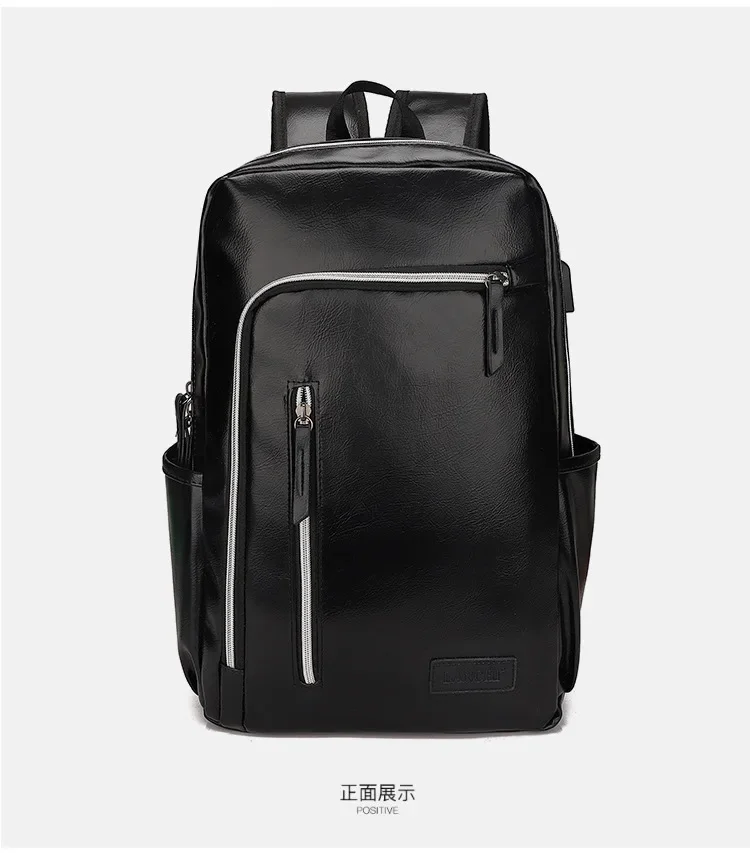 Fashion USB Charging Men's PU Leather Laptop Trendy Man Travel Backpack Large Capacity Student School Bag For Boys
