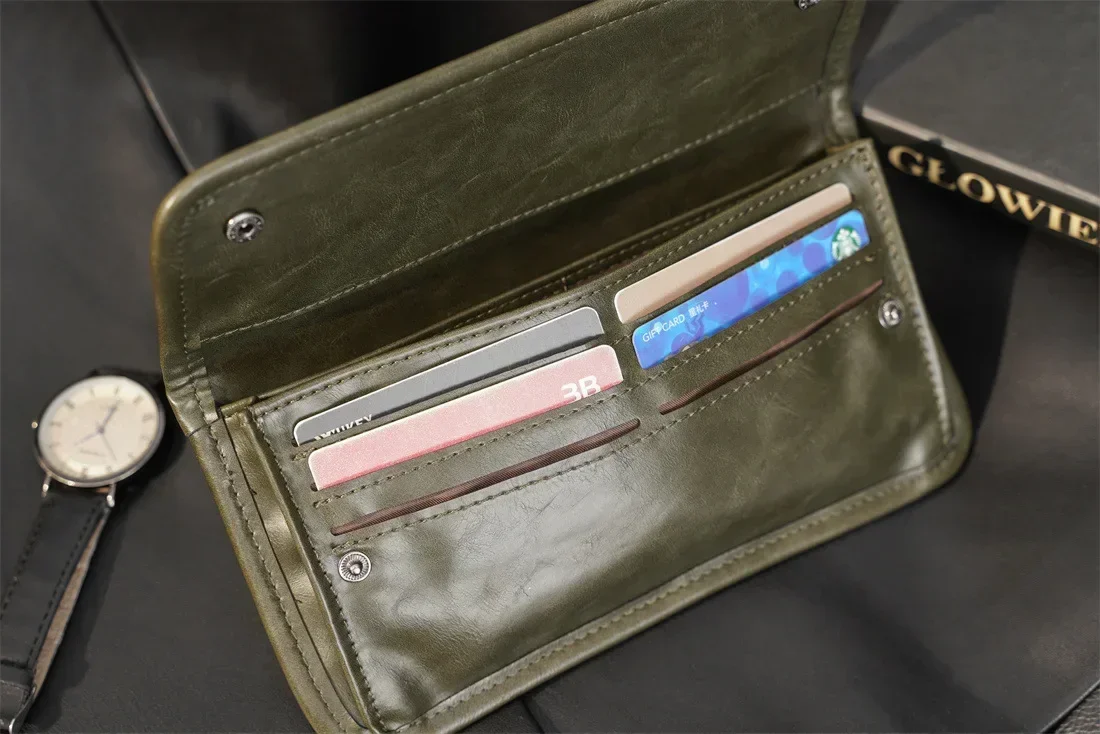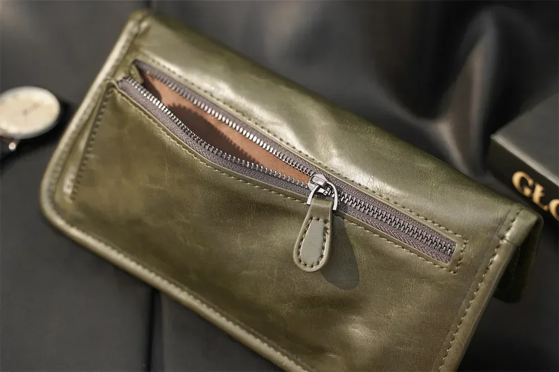 Fashion Vinatge Men's Clutches Medium Long Wallets Men Clutch Handbags Solid Soft Leather Clutch Multi-card Coin Purses Wallets