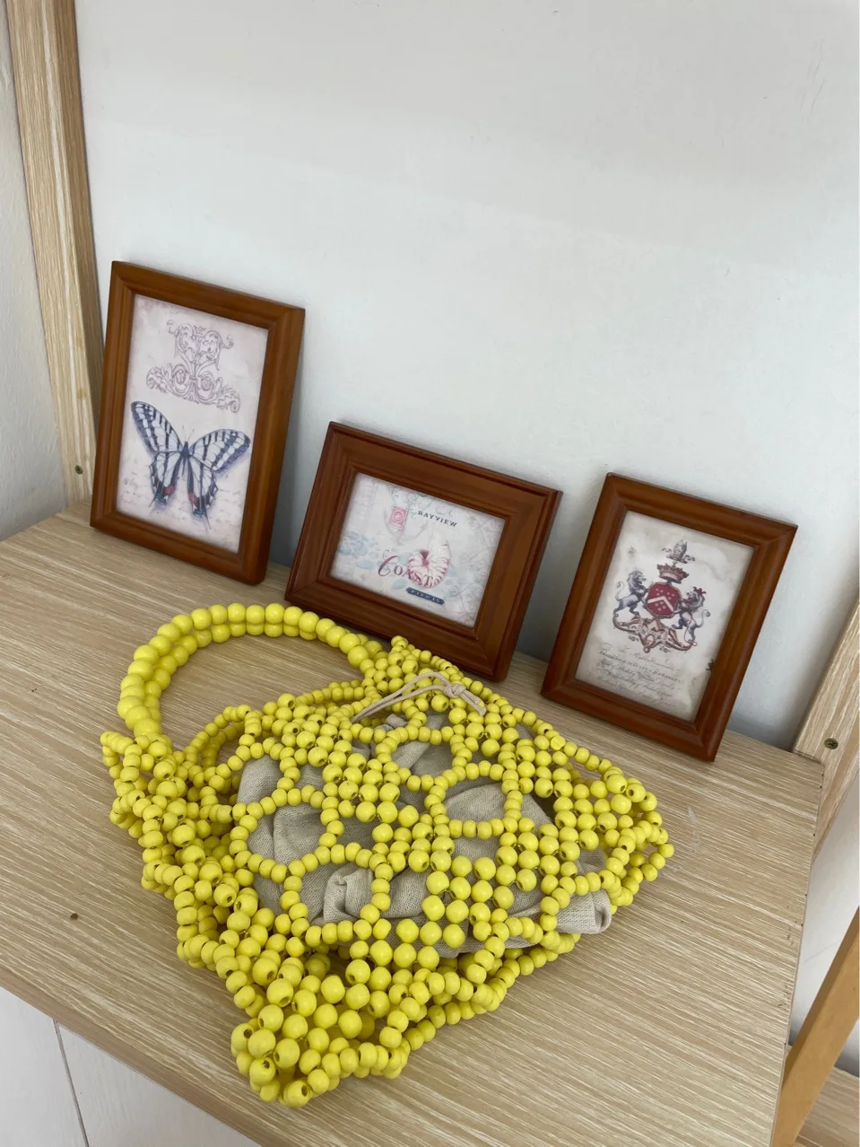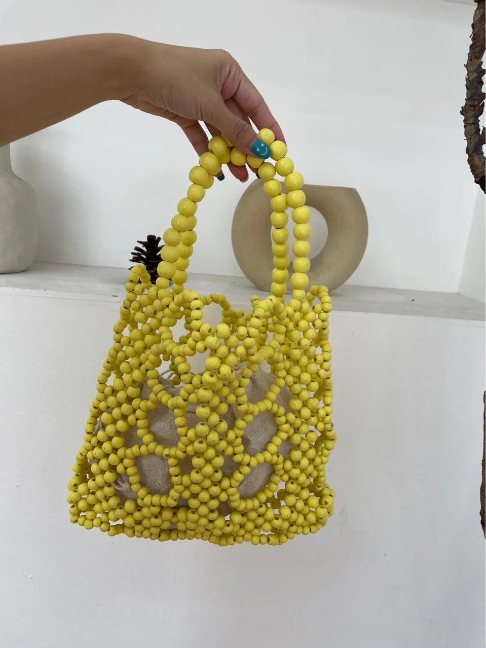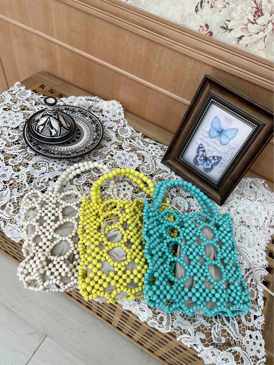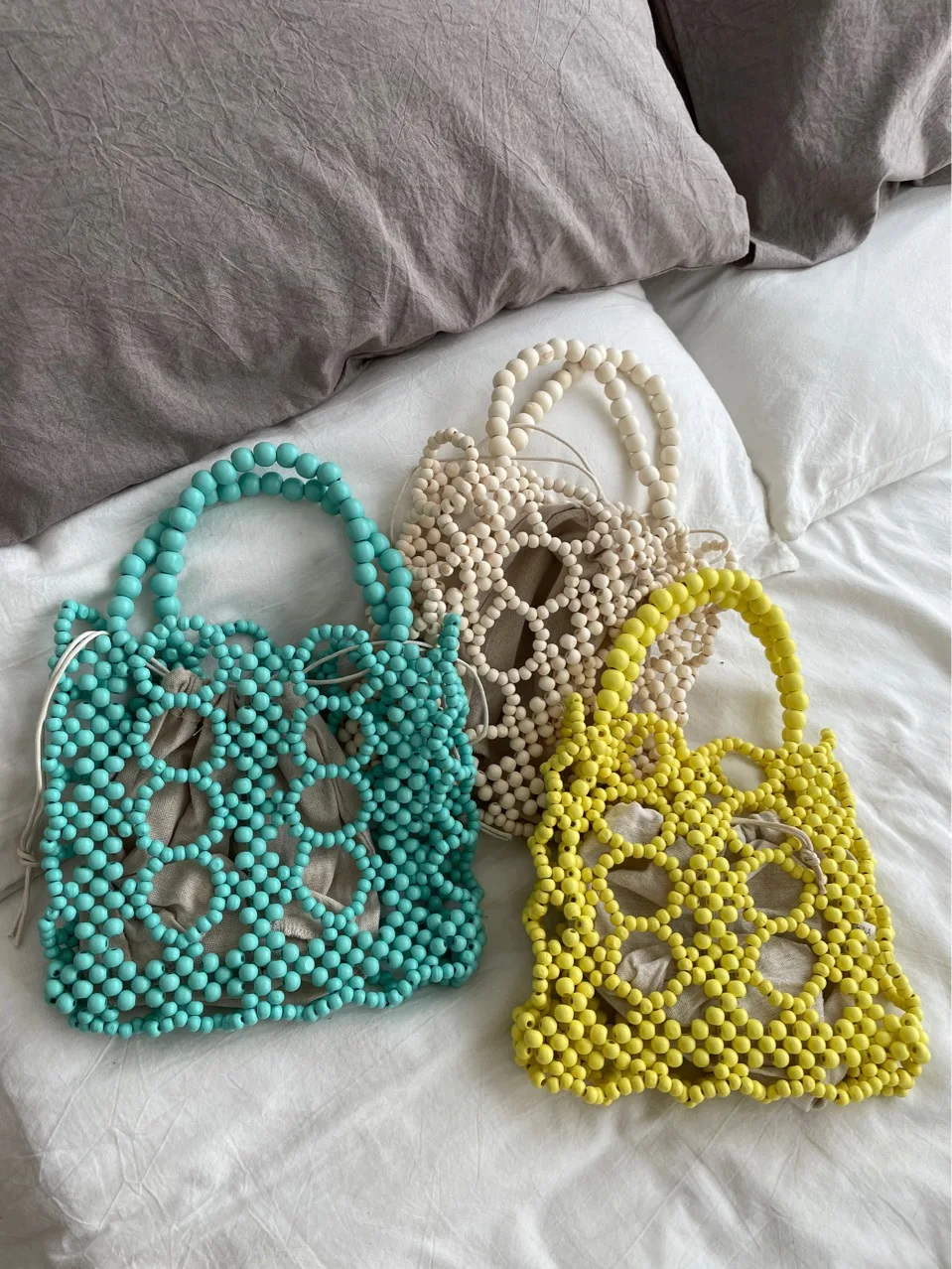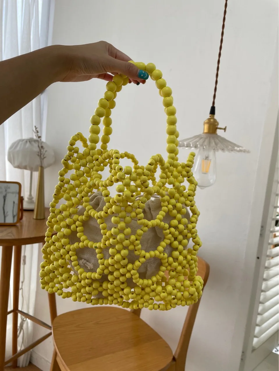 Fashion Wooden Beading Women Handbags Designer Hollow Small Tote Luxury Lady Handbags Summer Beach Bag Bali Shopper Purses 2022