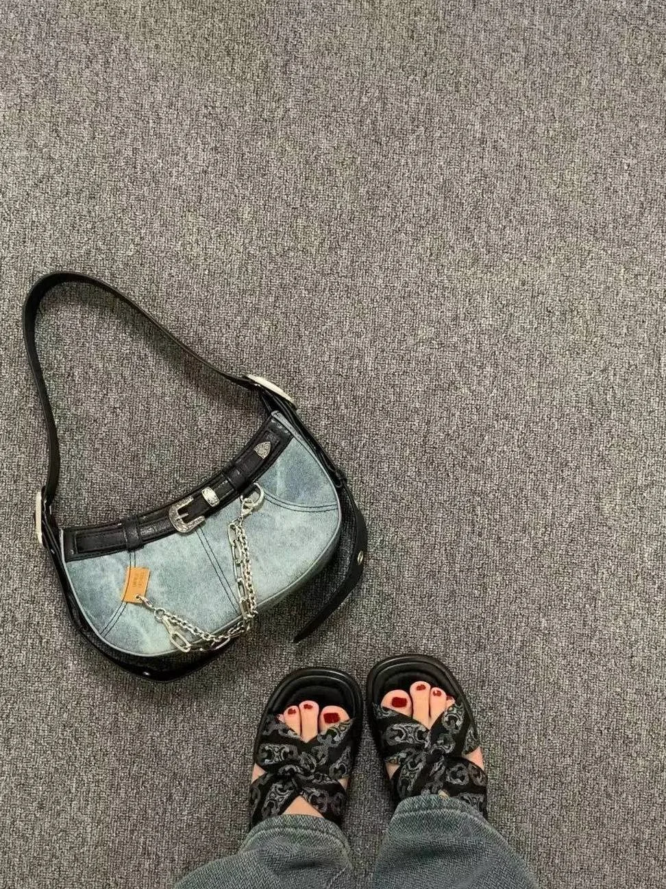 Fashionable Hottie Shoulder Bag Trend Stitching Chain Women's Denim Bags And Purses Girls Luxury Shoulder Crossbody Small Wallet