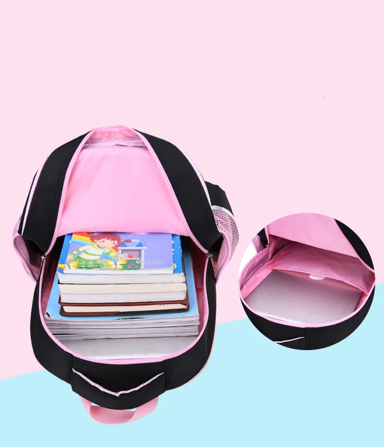 girl school bag cute black pink PU leather school waterproof backpack
