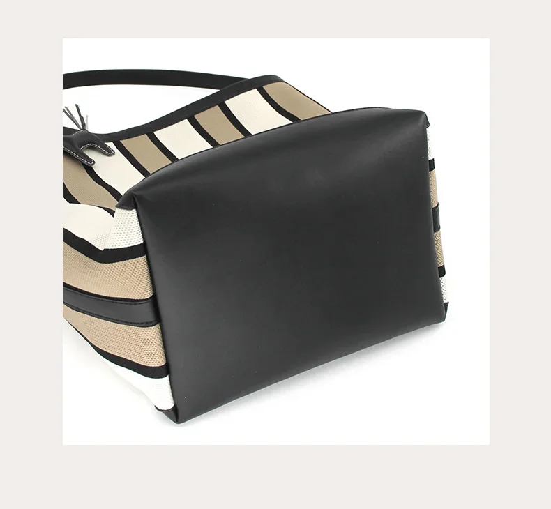 The combination of knitted fabric material and microfiber leather thickens and widens the bottom, making the bag less prone to deformation and has a good shape