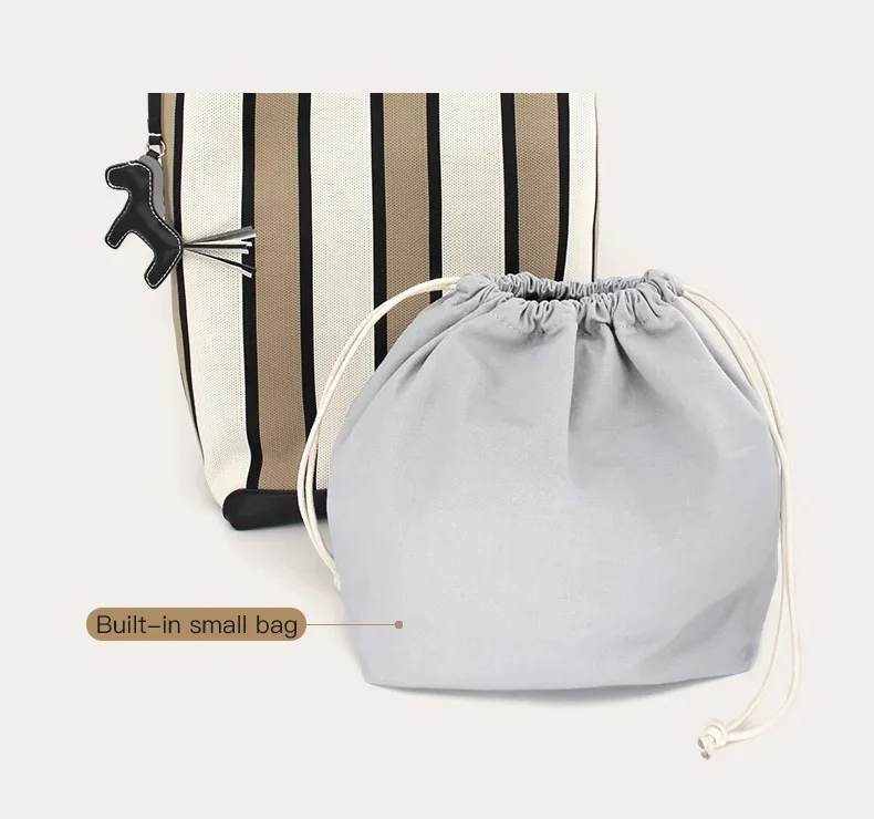 There is a bag inside the bag, which is sealed with a drawstring. There is a zippered side pocket inside the bag, which can be used for storing valuable items, and can also be used independently