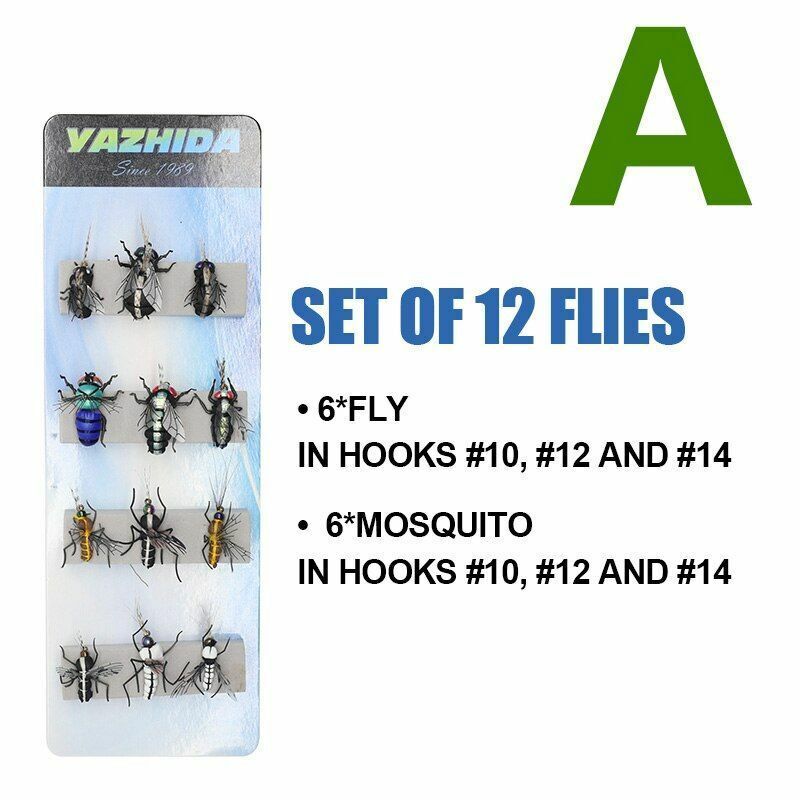 Fly Fishing Flies Sets 12pcs Mosquito Housefly Realistic Insect Lure Trout Kits