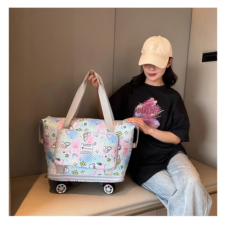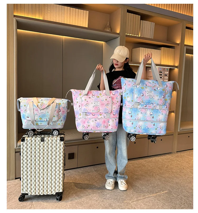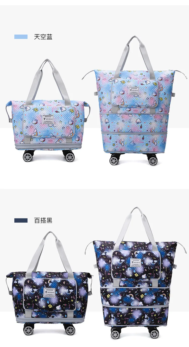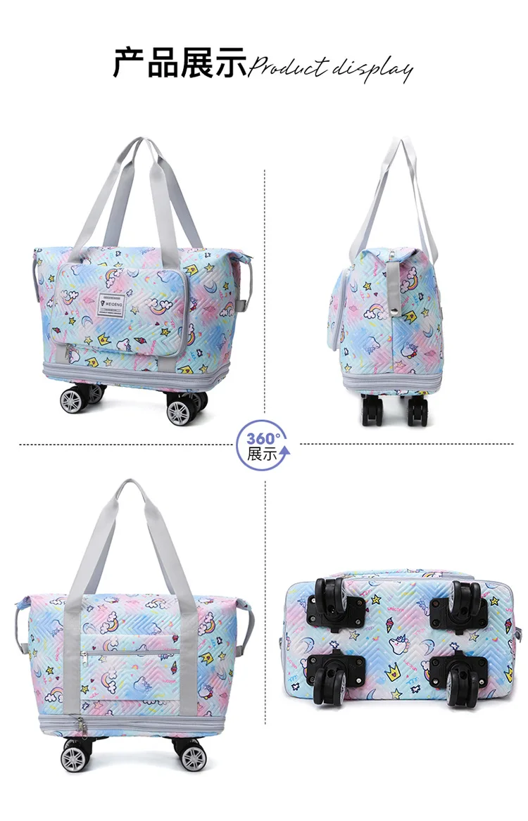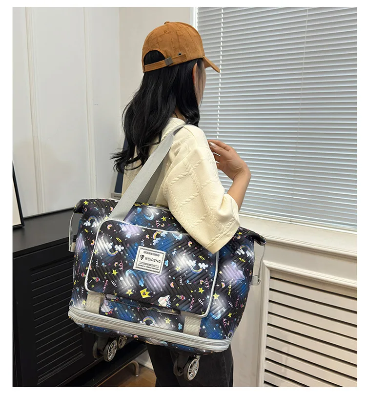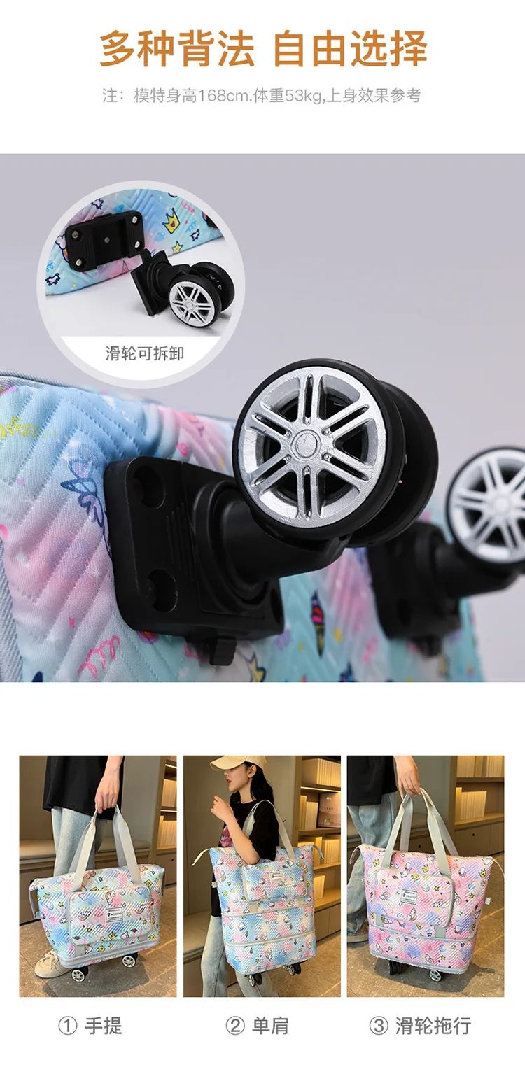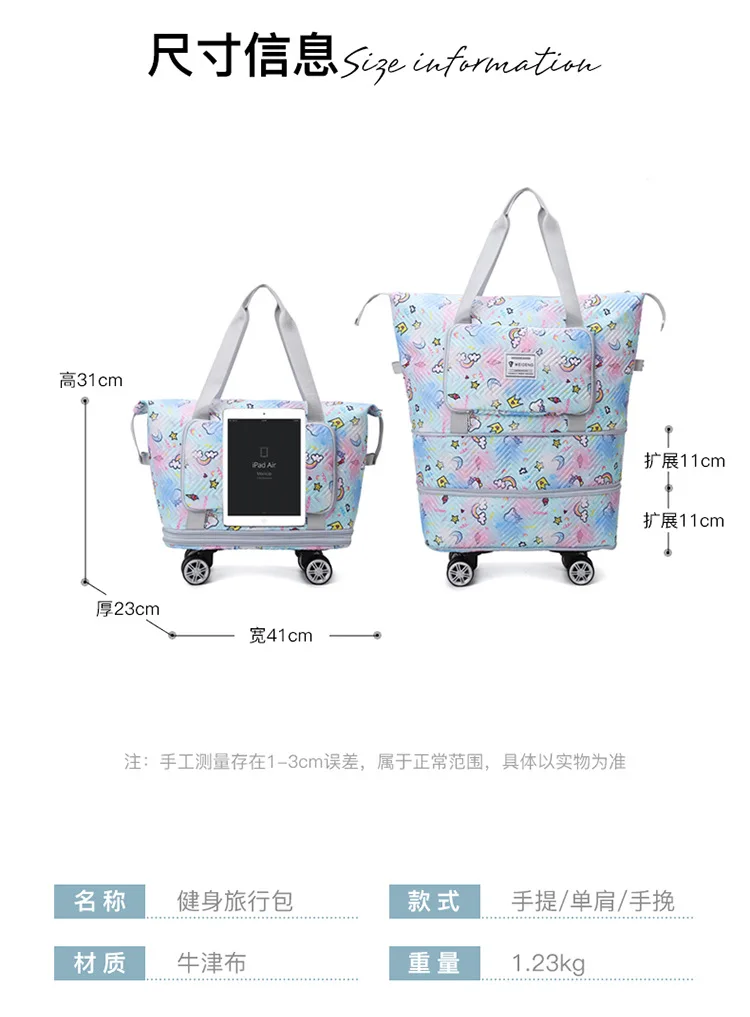 Expandable wheeled travel bag: The external material of this travel bag is made of Oxford cloth material,which is not afraid of splashing,scratch resistant,wear-resistant,breathable,lightweight,with detachable wheels that can be carried or carried by hand,making it easy to use