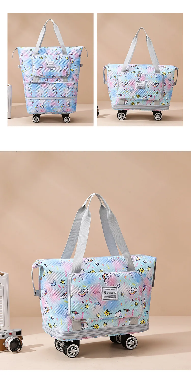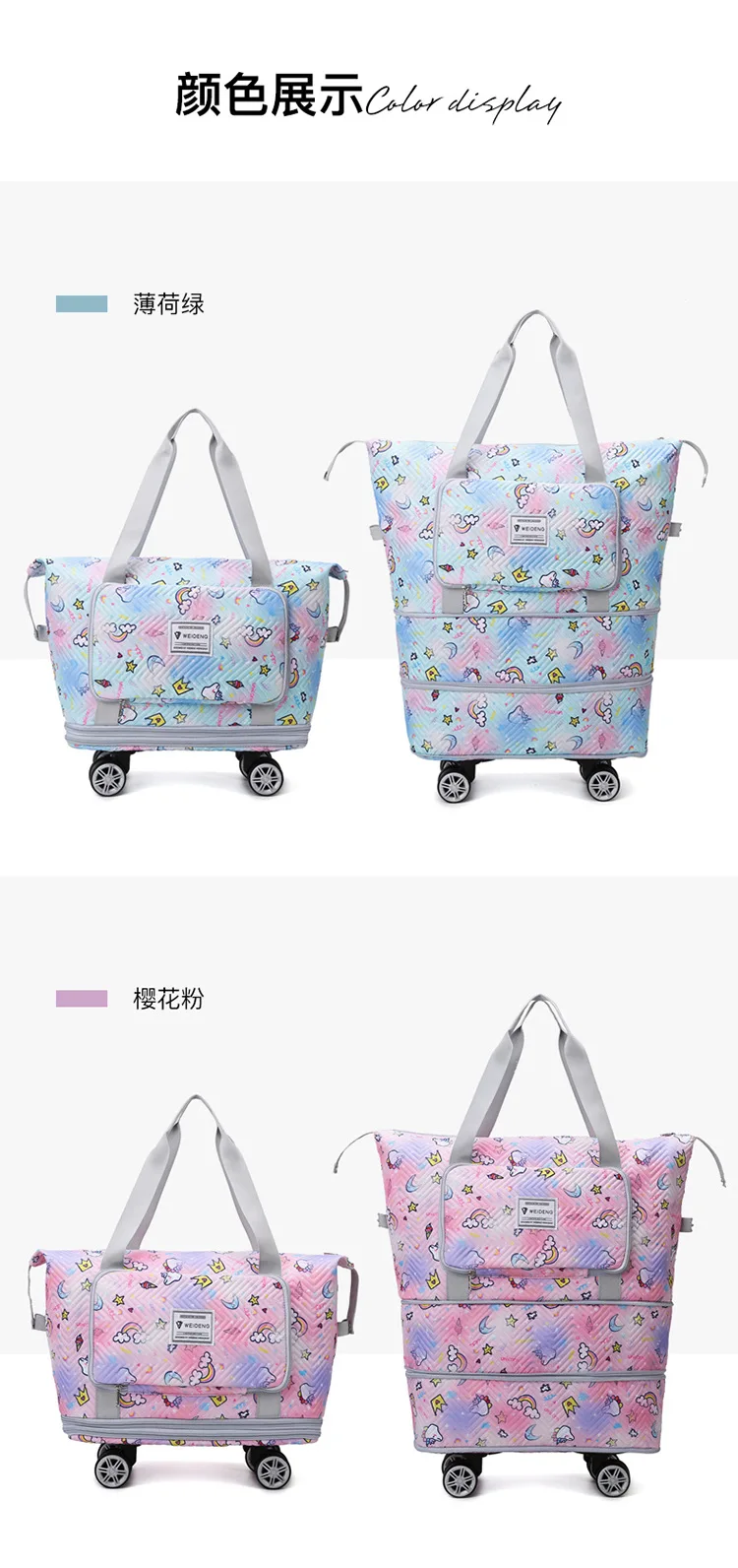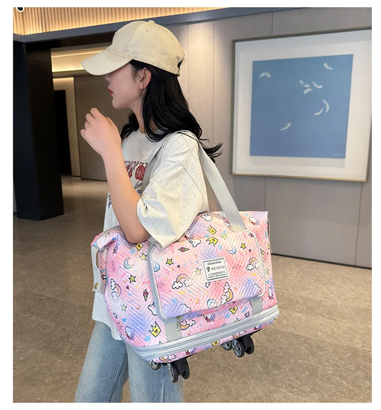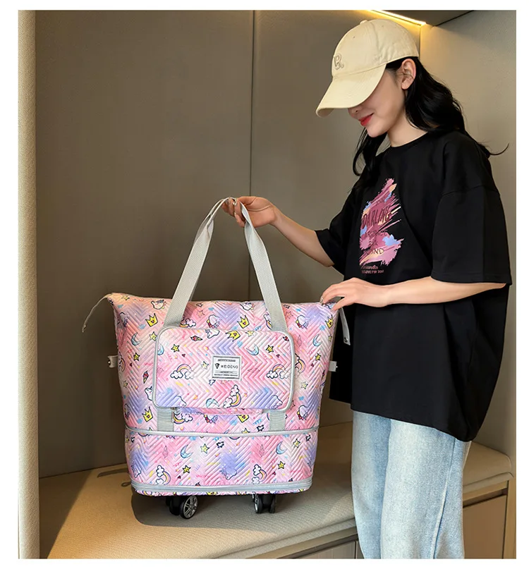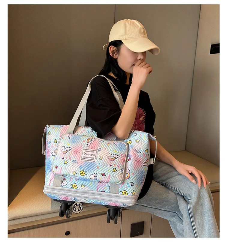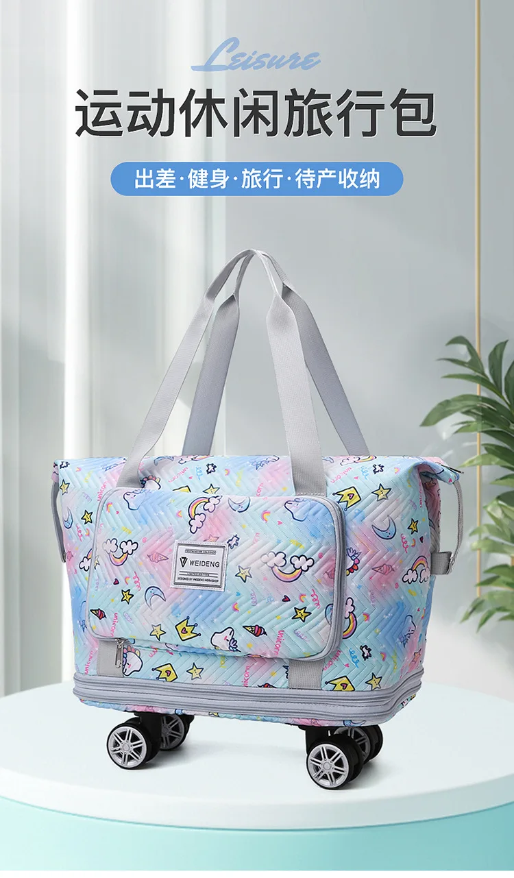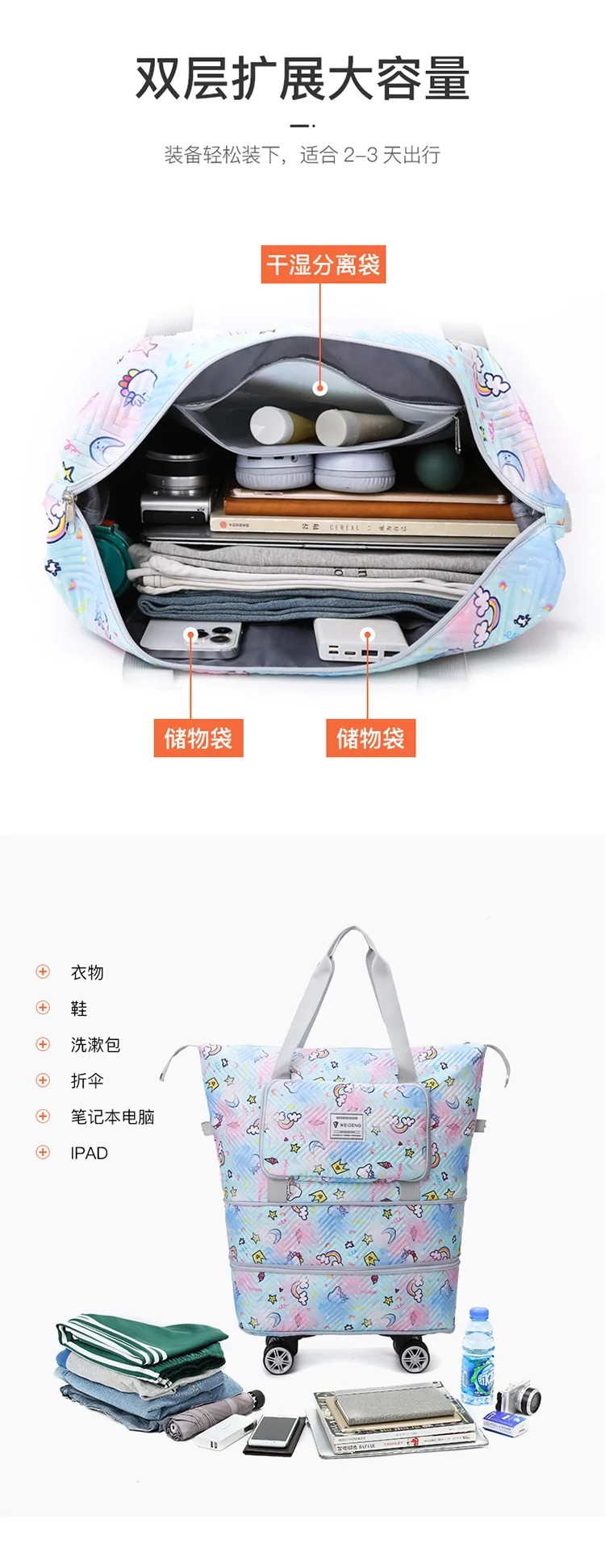 Expandable wheeled travel bag: The external material of this travel bag is made of Oxford cloth material,which is not afraid of splashing,scratch resistant,wear-resistant,breathable,lightweight,with detachable wheels that can be carried or carried by hand,making it easy to use