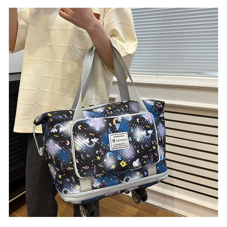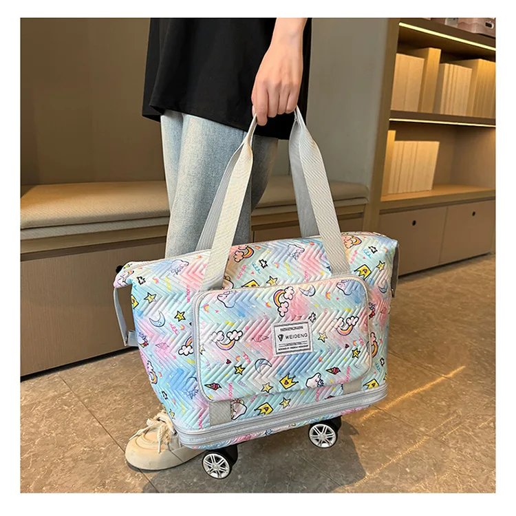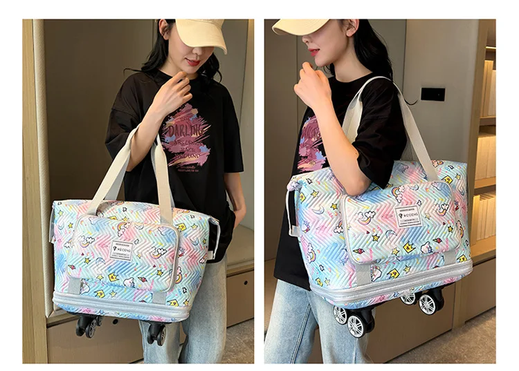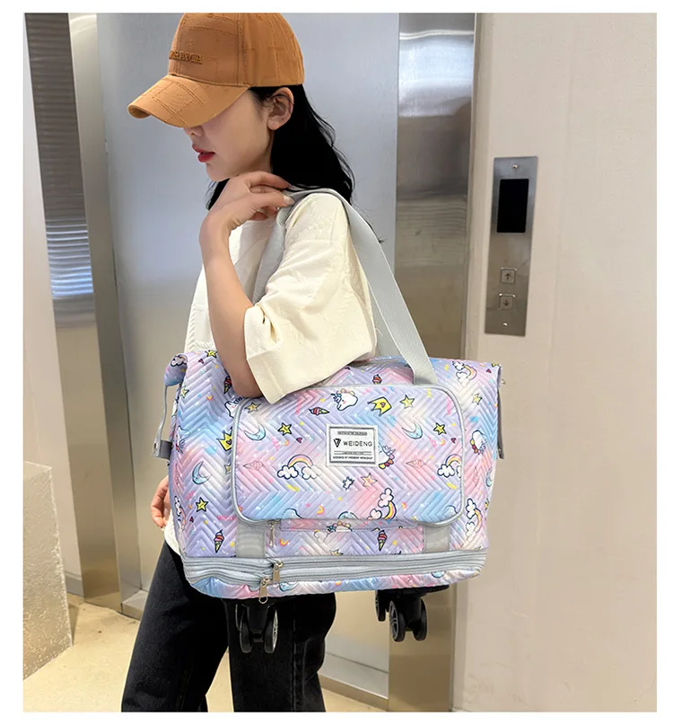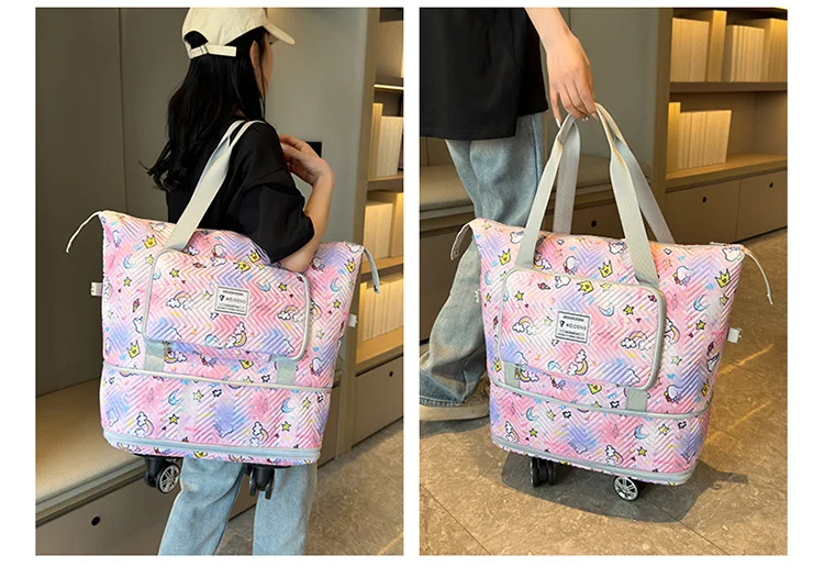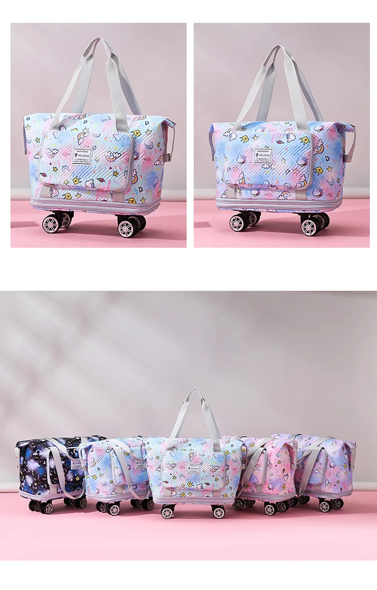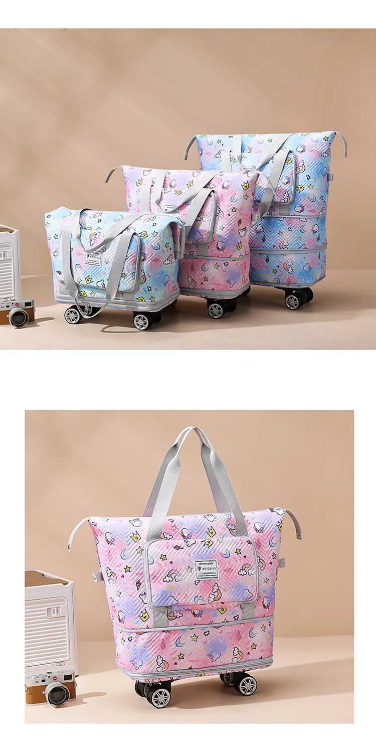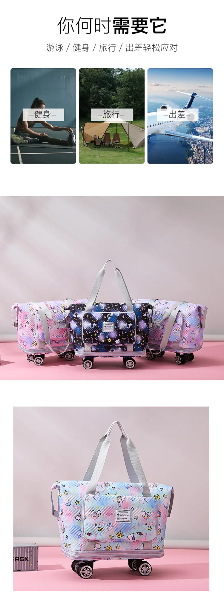 Expandable wheeled travel bag: The external material of this travel bag is made of Oxford cloth material,which is not afraid of splashing,scratch resistant,wear-resistant,breathable,lightweight,with detachable wheels that can be carried or carried by hand,making it easy to use