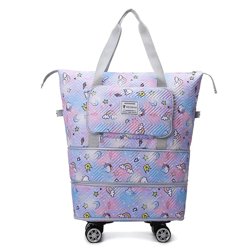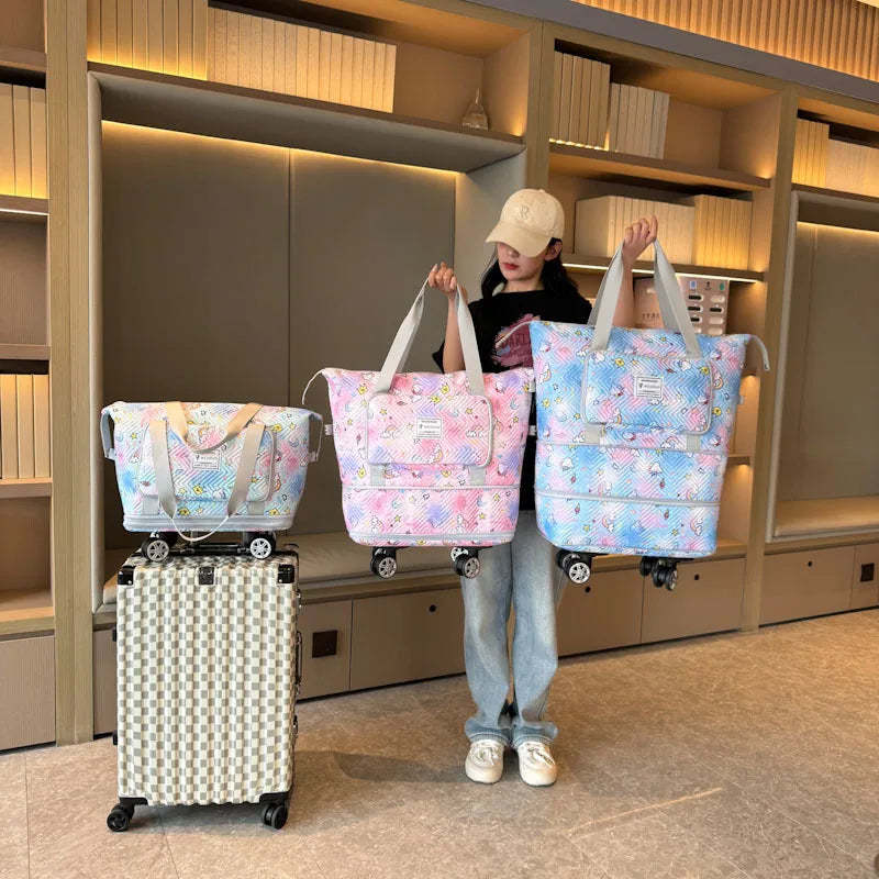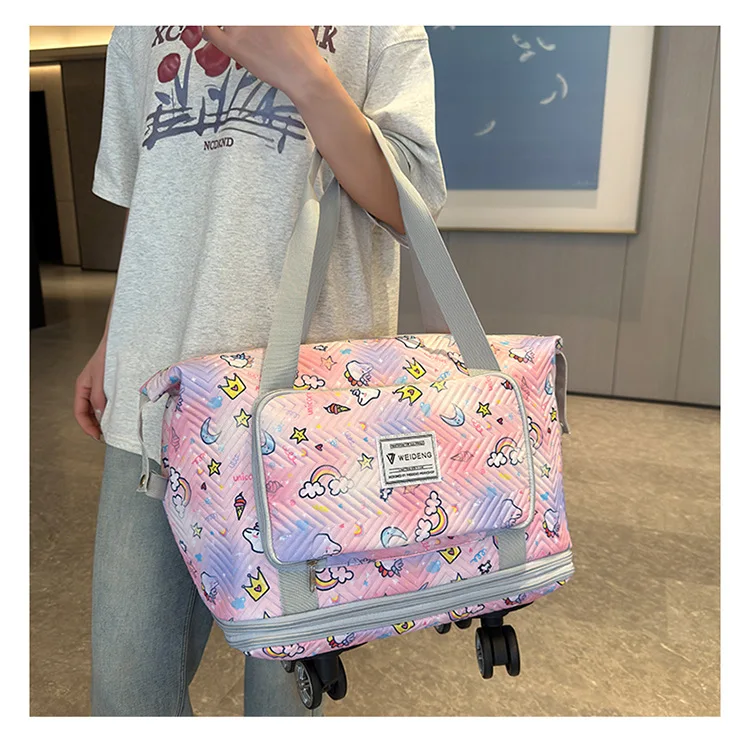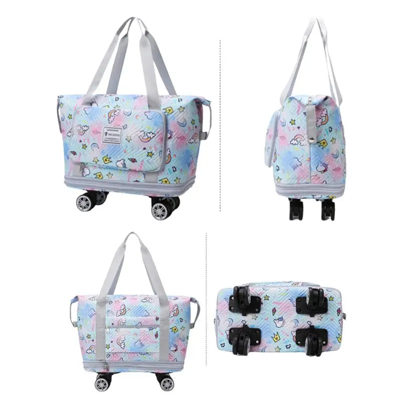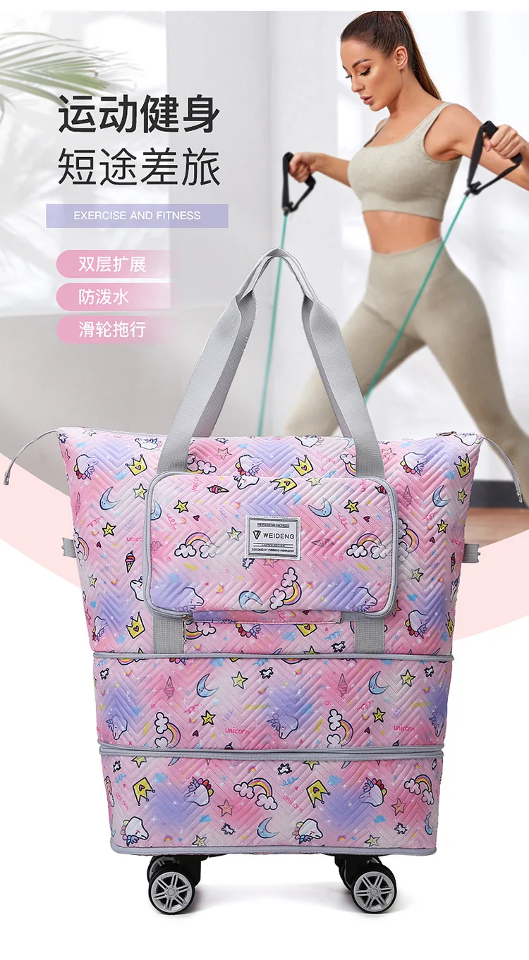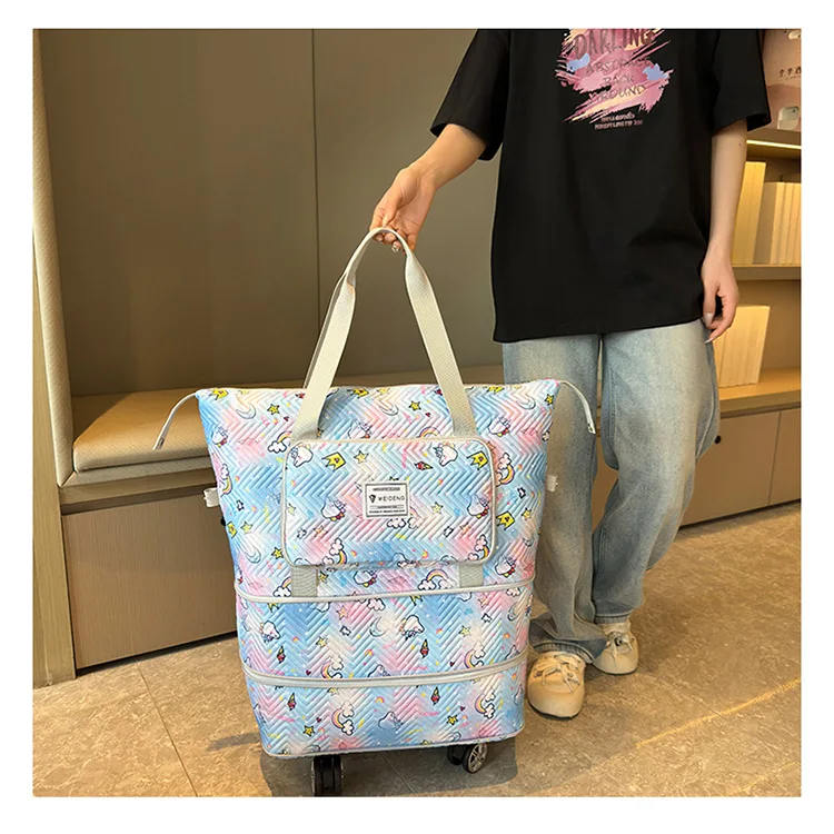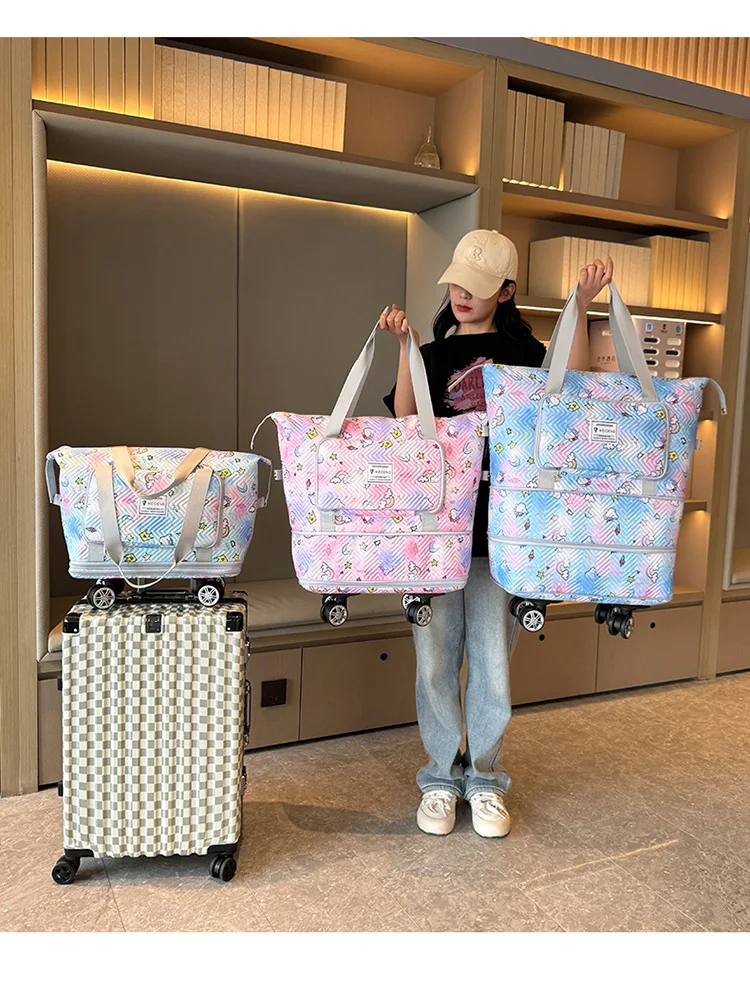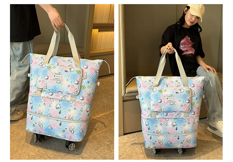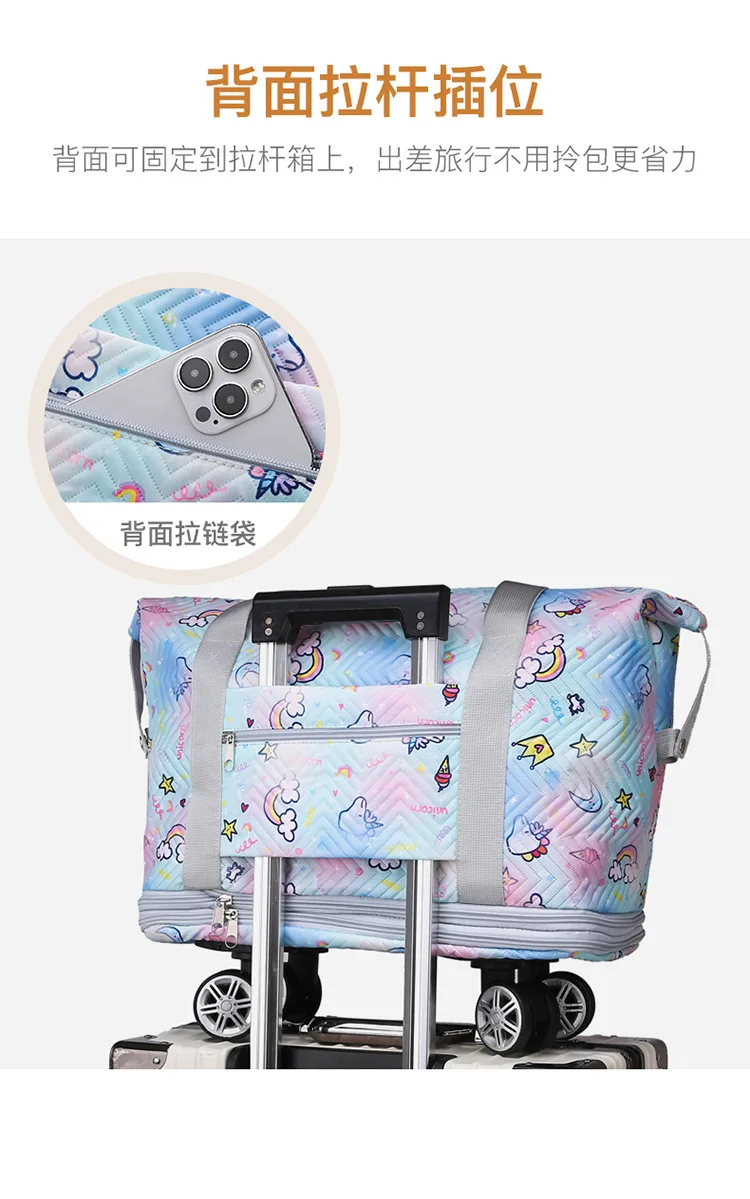 Expandable wheeled travel bag: The external material of this travel bag is made of Oxford cloth material,which is not afraid of splashing,scratch resistant,wear-resistant,breathable,lightweight,with detachable wheels that can be carried or carried by hand,making it easy to use