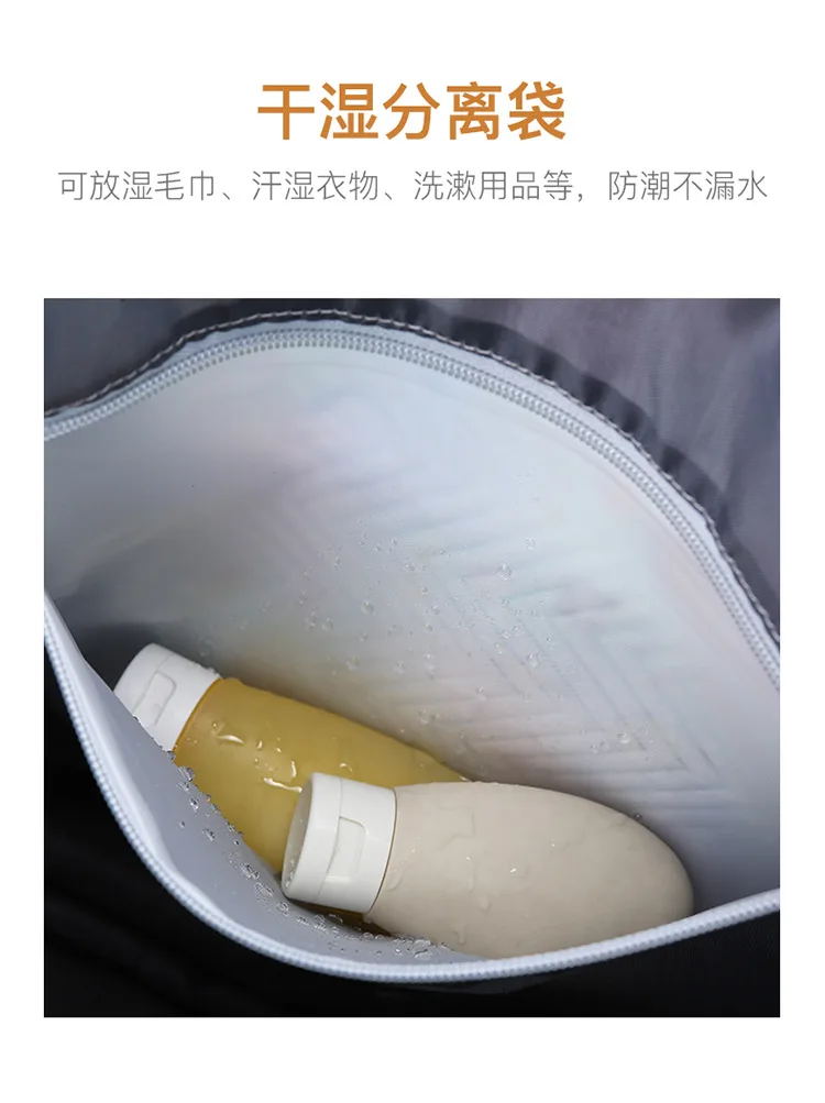 Wet and dry separation design: The internal wet and dry separation bag design can hold toiletries and wet towels,and can be separated and stored,very clean