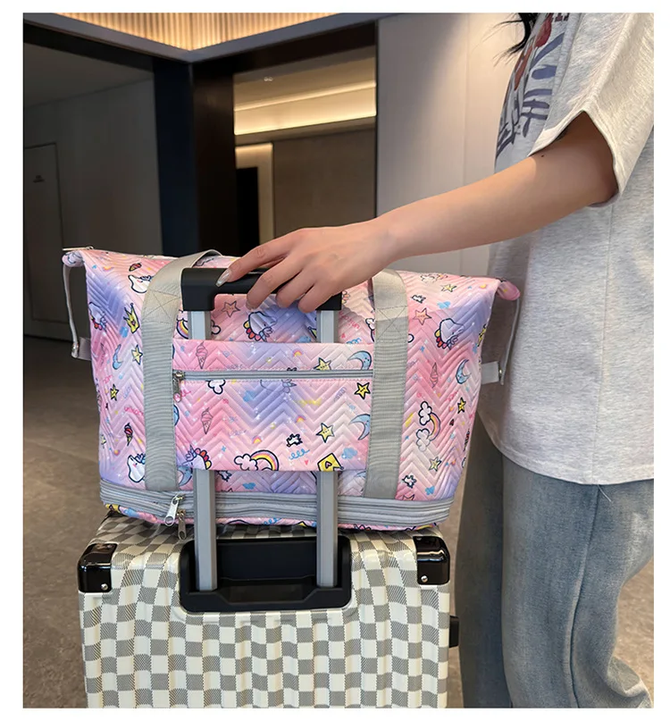 Exquisite craftsmanship: The woven belt of the travel bag is reinforced with stitching,with strong load-bearing capacity. The side buckle design is convenient for fixing the bag shape,neatly pulling the fabric,tightly biting,and smoothly closing without jamming