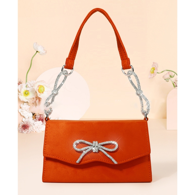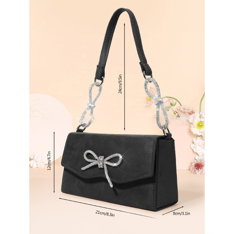 Stand outs with our woman bag! Featuring a dazzlings bowknot & sparkling rhinestones, this bag exudes luxurious and charm.