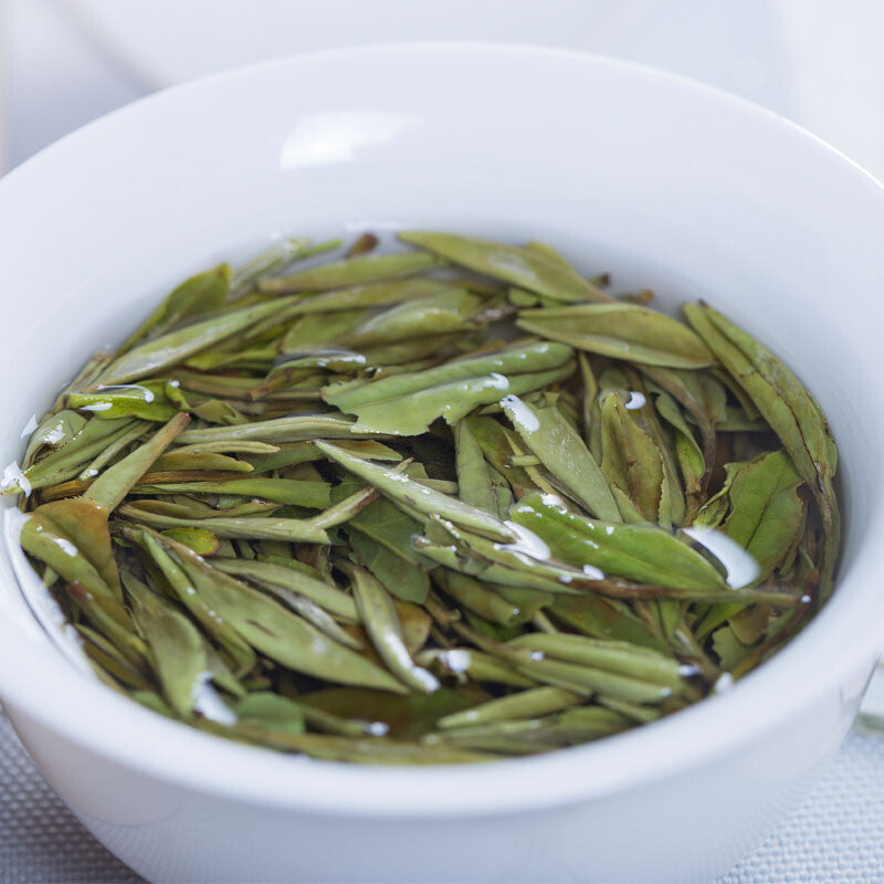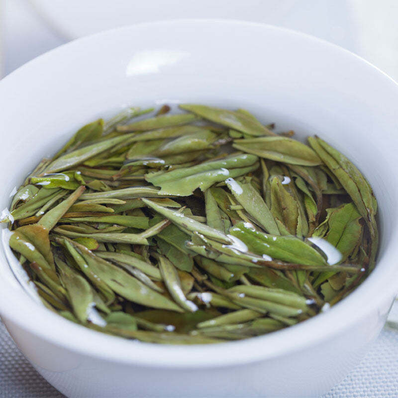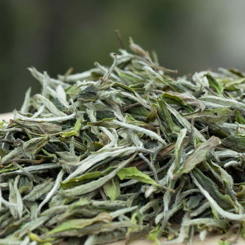White Peony, incorporates one bud and two tiny leaves, plucked in early spring, covered with tiny silver/white fuzz on one side and touting a deep sage green color on the other side. In rare cases, the leaves may be mixed with the Shui Xian tea tree.