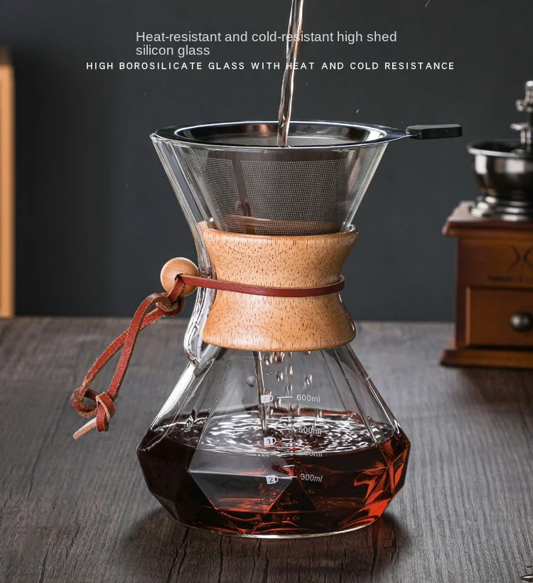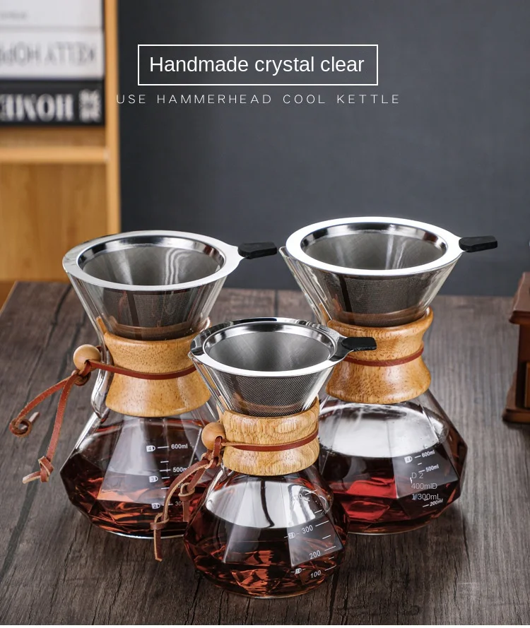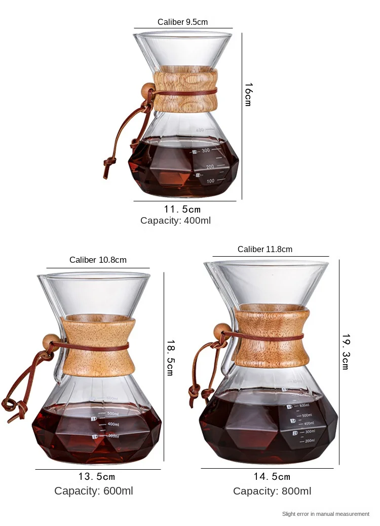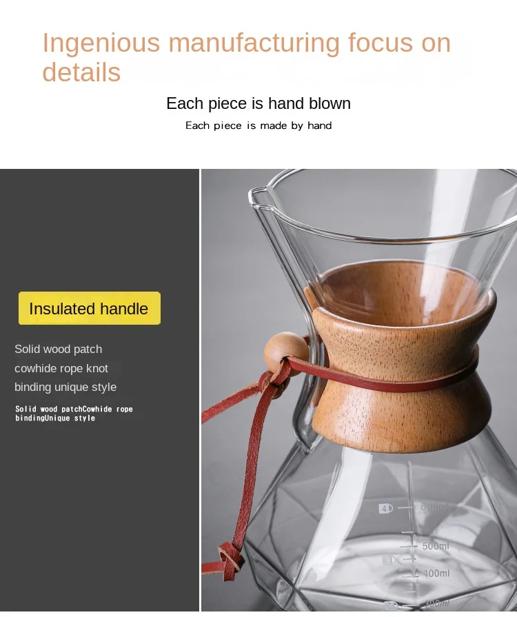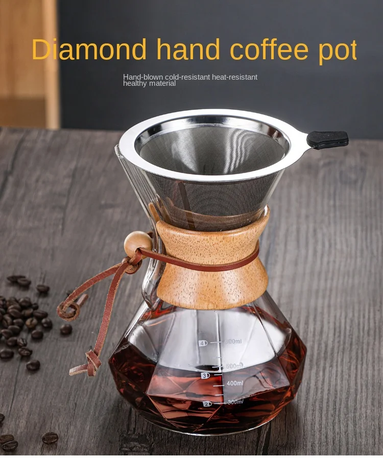 Galss Coffee Pots Coffee Maker Diamond-shaped Hand Brewed Coffee Pot Sharing Pot Glass Drip Pot Coffee Filter Cup Espresso Pot