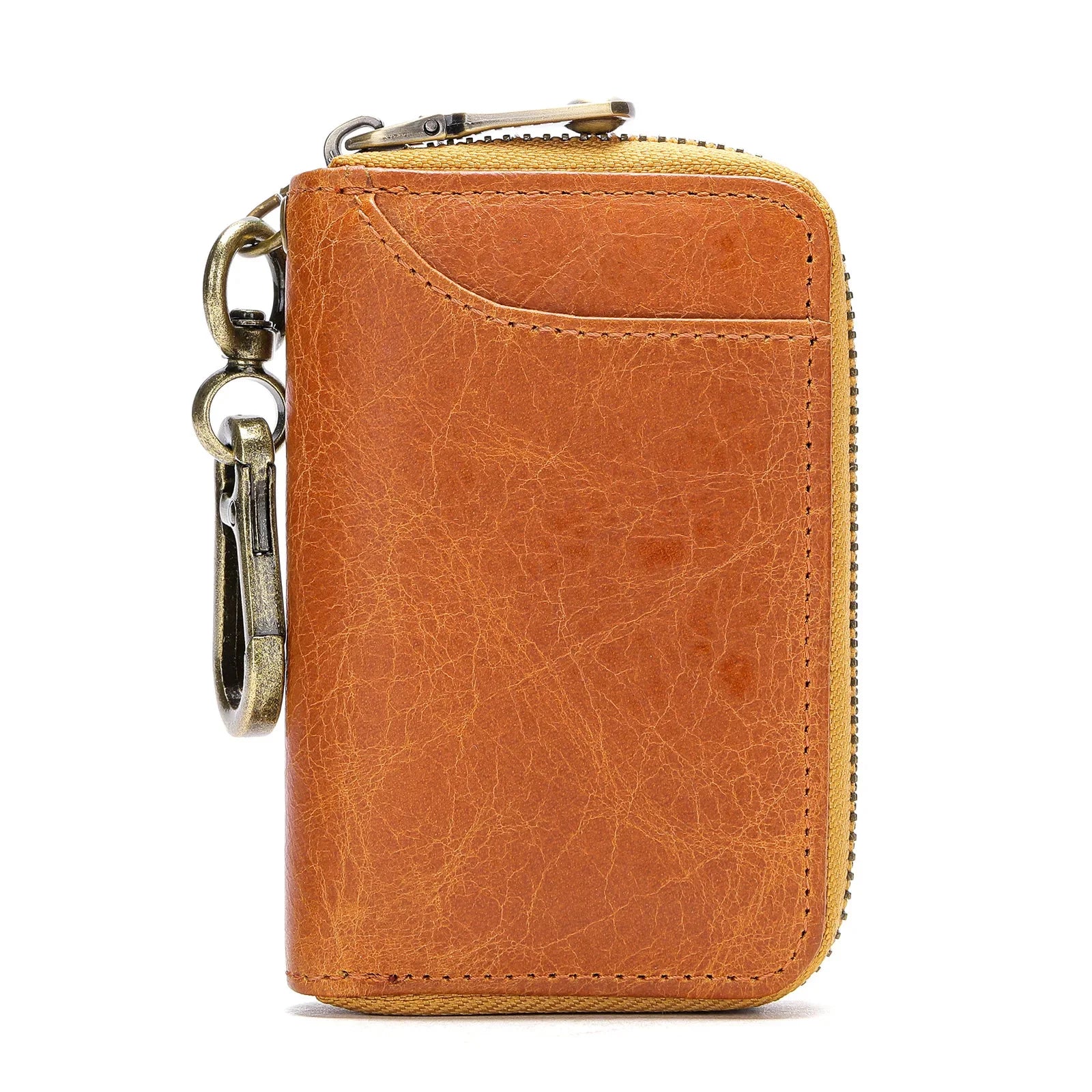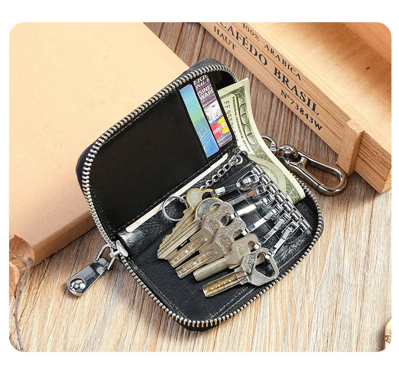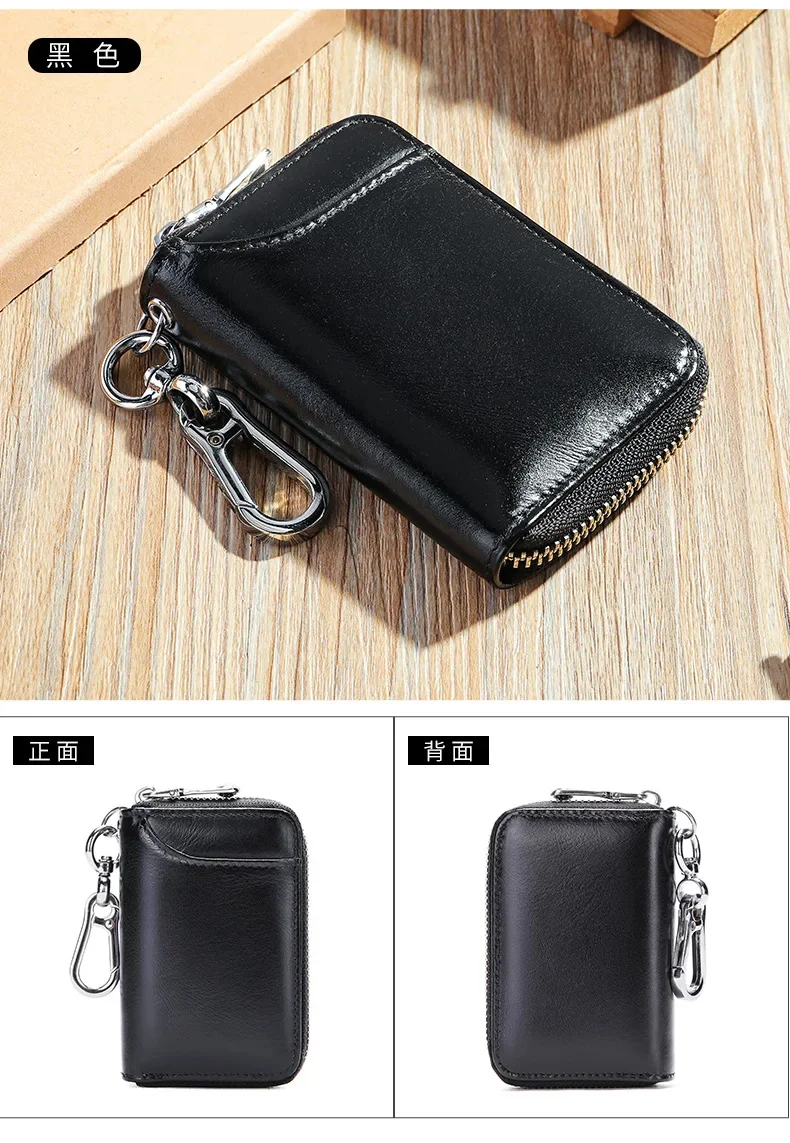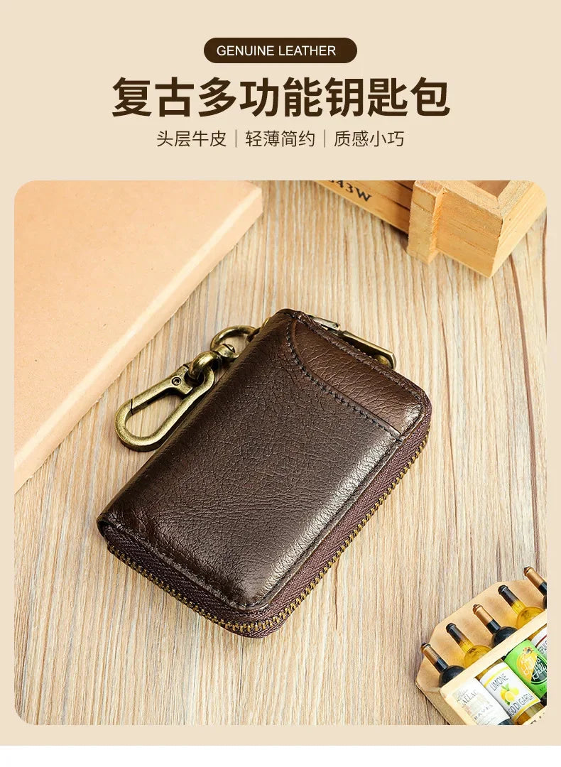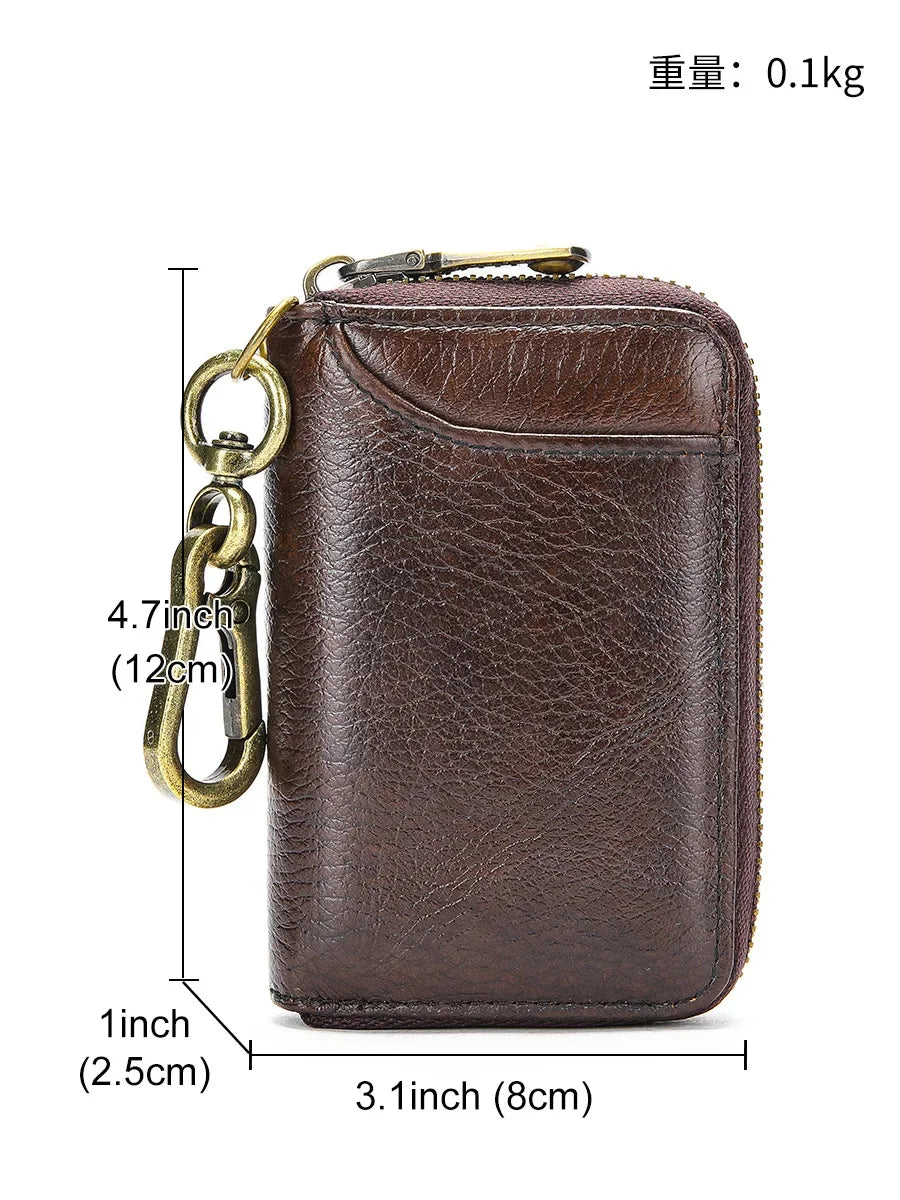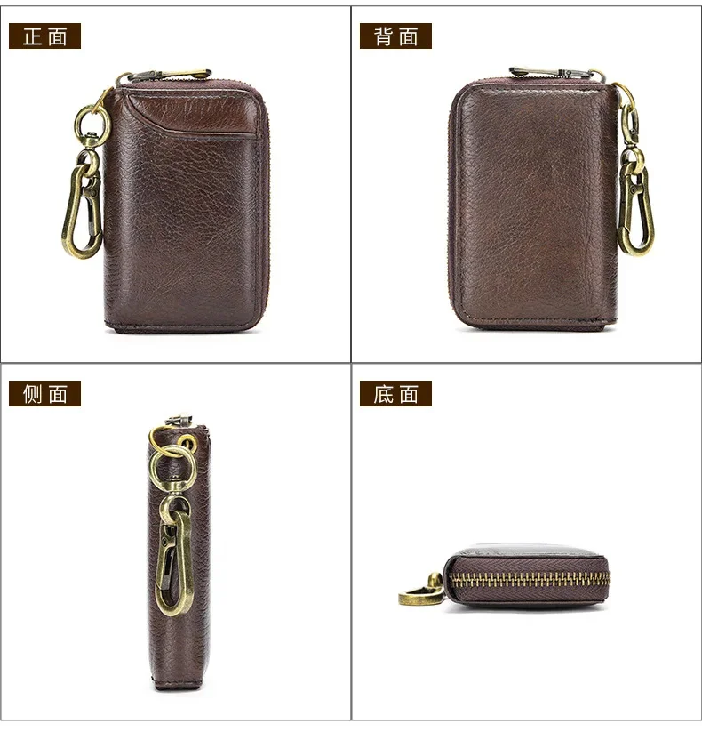 Genuine Leather chain Men Holder Organizer Pouch Coin Purse Cow Split Car Wallet Housekeeper Key Case Mini Card Bag