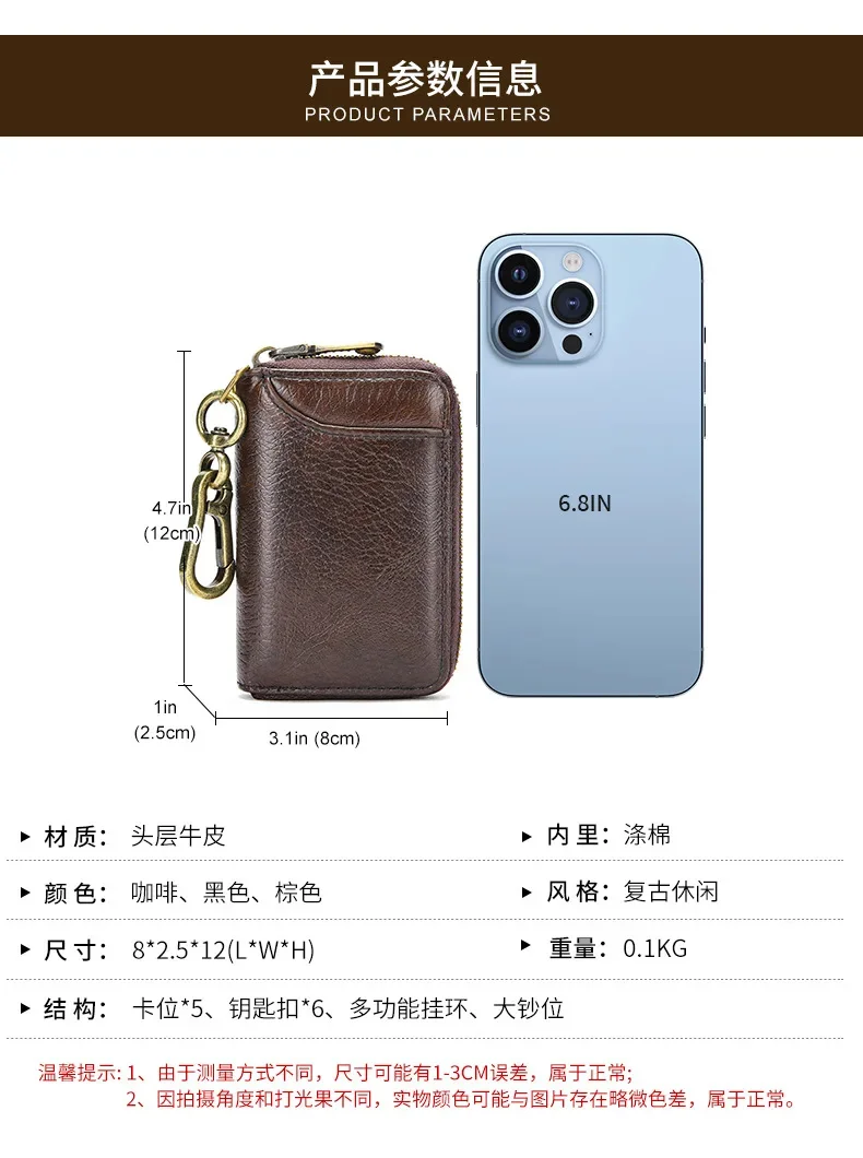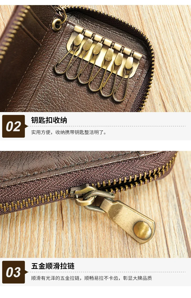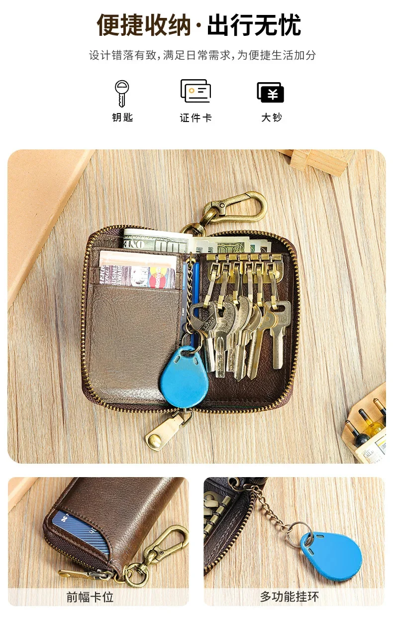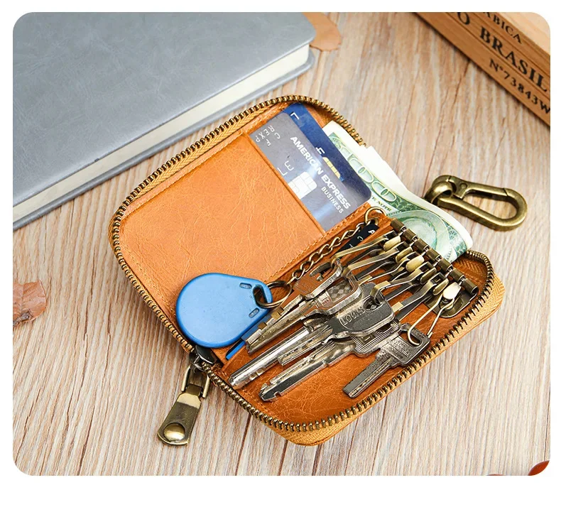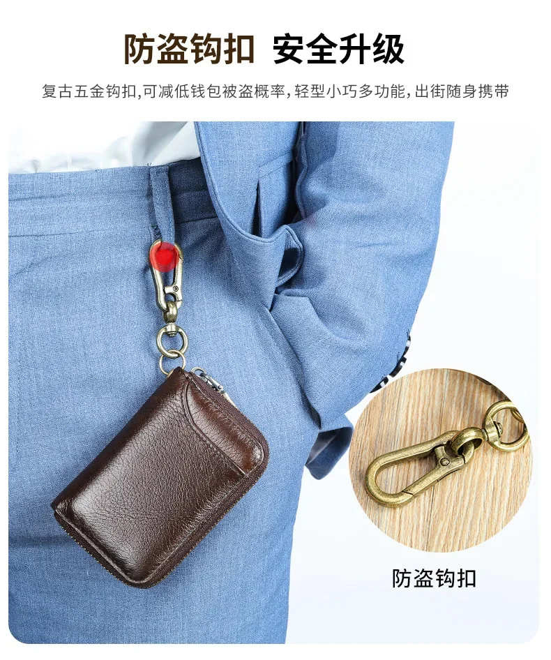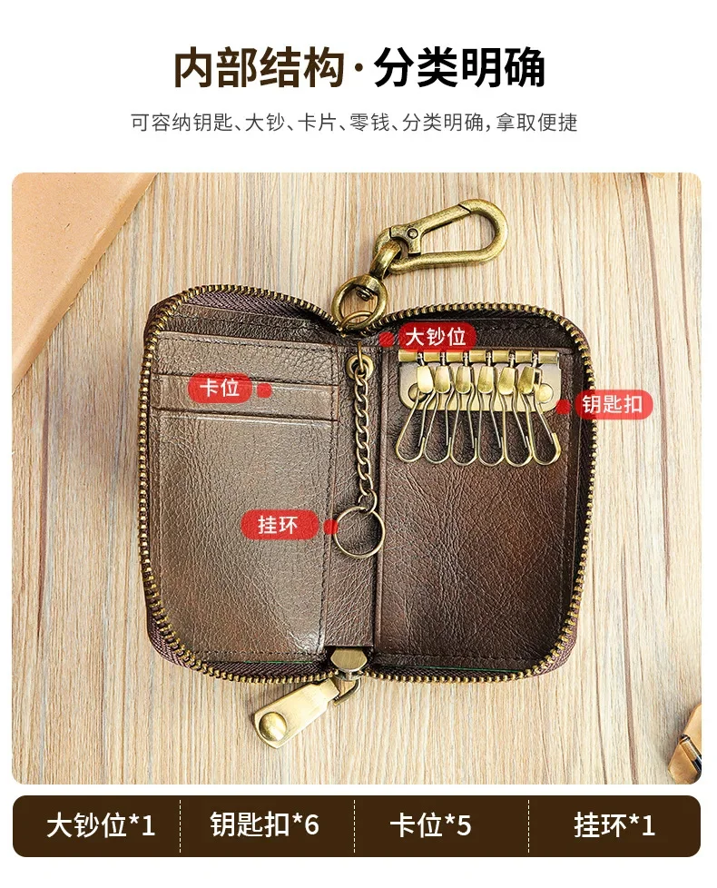 Genuine Leather chain Men Holder Organizer Pouch Coin Purse Cow Split Car Wallet Housekeeper Key Case Mini Card Bag