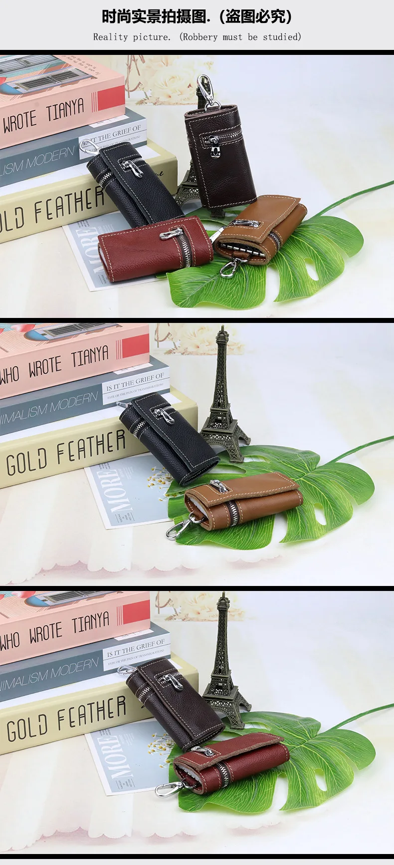 Genuine Leather Key Wallet Men Women Key Holder Organizer Pouch Keychain Car Key Wallet Housekeeper Key Case Mini Card Bag