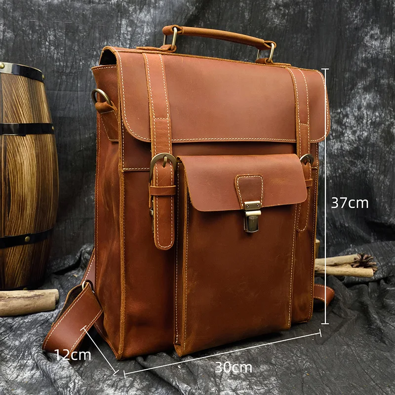 Material: 100% Genuine LeatherDesign: Vintage Leather Backpack,daypack Capacity: Can hold 14" laptop, A4 booksWeight:about 1.5 kg