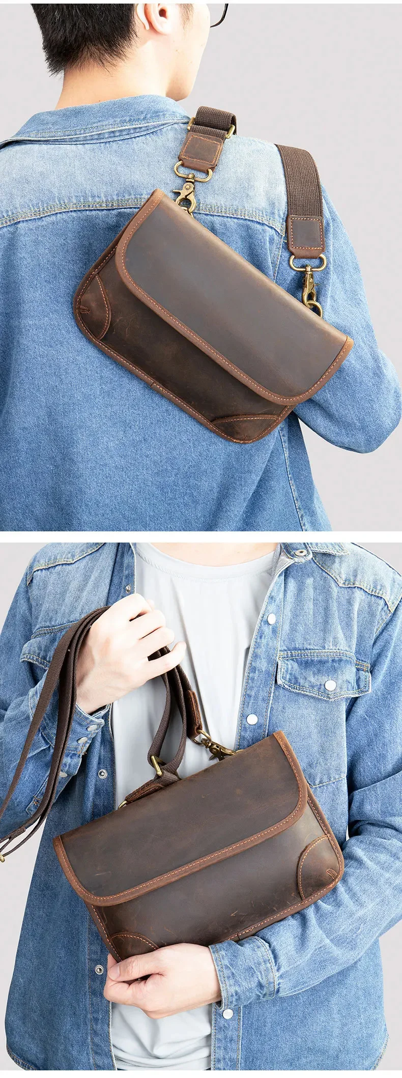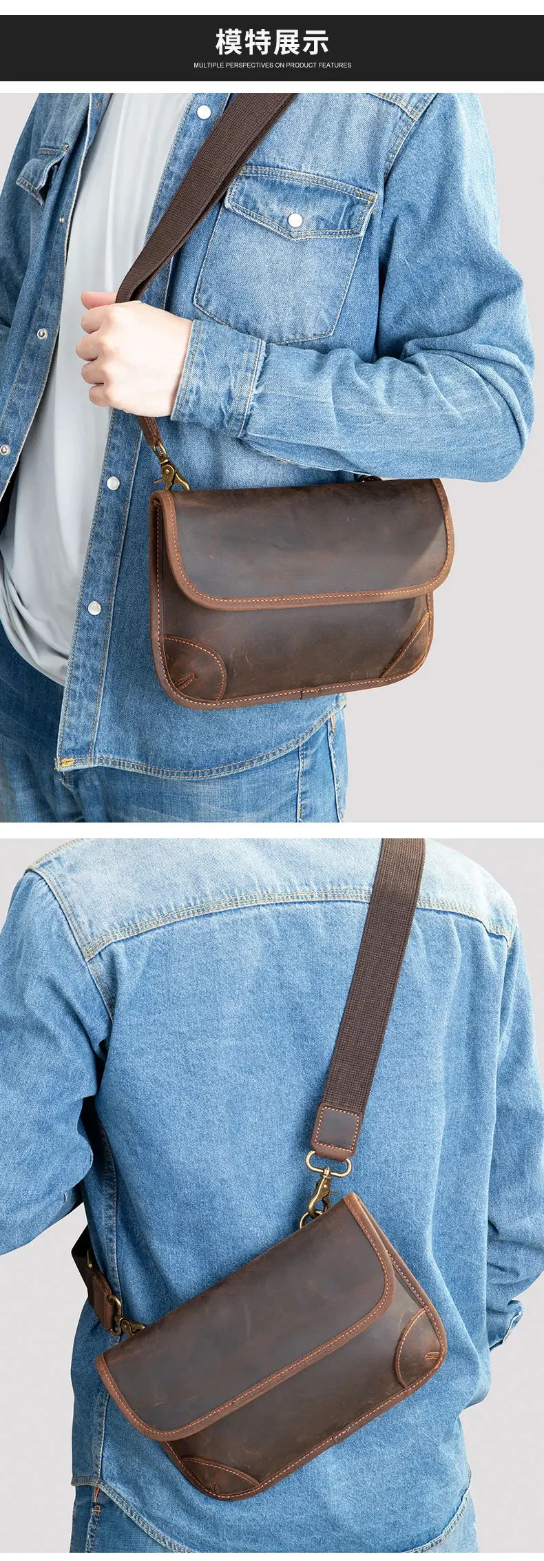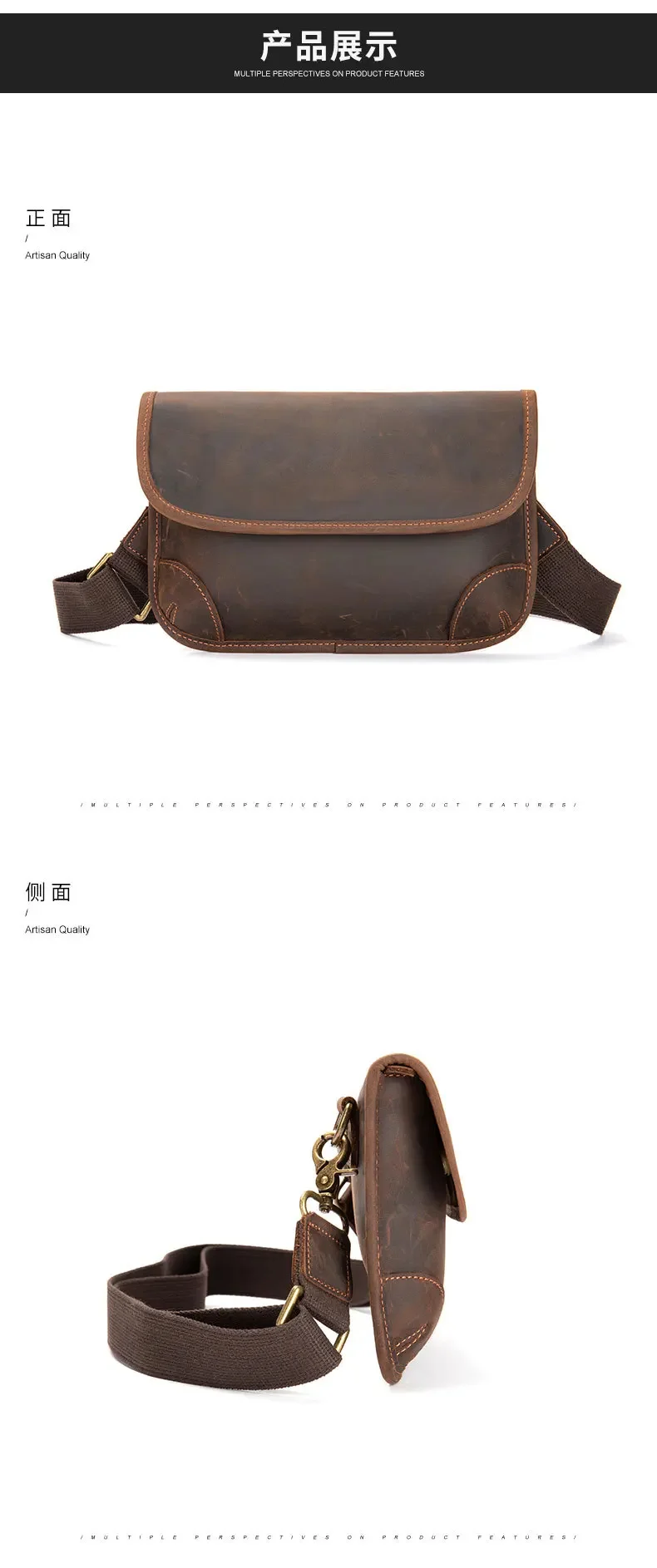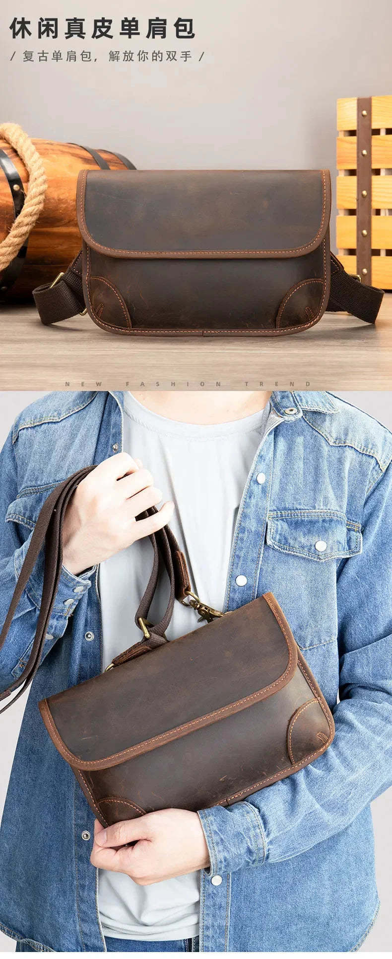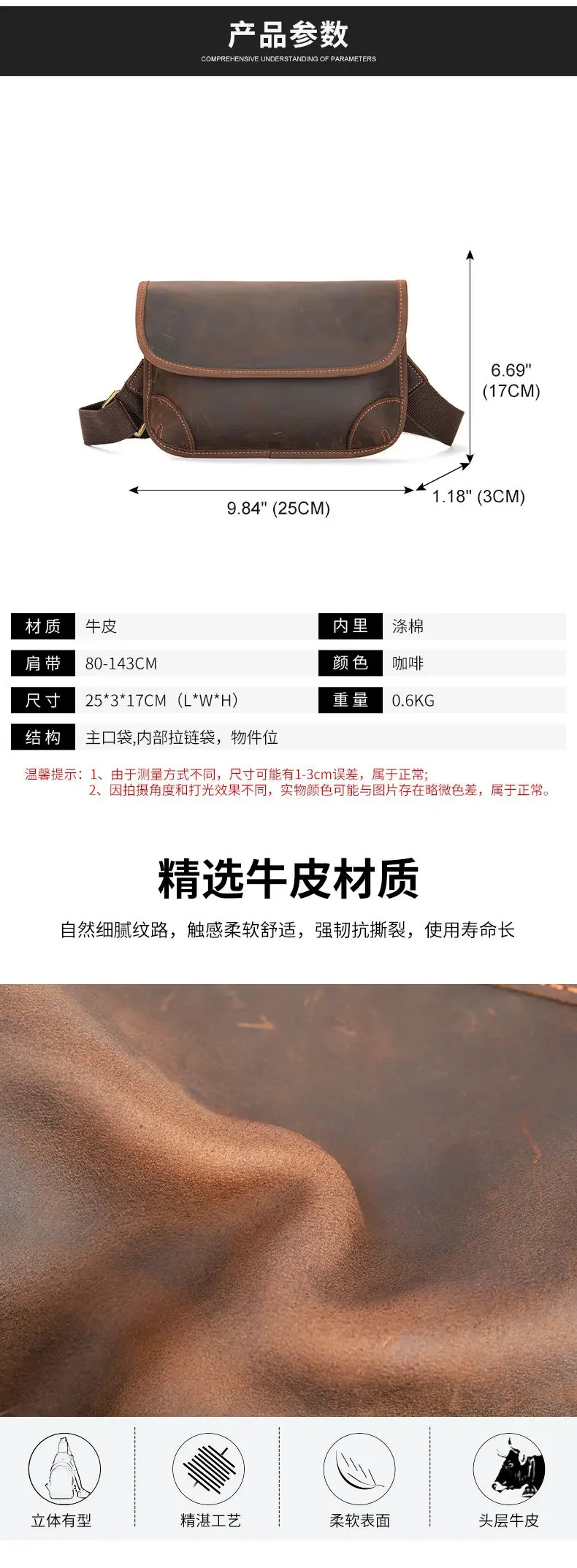 Genuine Leather Men's Crossbody Shoulder Trendy Diagonal Backpack Chest Messenger Bags Boy Casual Briefcase Travel